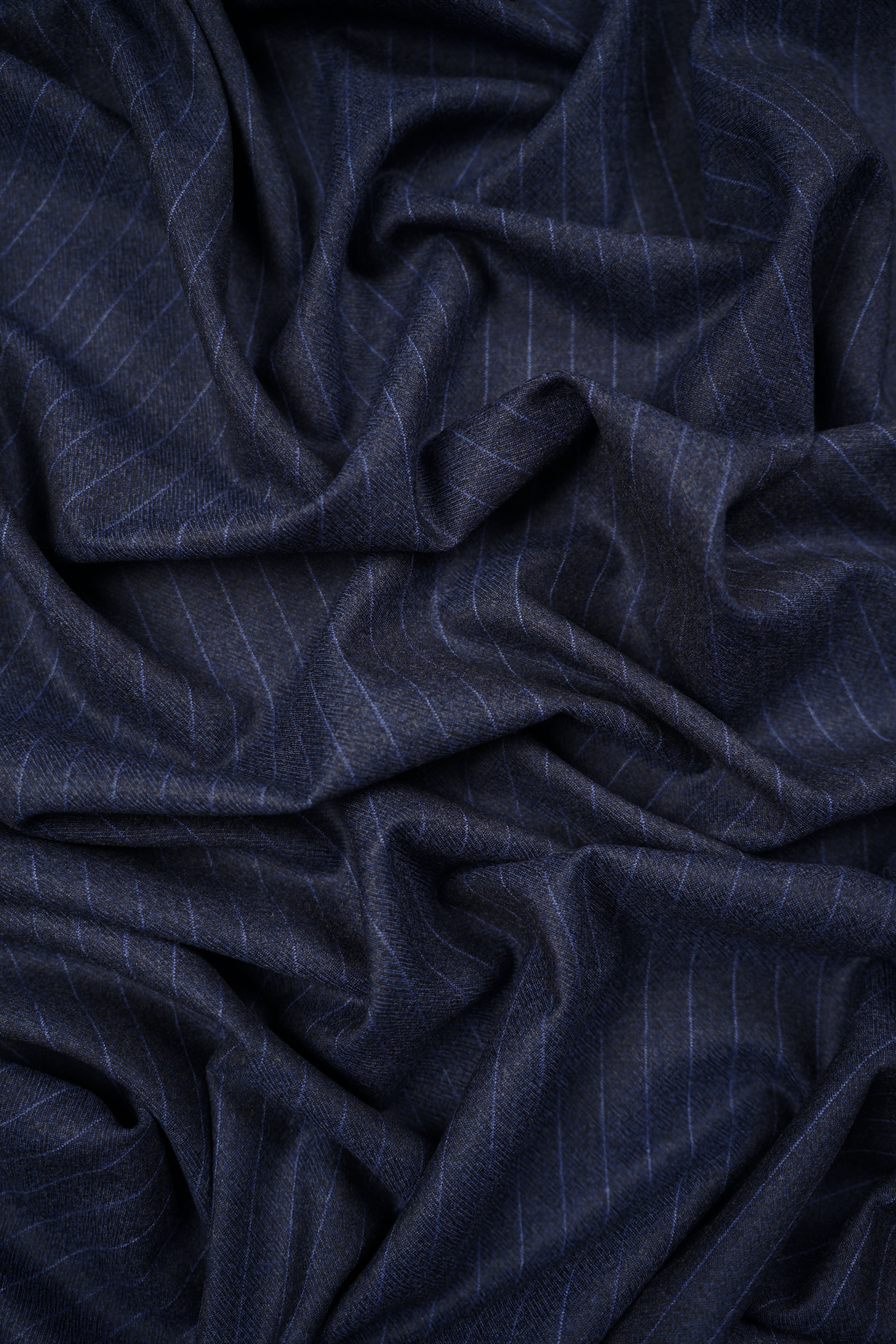 Kostymull - Italien - Ull/Cashmere - Kritstrecksrandig - Blå