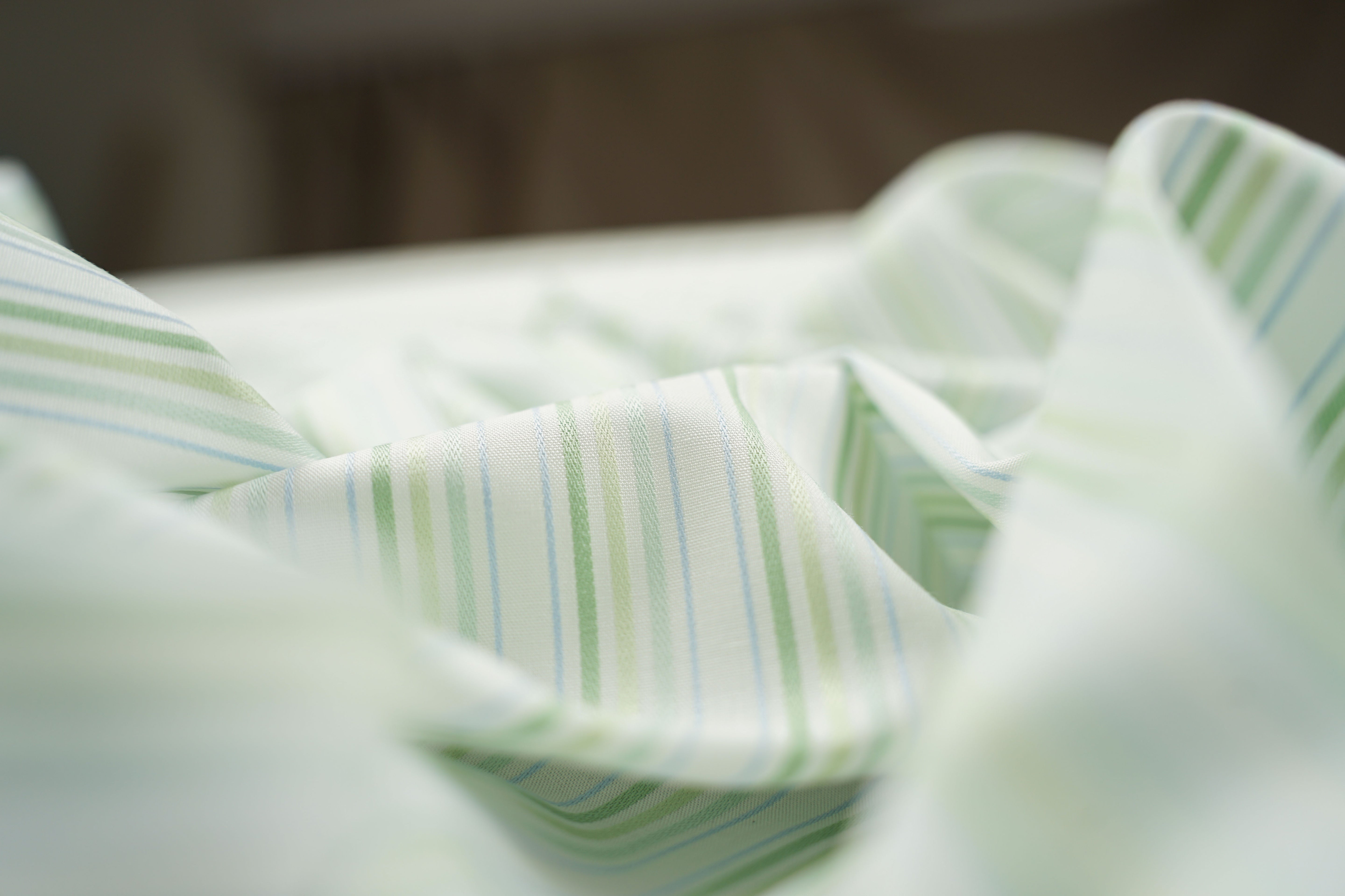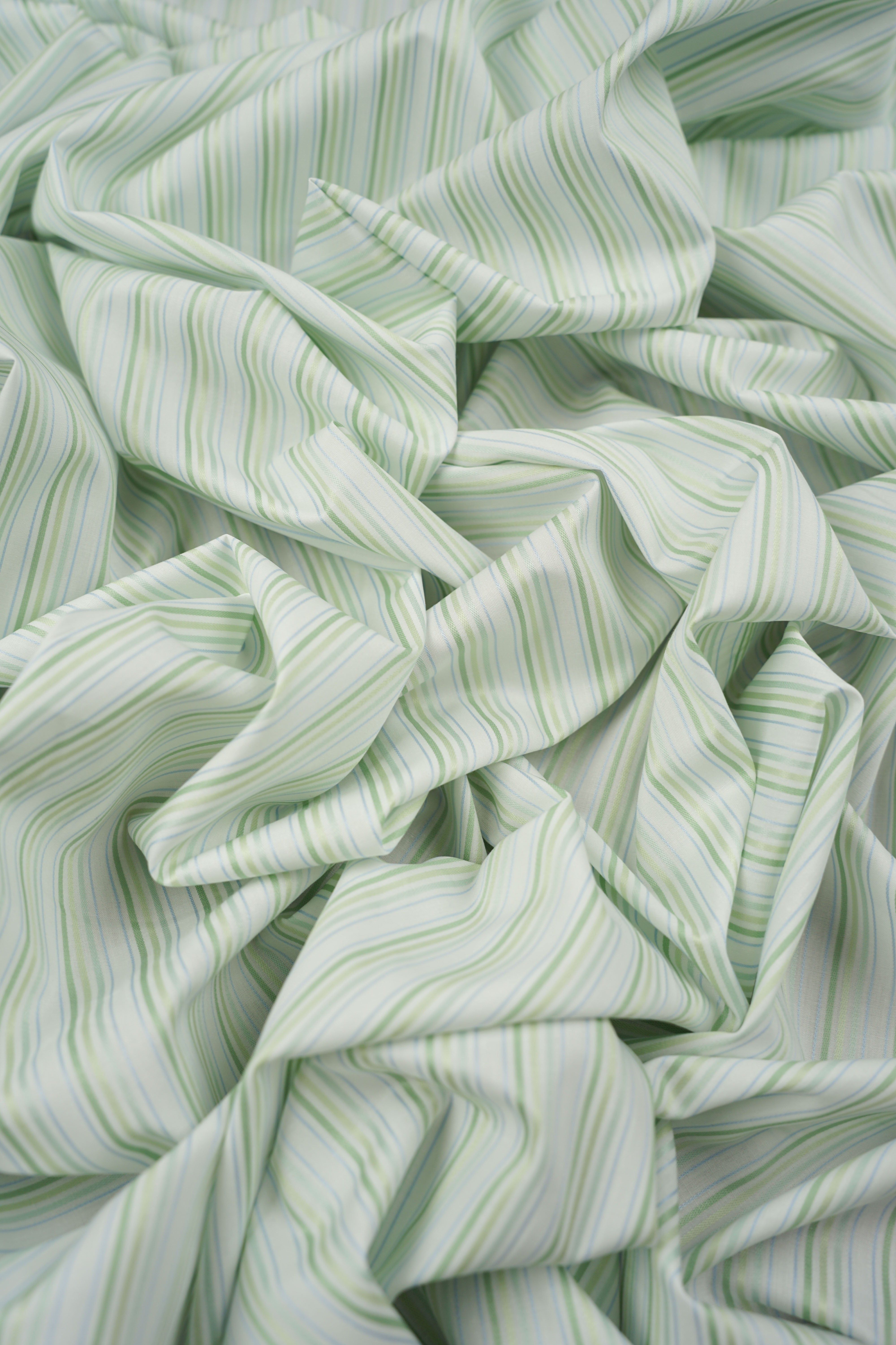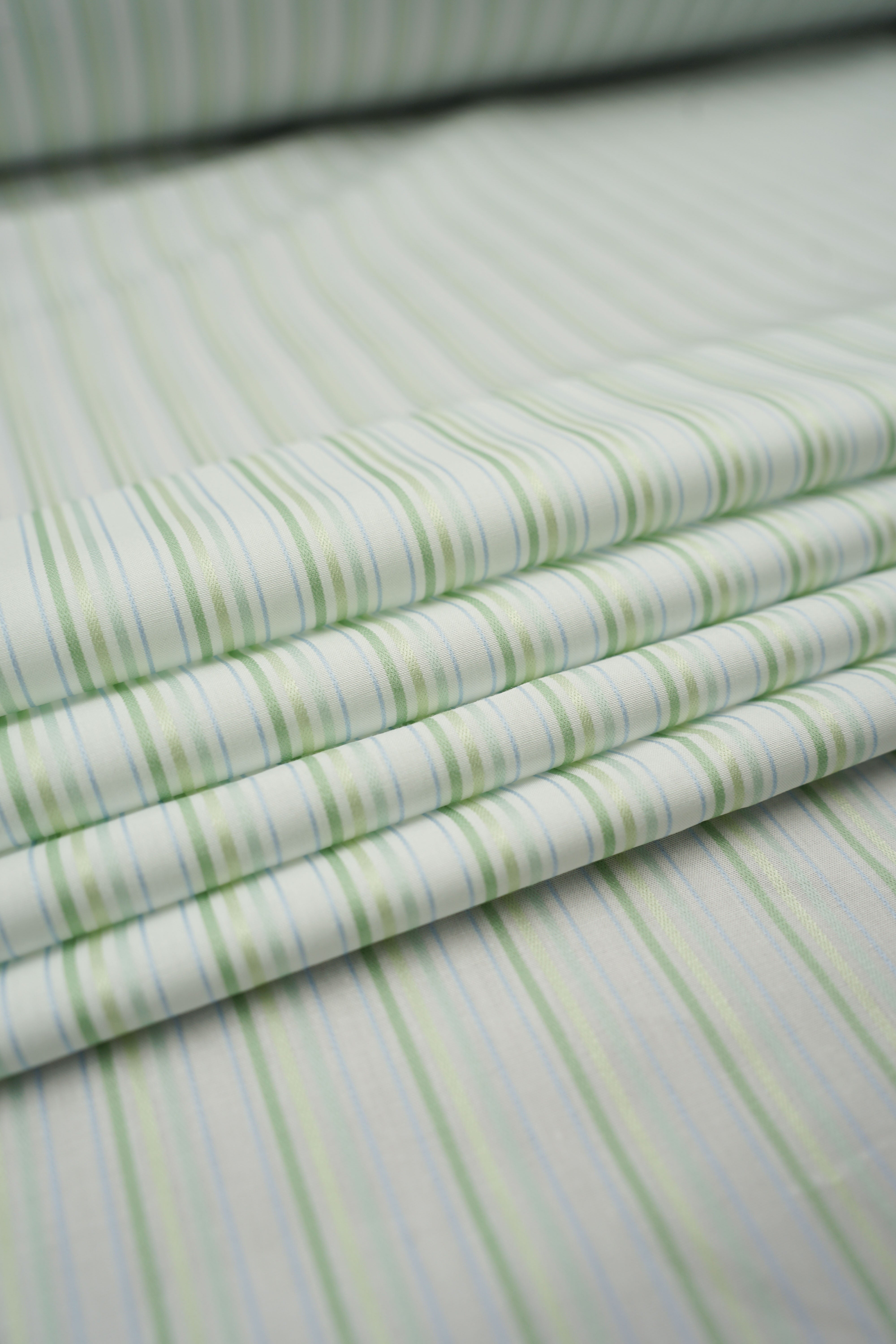 • Deadstock - Skjorttyg - Bomull - Ränder, lyster - Blå, Grön - DS145
