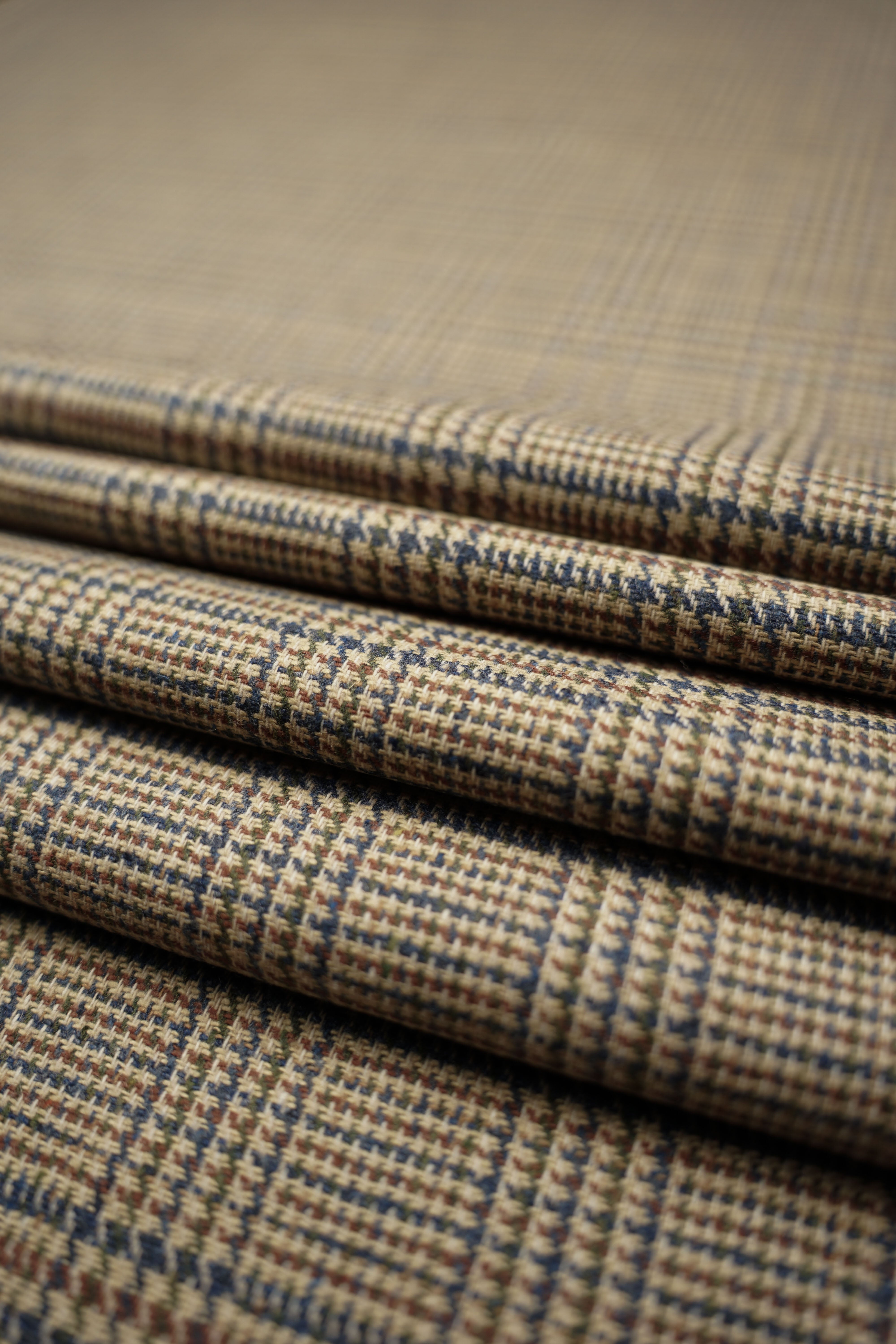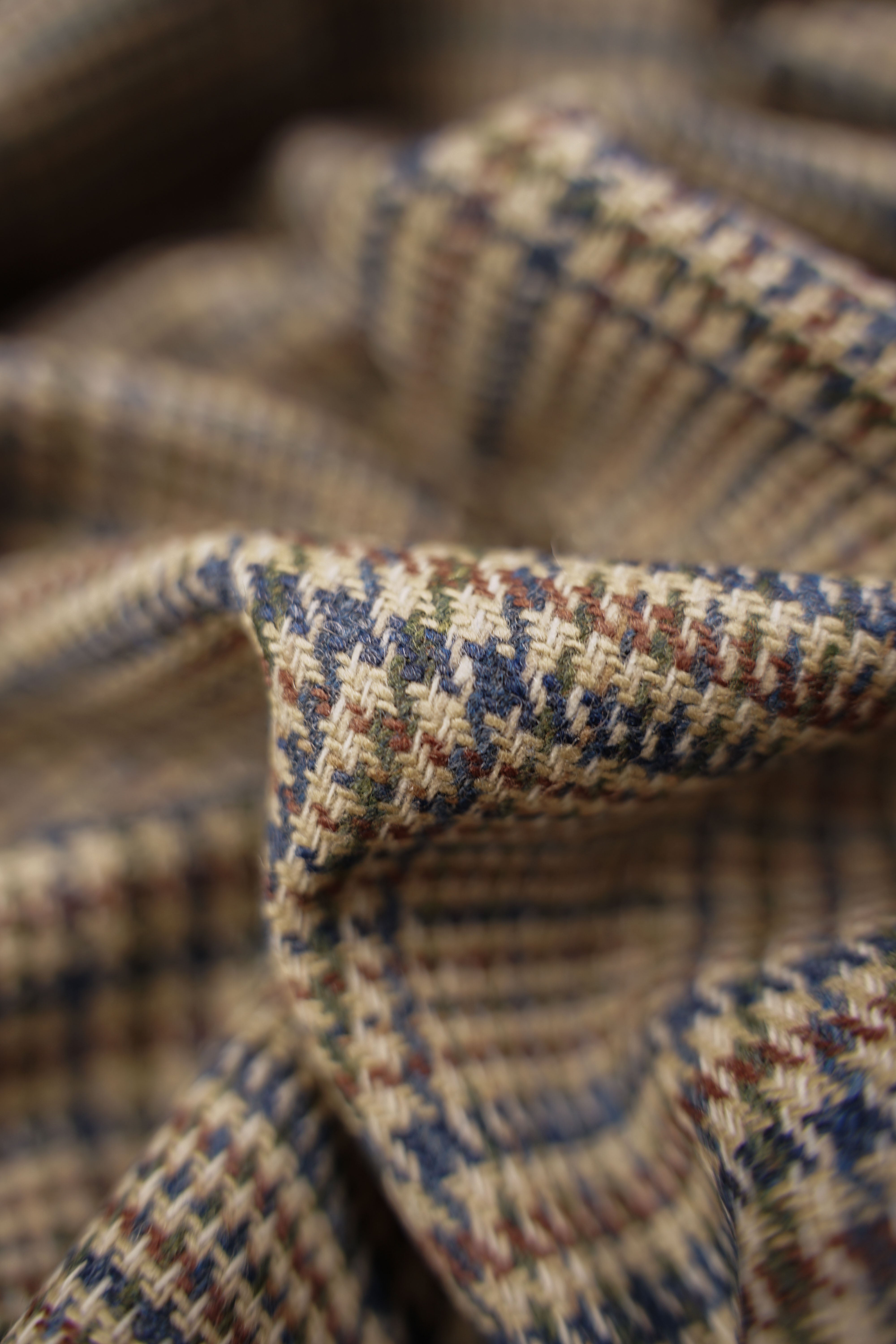 • Deadstock - Italiensk - Kostymull - Rutigt - Beige, blå, grön, rost - DK89