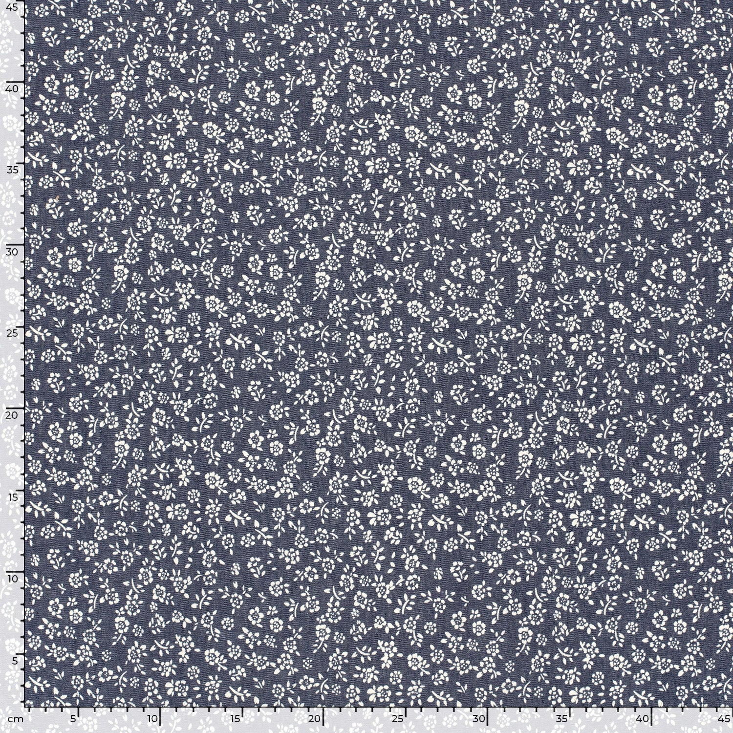 Mönstrad Denim, Jeans - Blommor - Blomhav - Mörkblå
