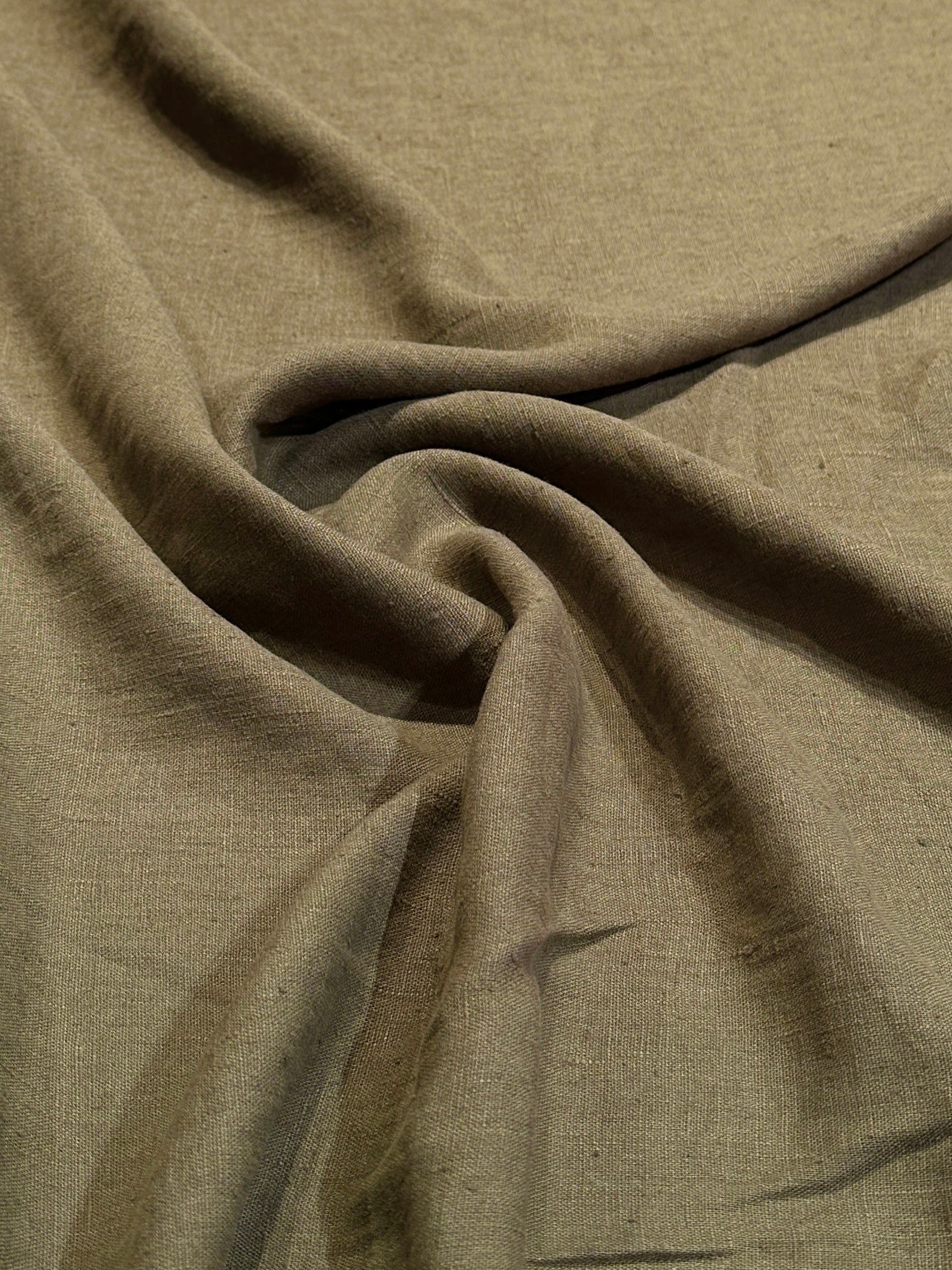 • Franskt Stentvättat Lin Verona Gardintyg Möbeltyg 22.000 MD Grön Khaki