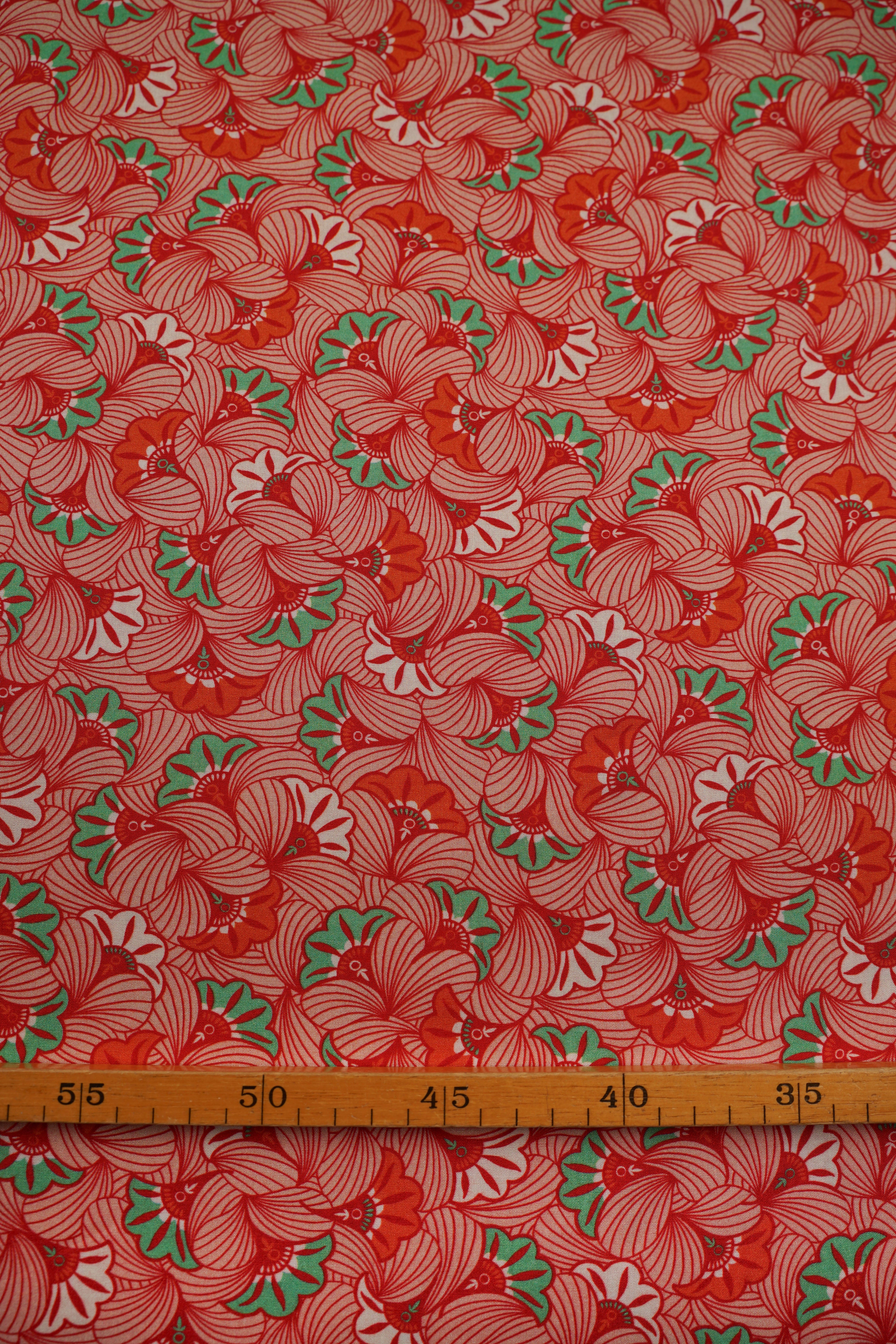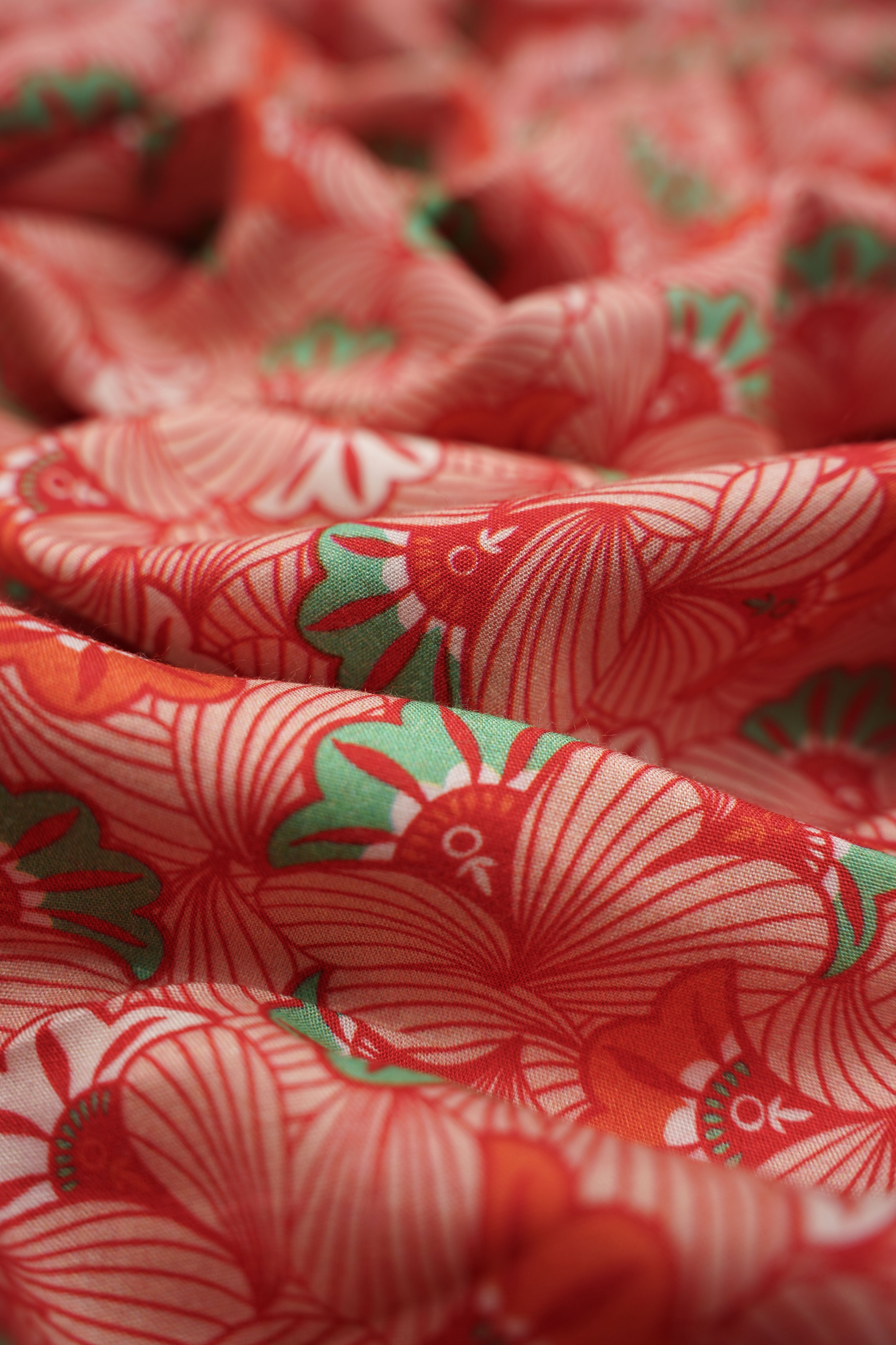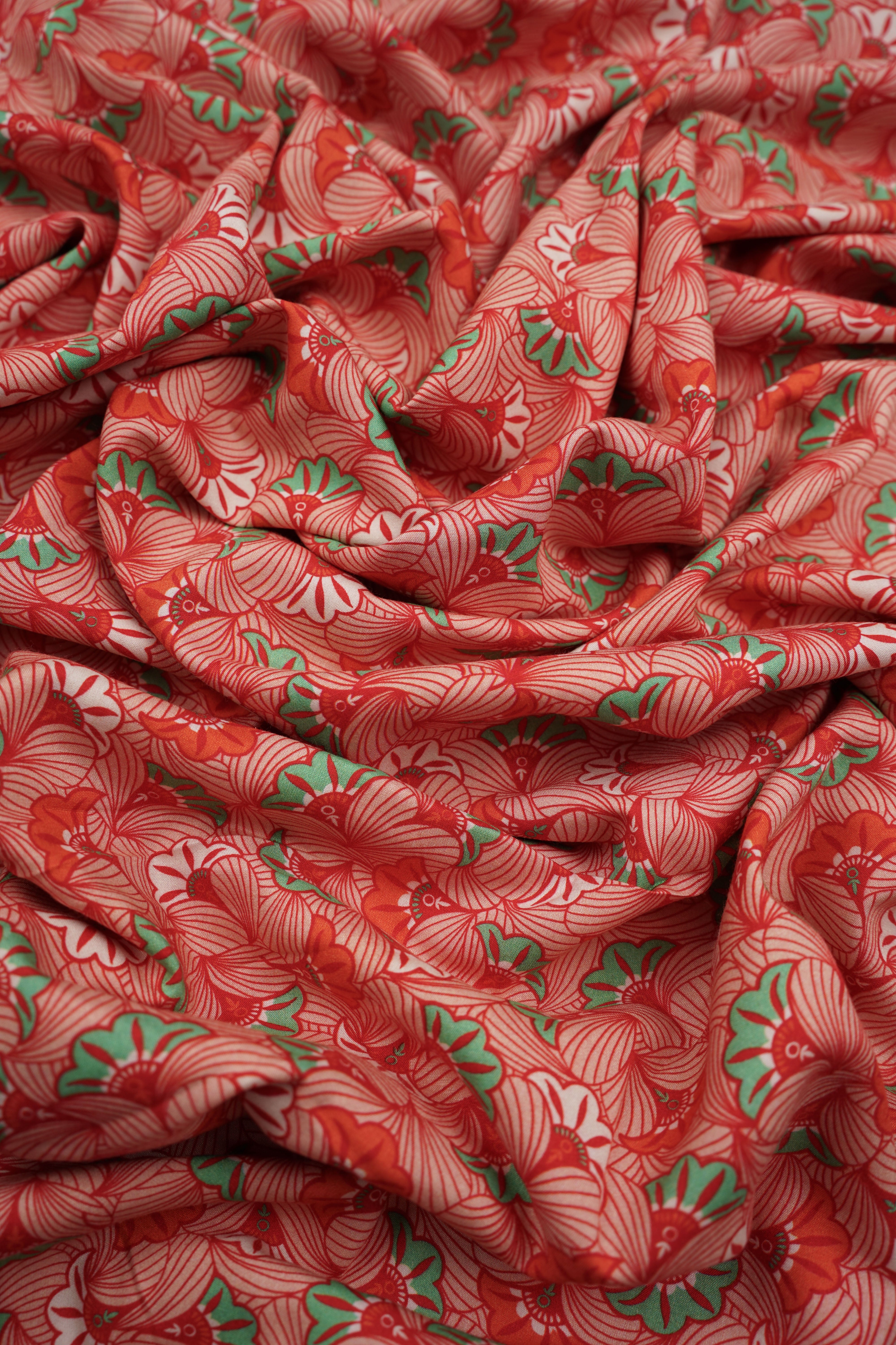Fransk Viskos - Blommigt Mönster - Batik - Persika/Röd