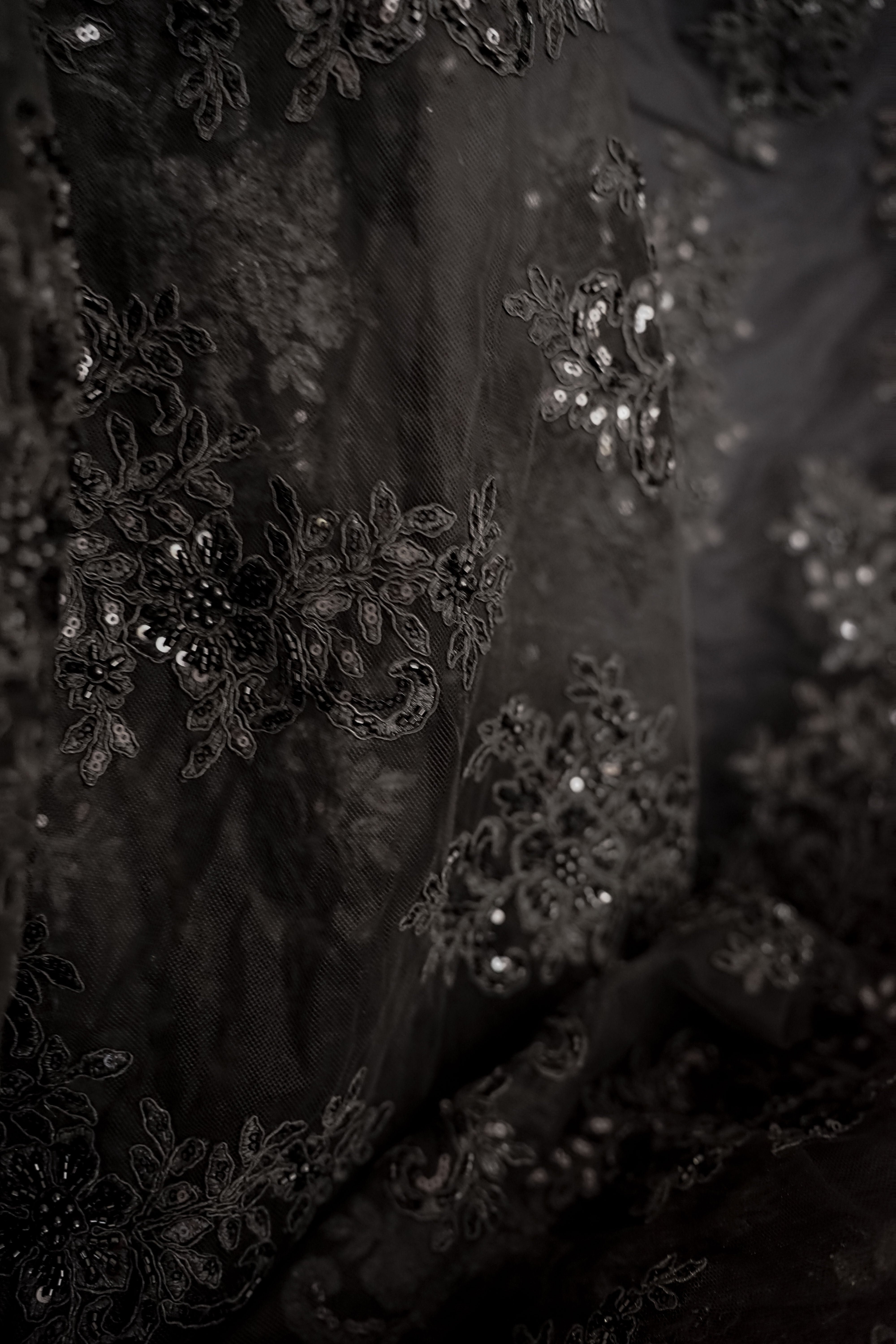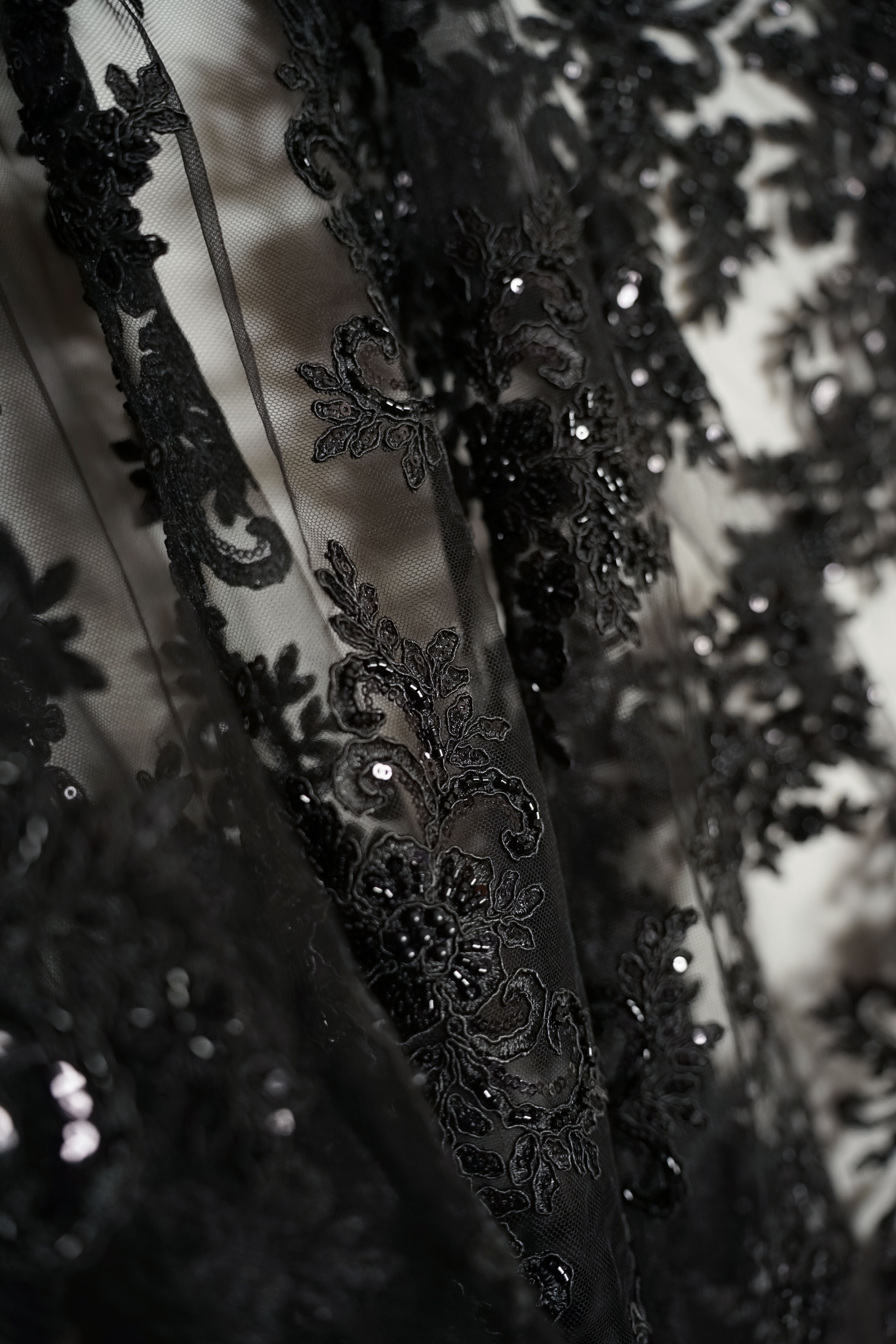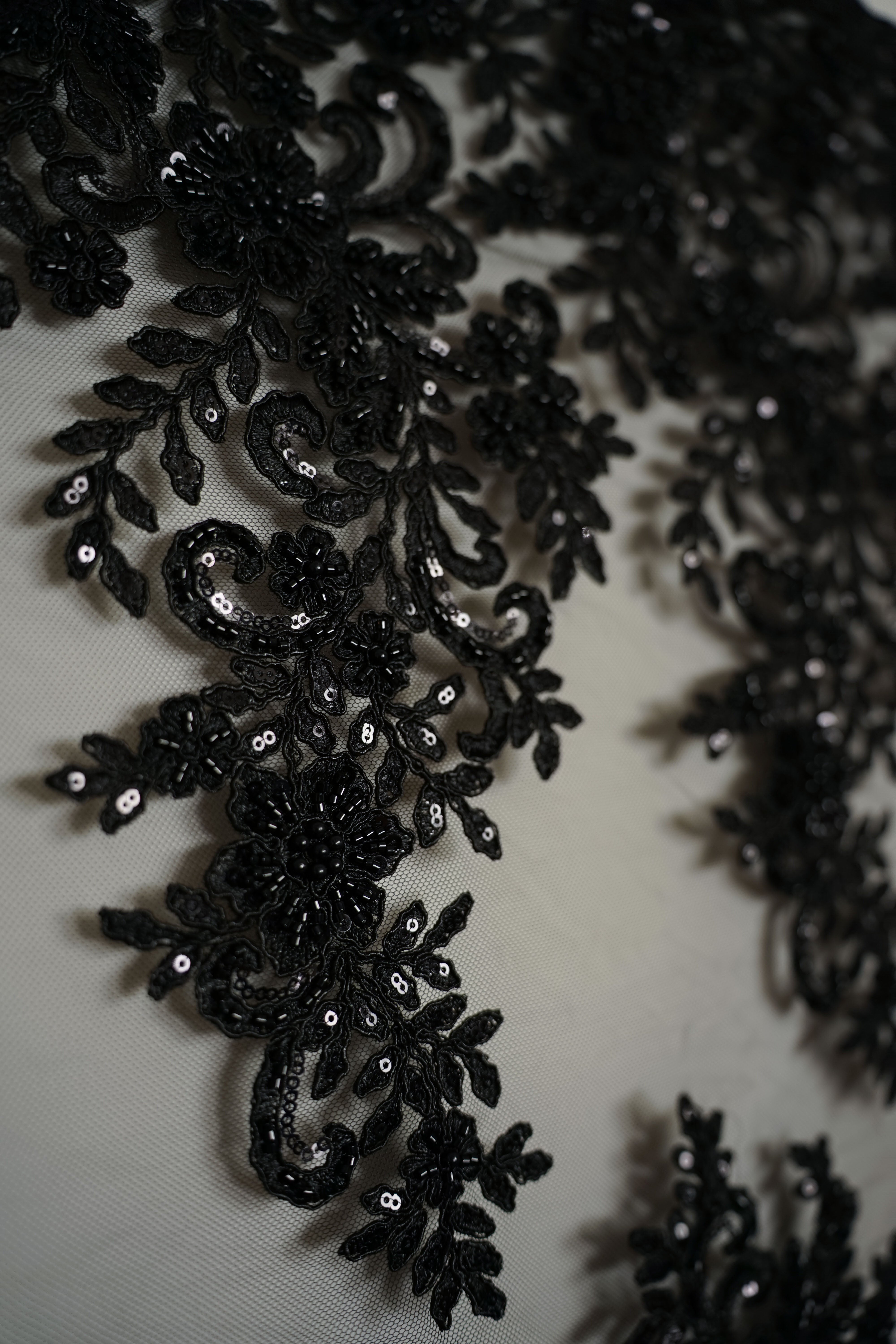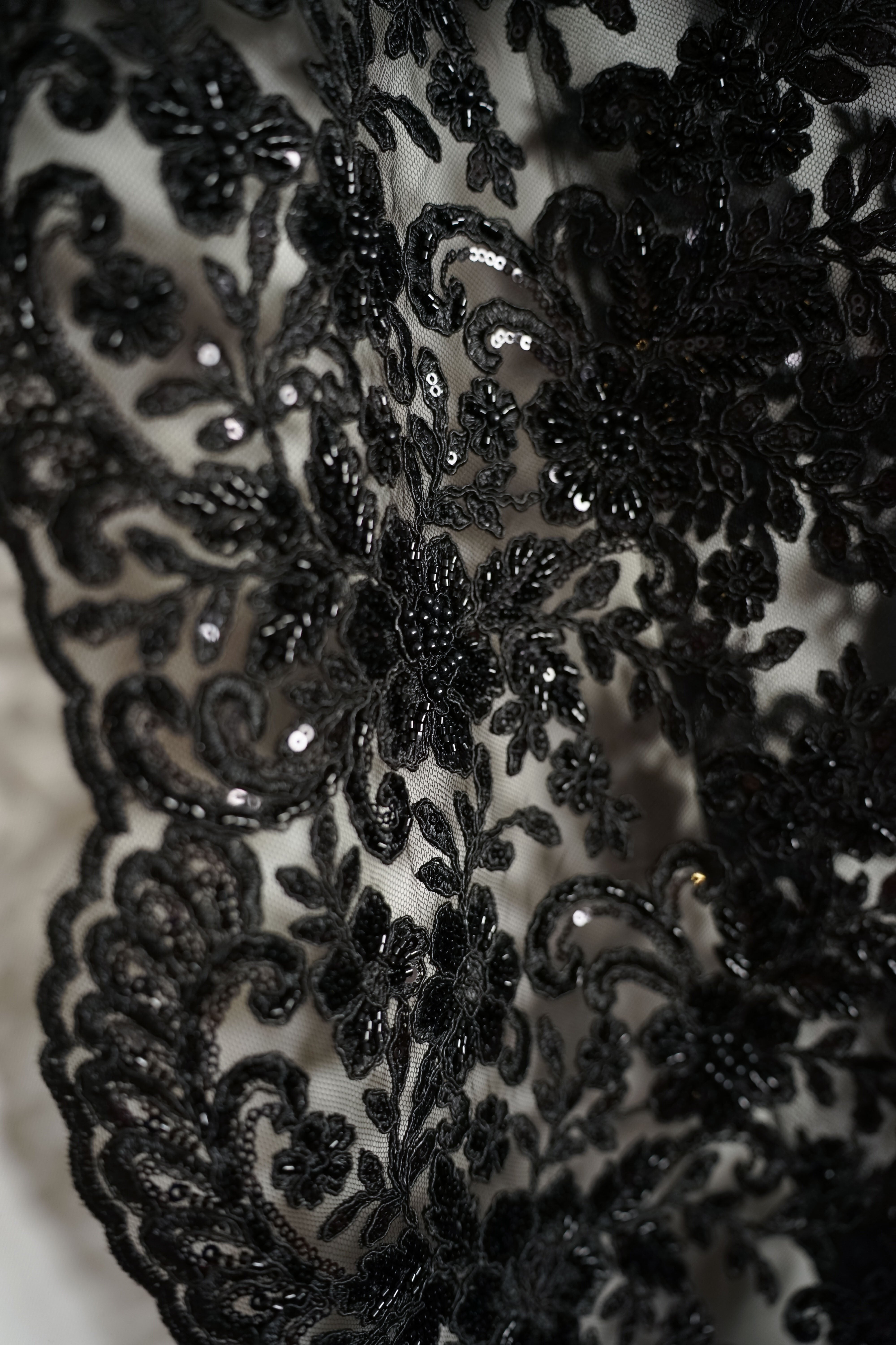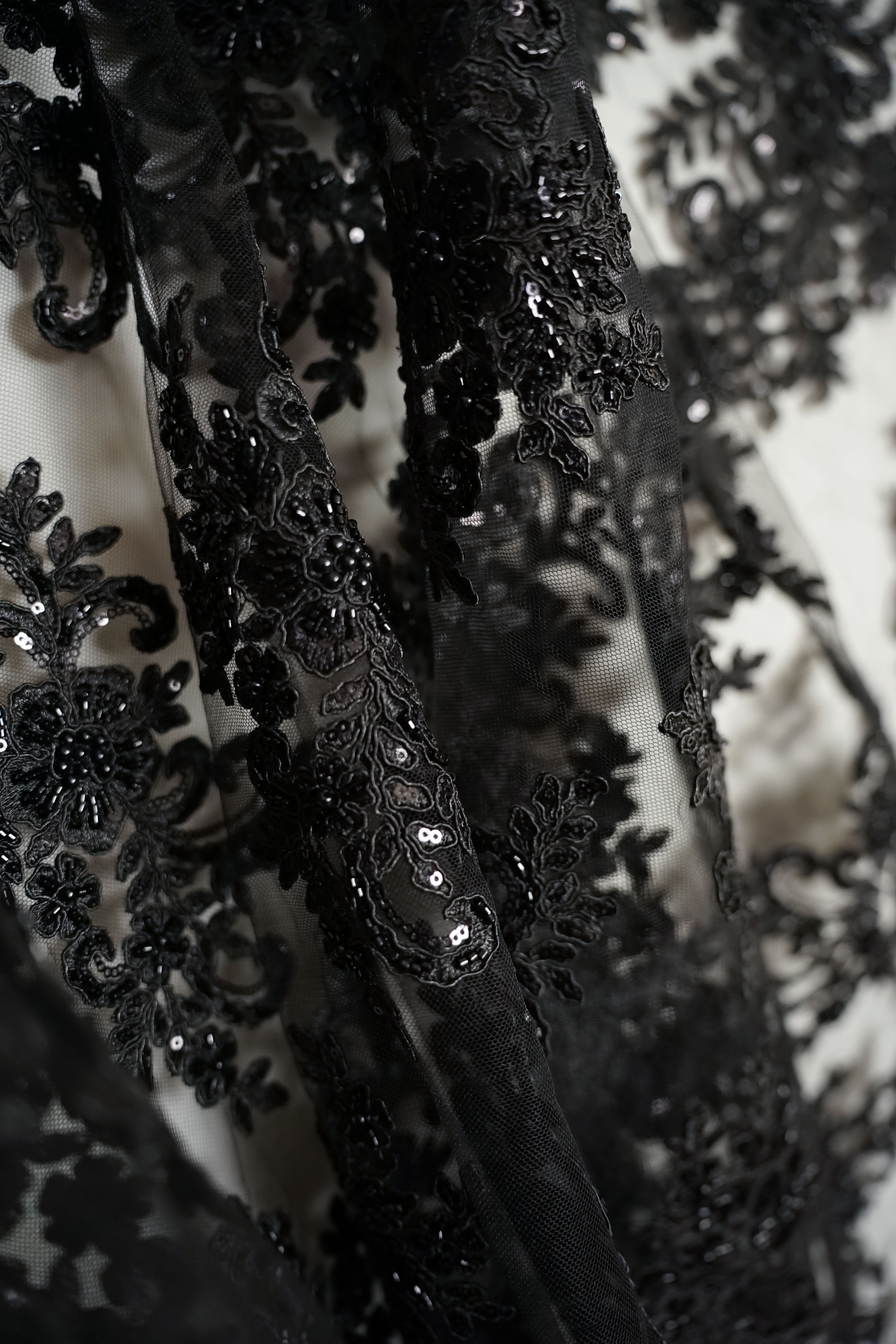 • Italiensk - Exklusiv - Pärlbroderi - Tyll - Enchanted - Svart