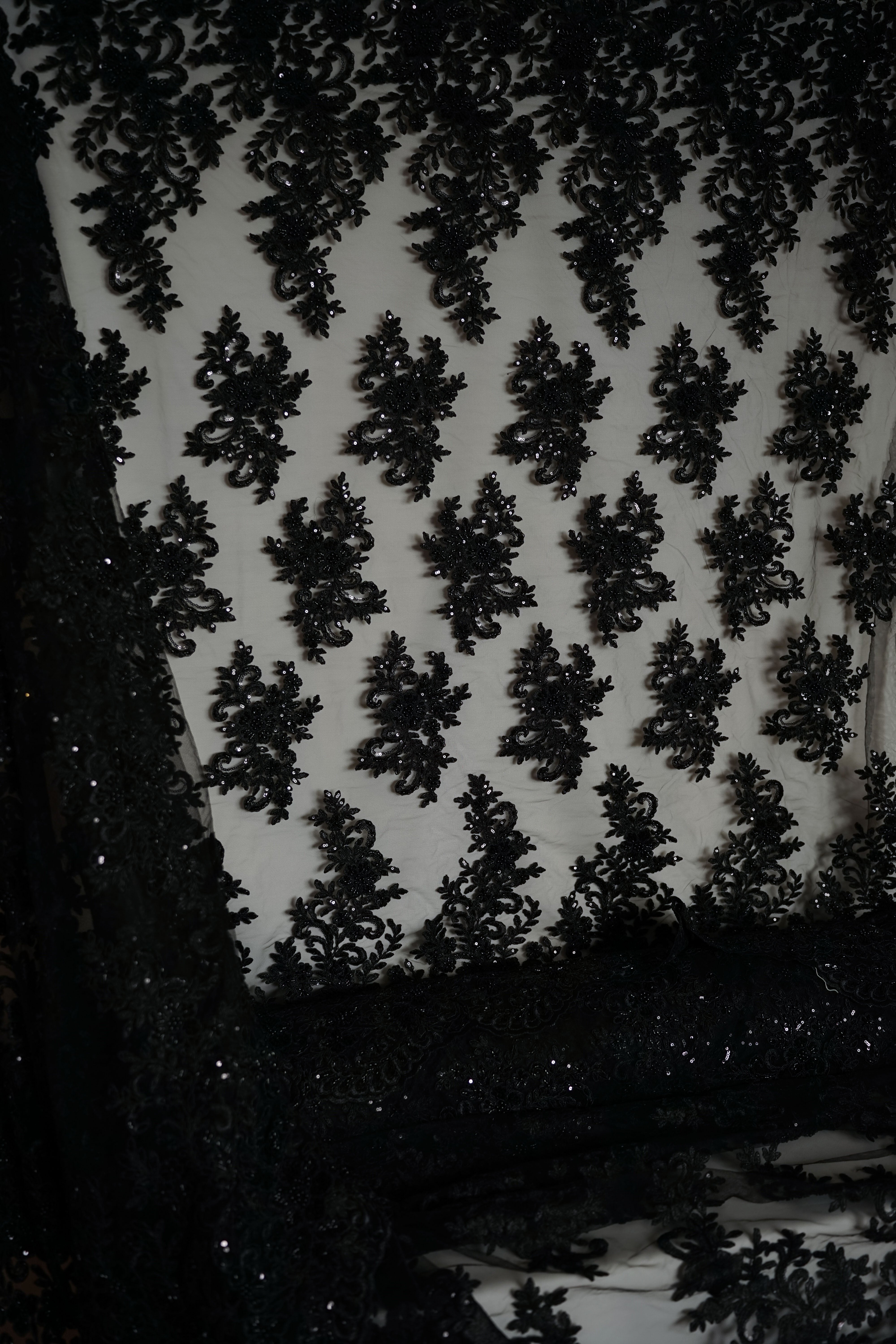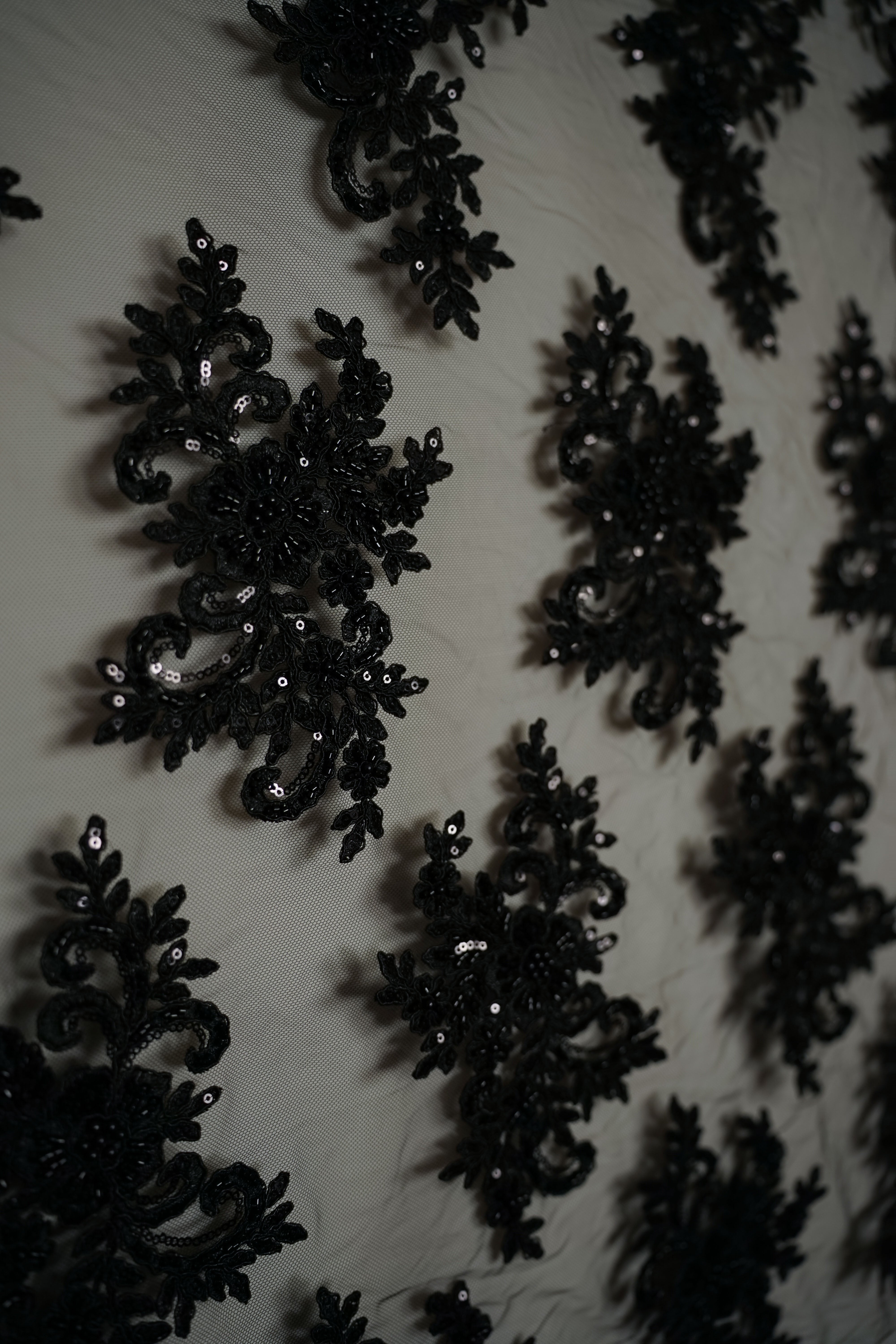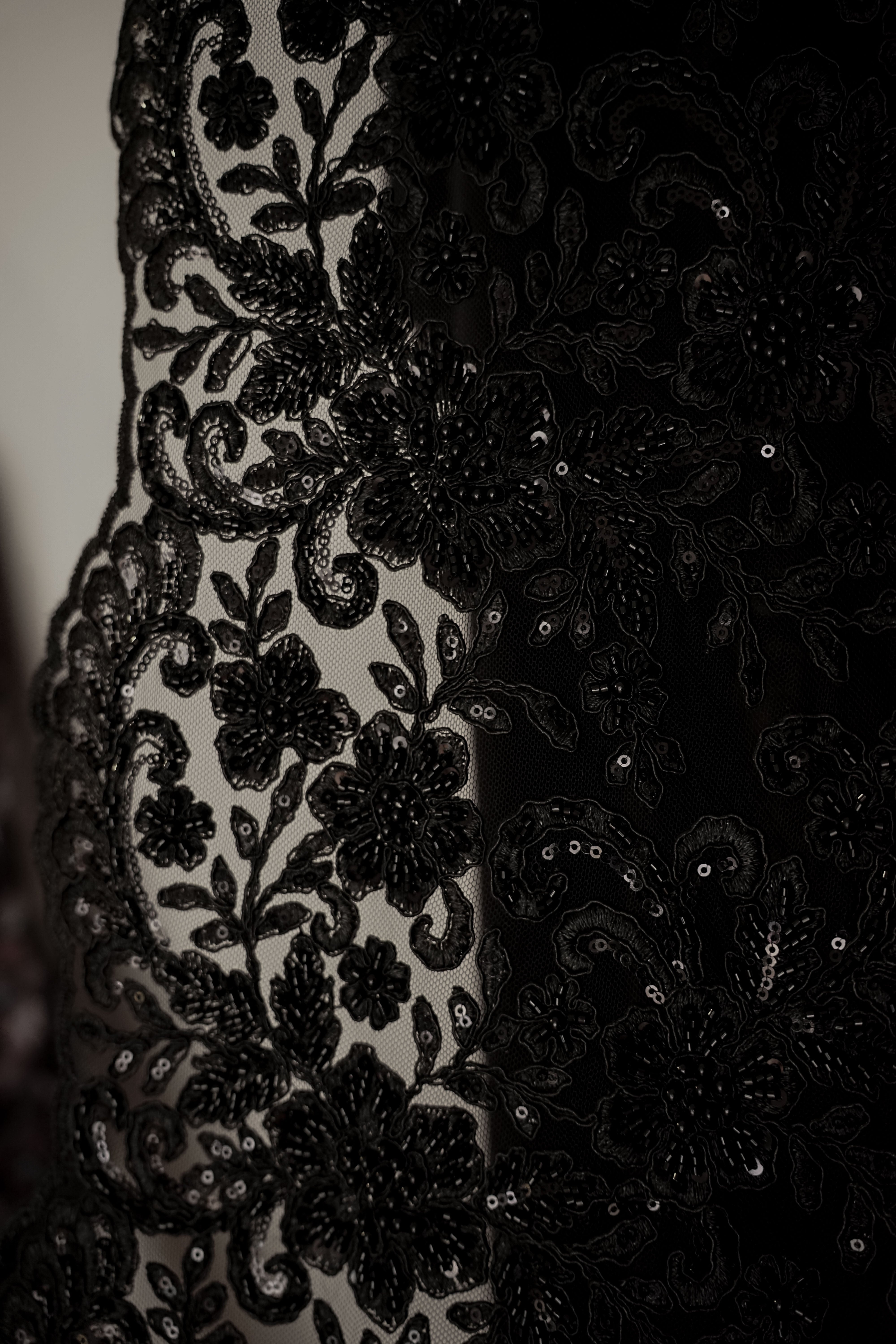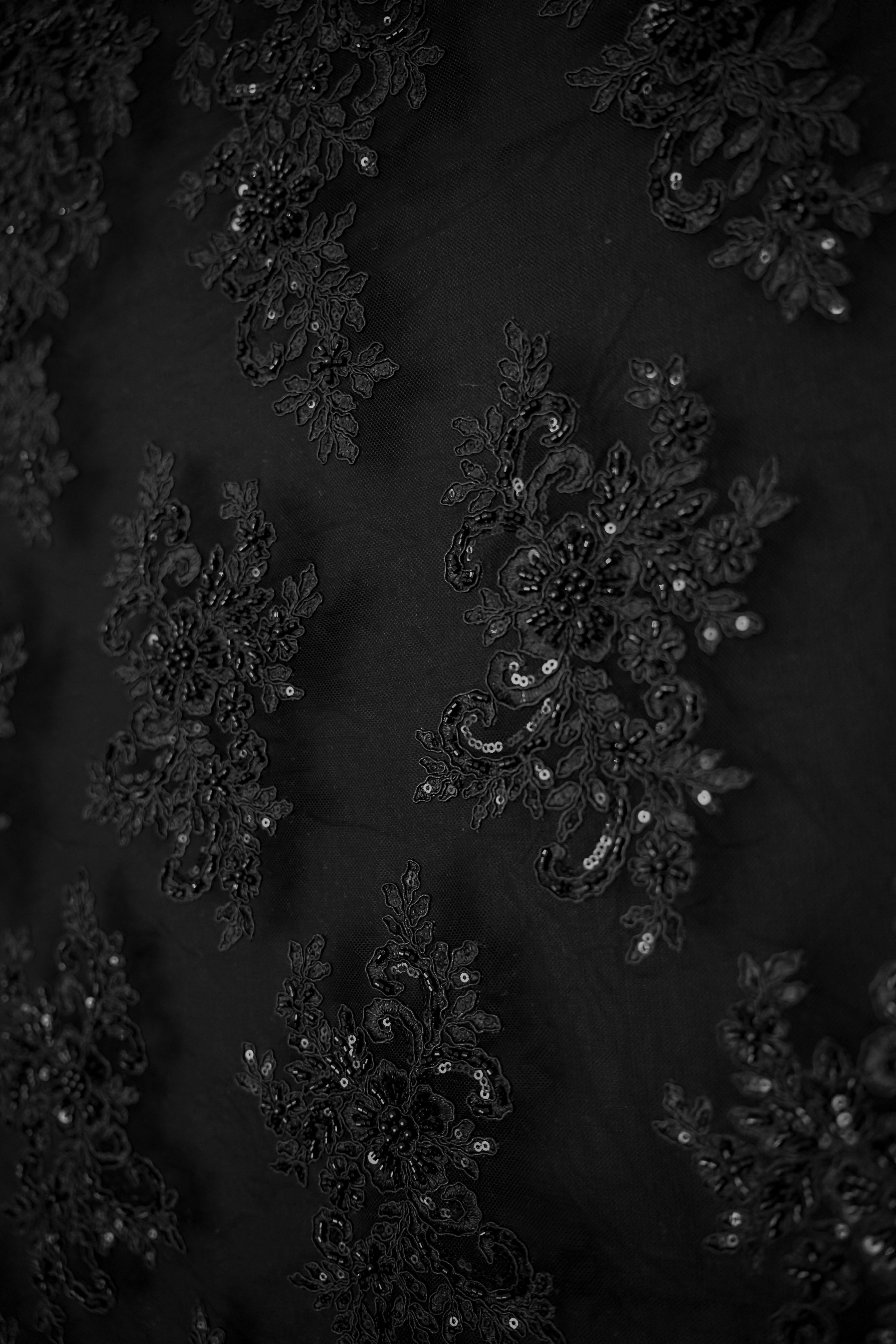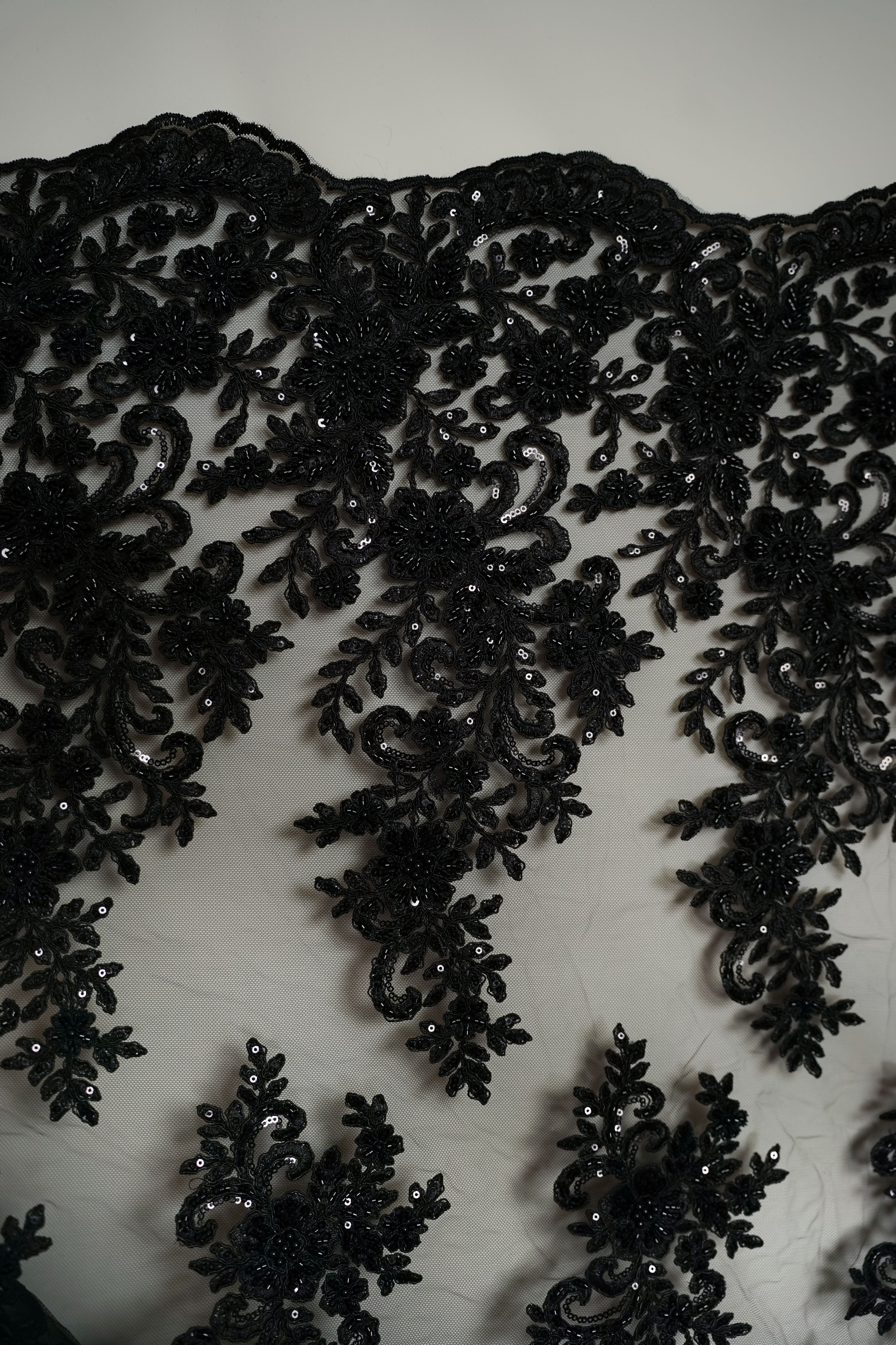 • Italiensk - Exklusiv - Pärlbroderi - Tyll - Enchanted - Svart