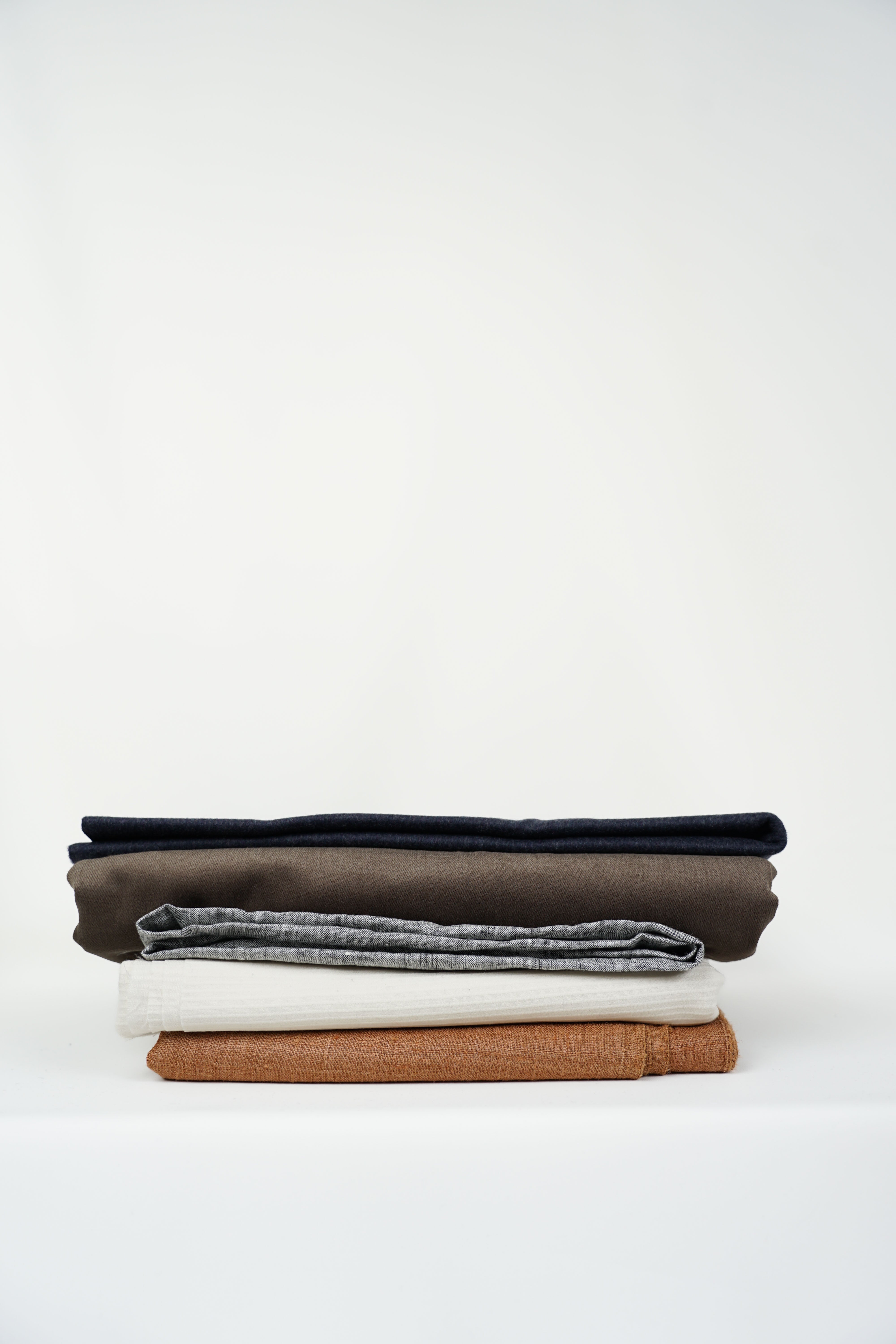 Listan på tygerna står i ordning efter hur de ligger på bilden uppifrån och ner.