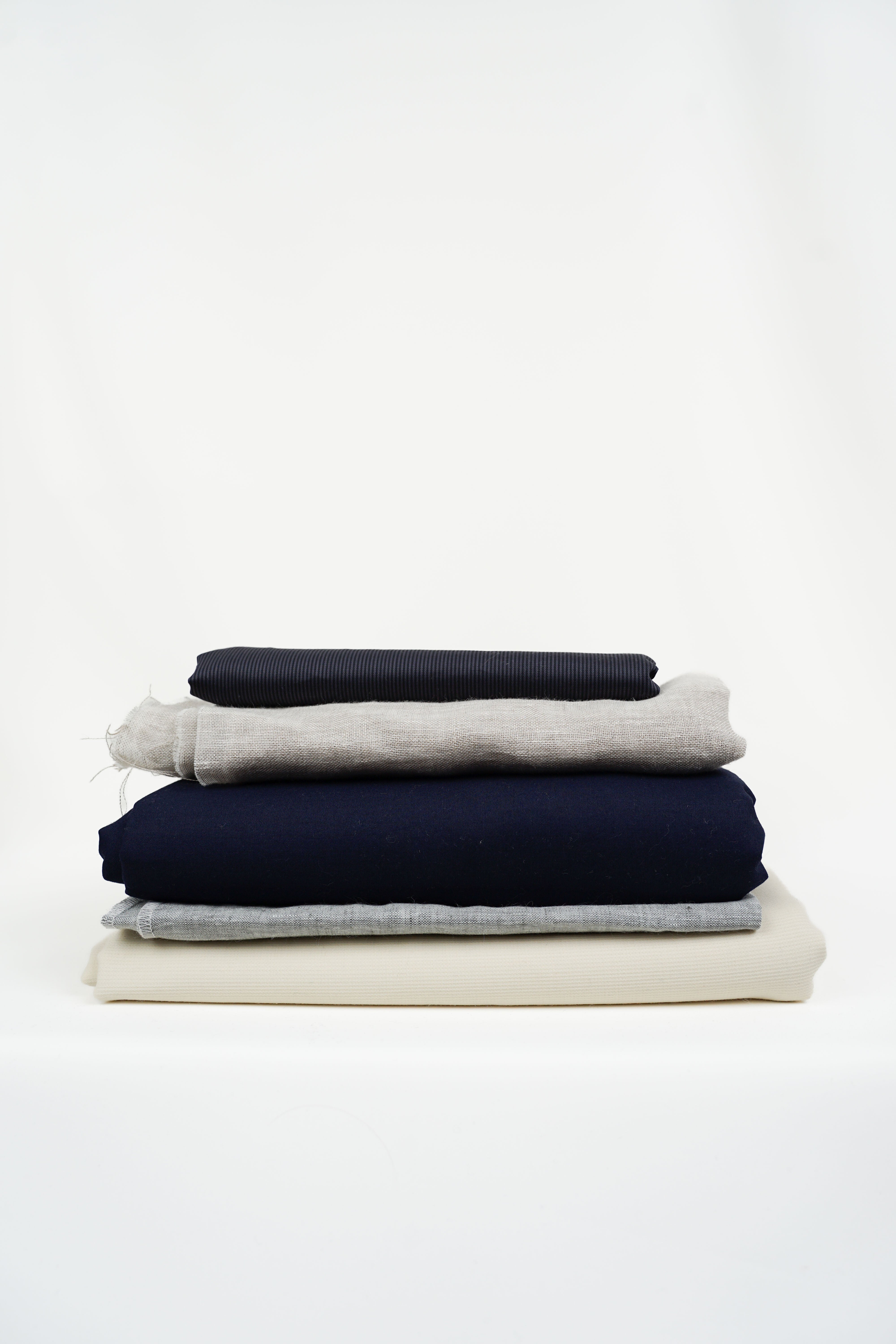 Listan på tygerna står i ordning efter hur de ligger på bilden uppifrån och ner.