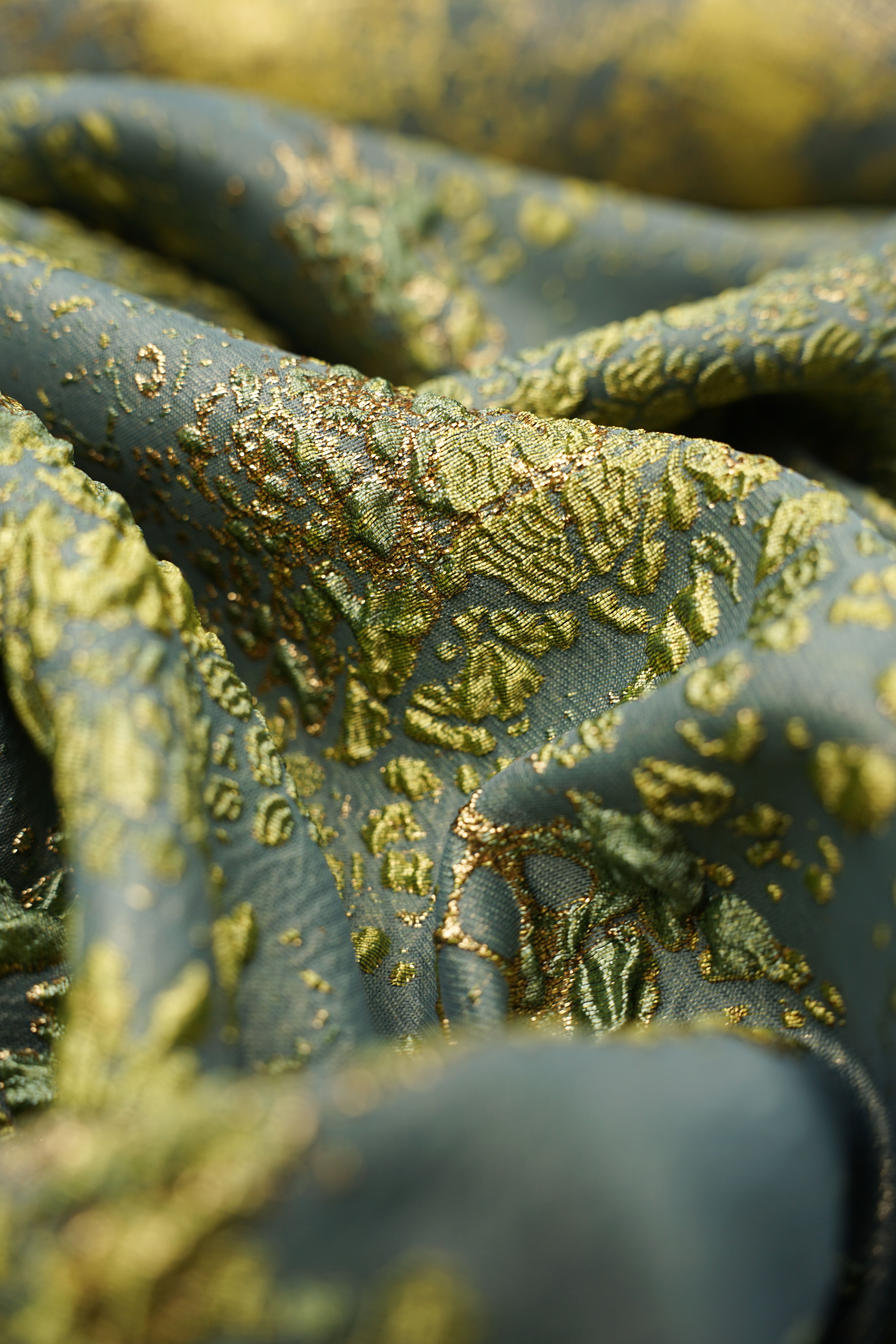 • Metalic Brokad - Bubblig - Festtyg - Silverblå, Grön