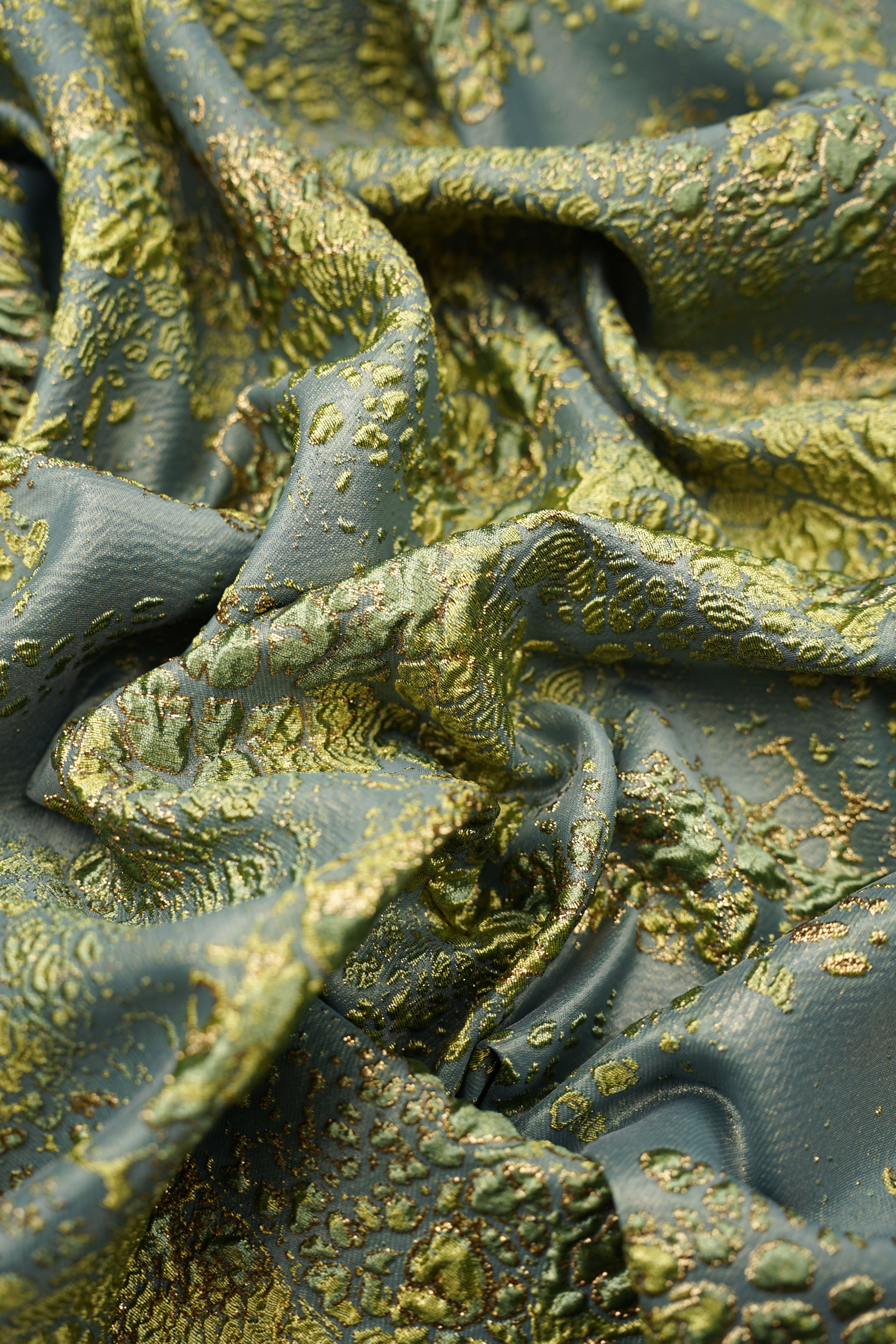 Metalic Brokad - Bubblig - Festtyg - Silverblå, Grön