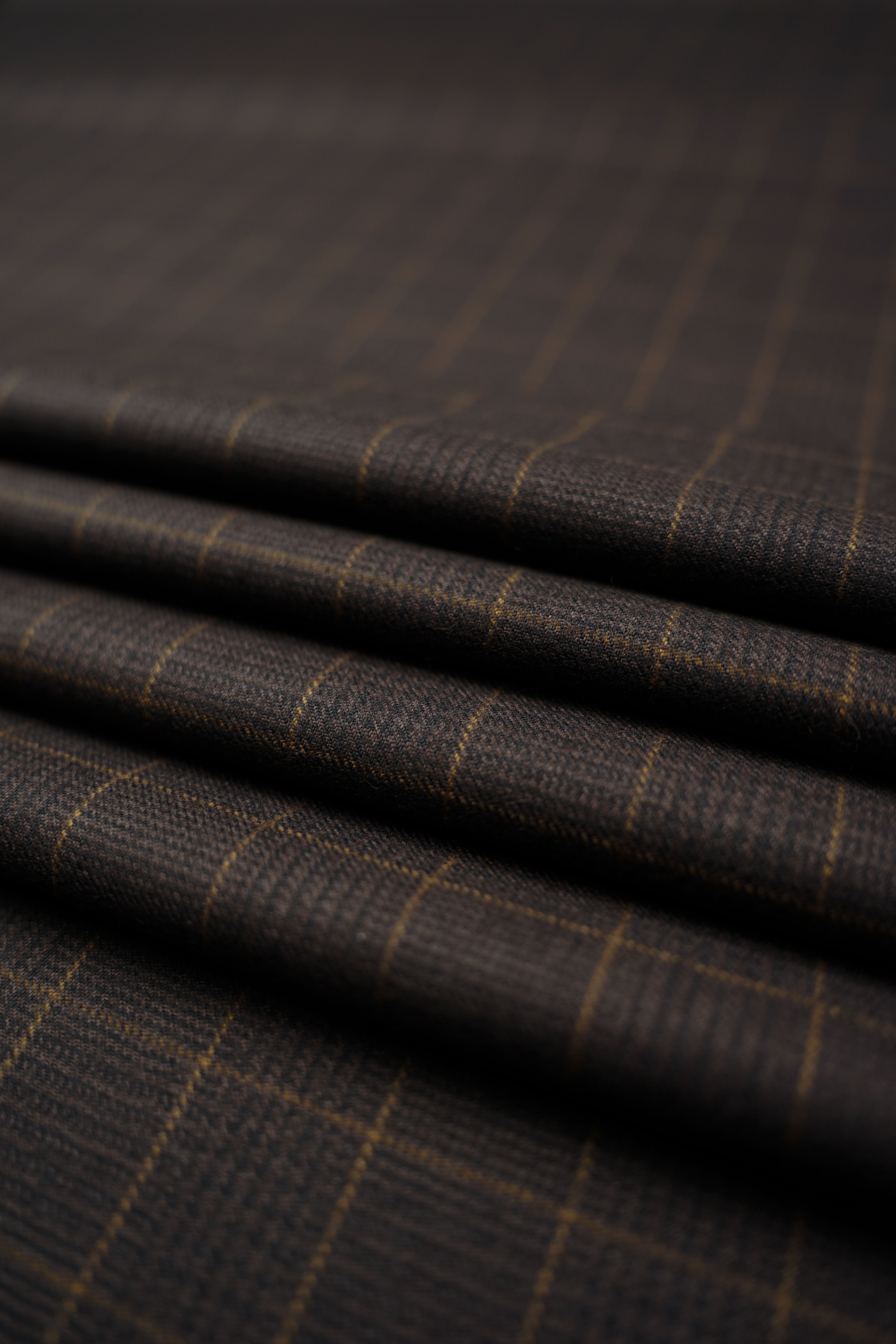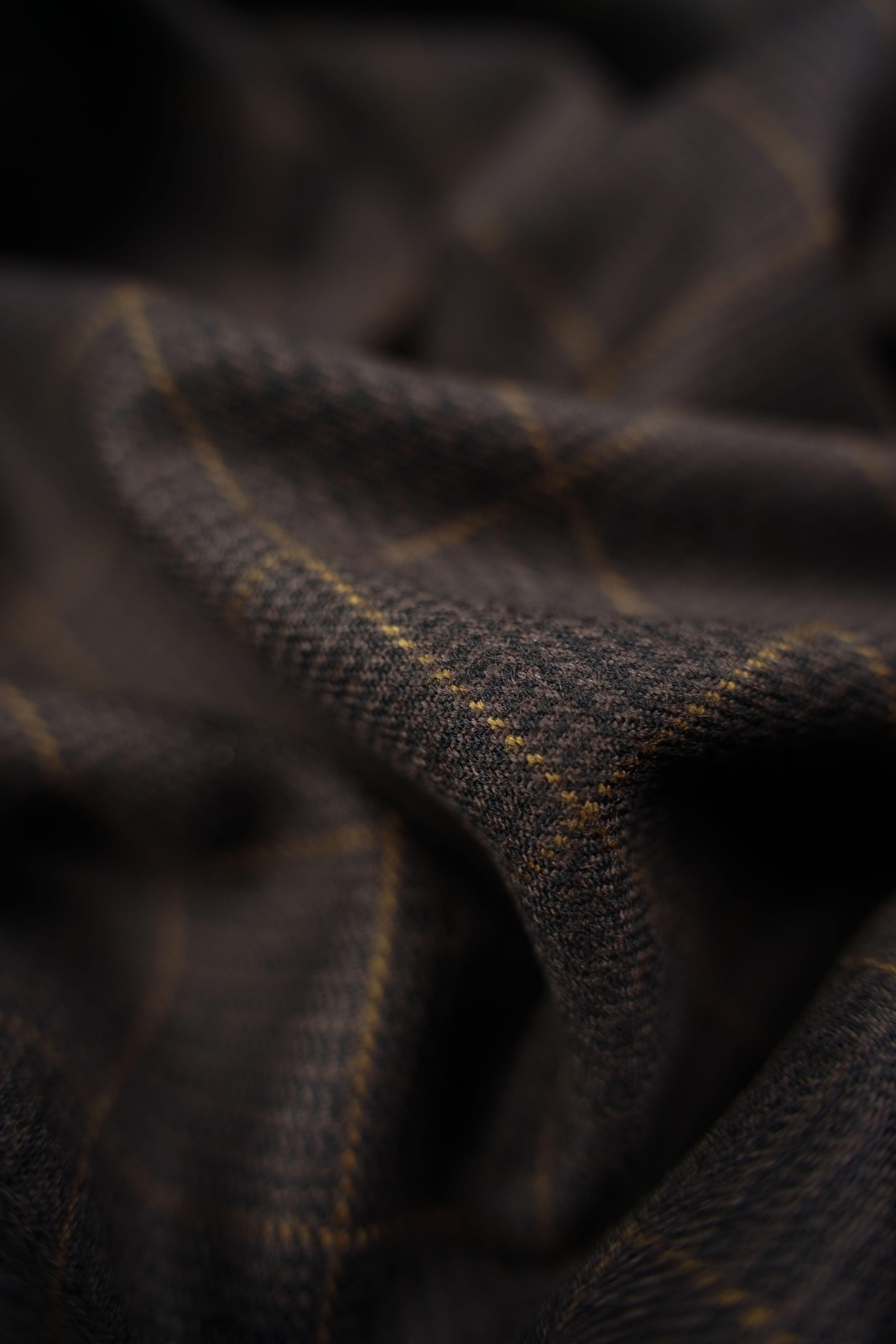 • Deadstock - Italiensk - Kostymull - Rutig - Brun - DK90