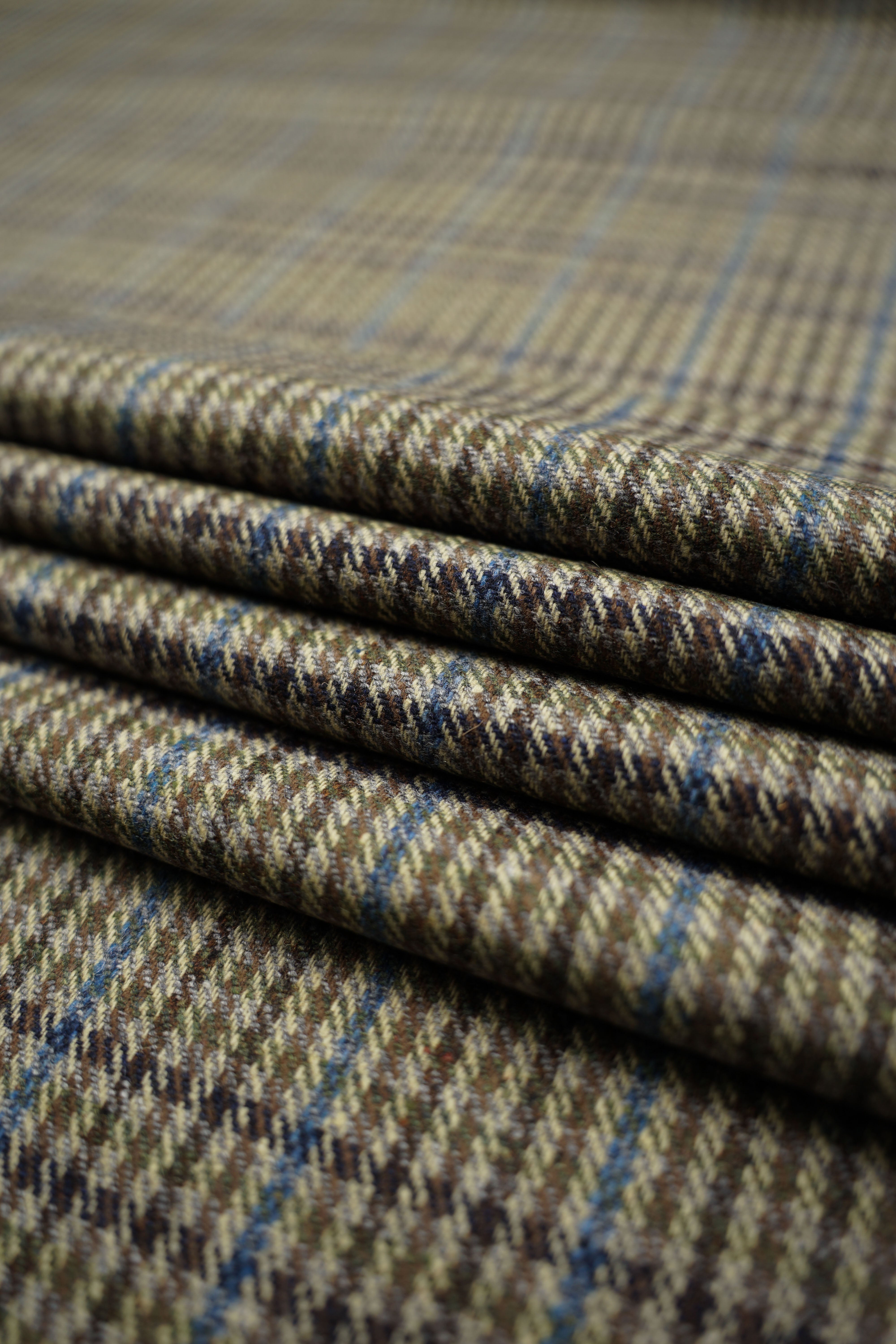 • Deadstock - Italiensk - Ull - Tweed - Beige, blå, grön - DK79