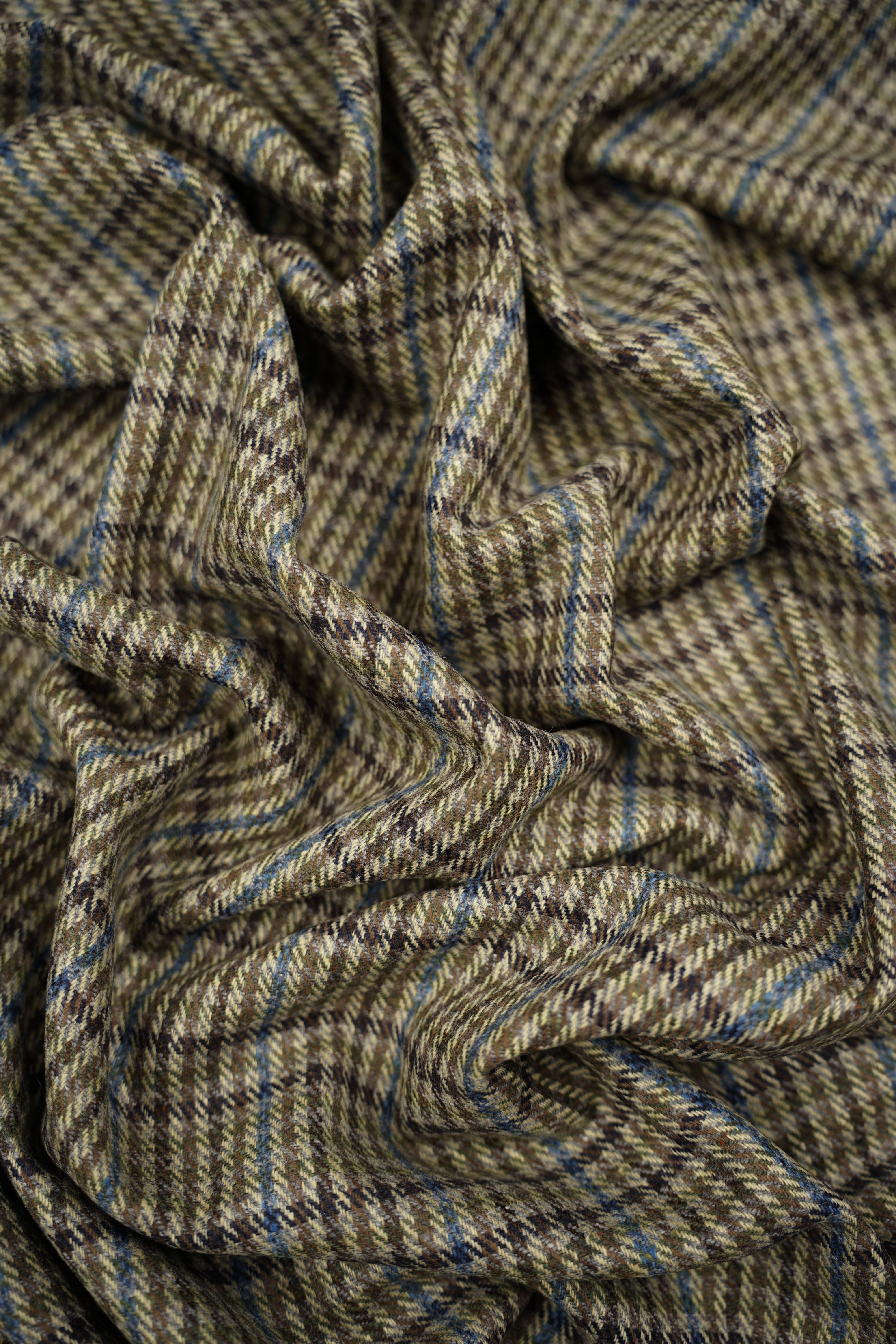 Deadstock - Italiensk - Ull - Tweed - Beige, blå, grön - DK79