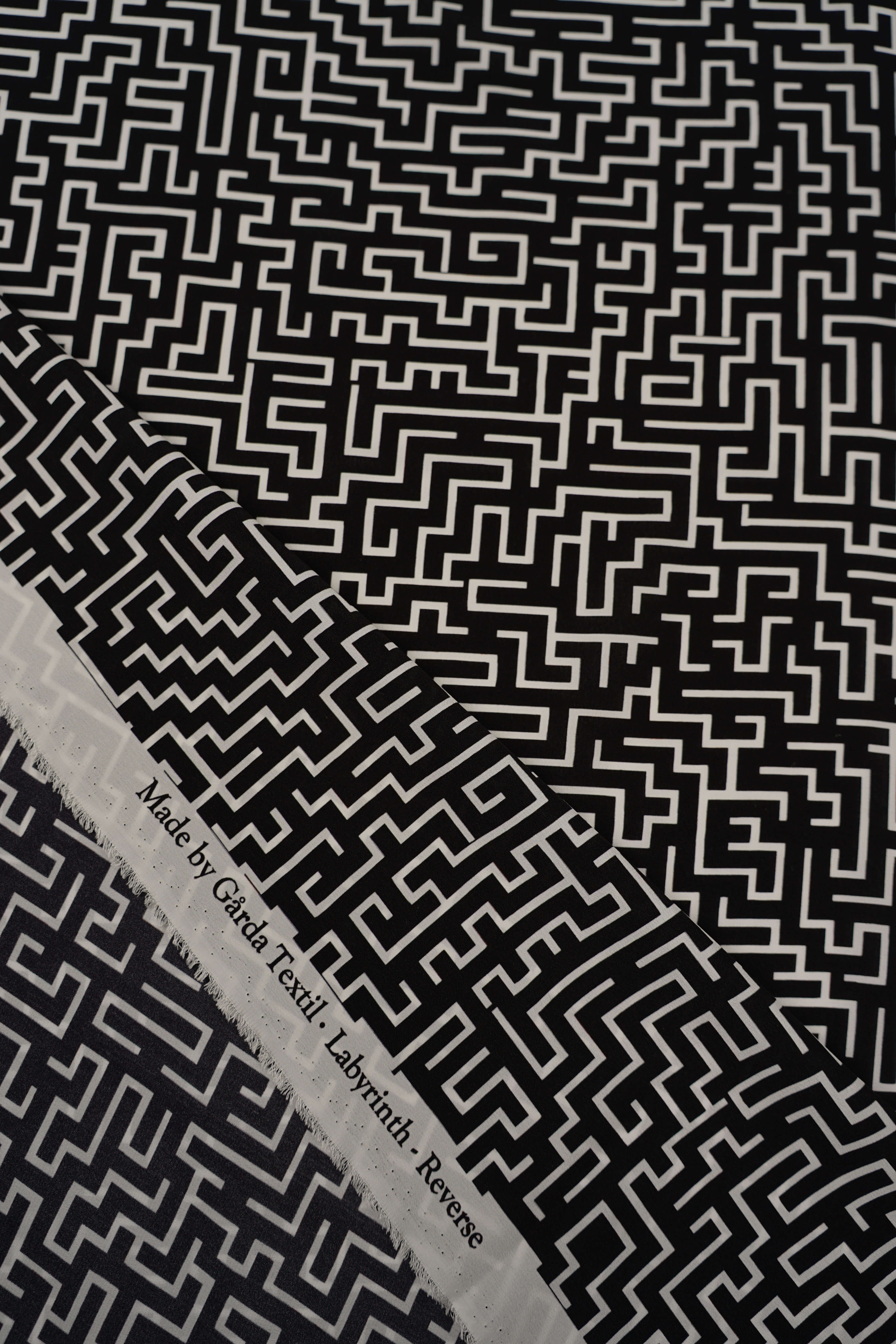 • Made by Gårda Textil - Siden - Crêpe de Chine - Labyrinth Reverse - Svart/Vit