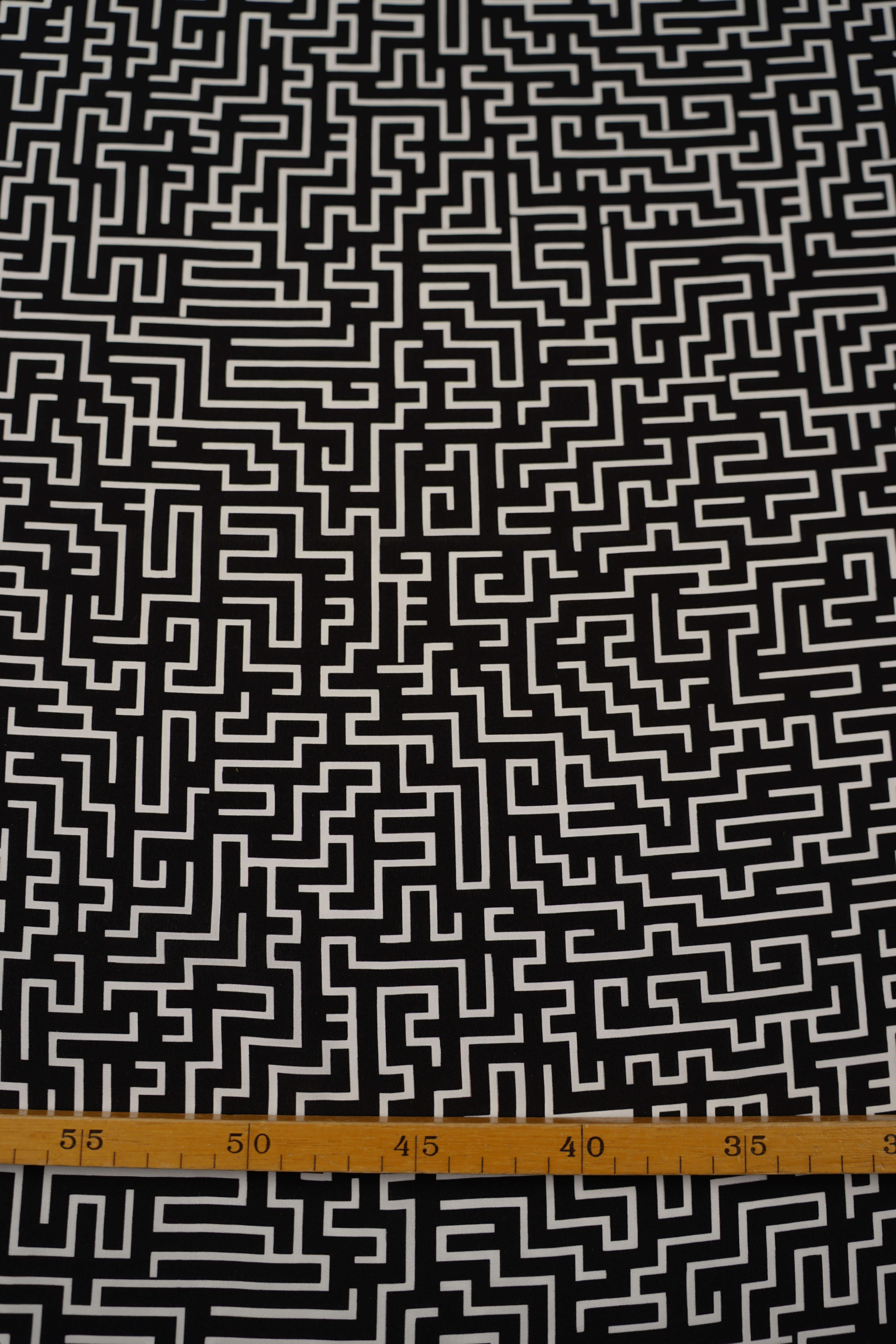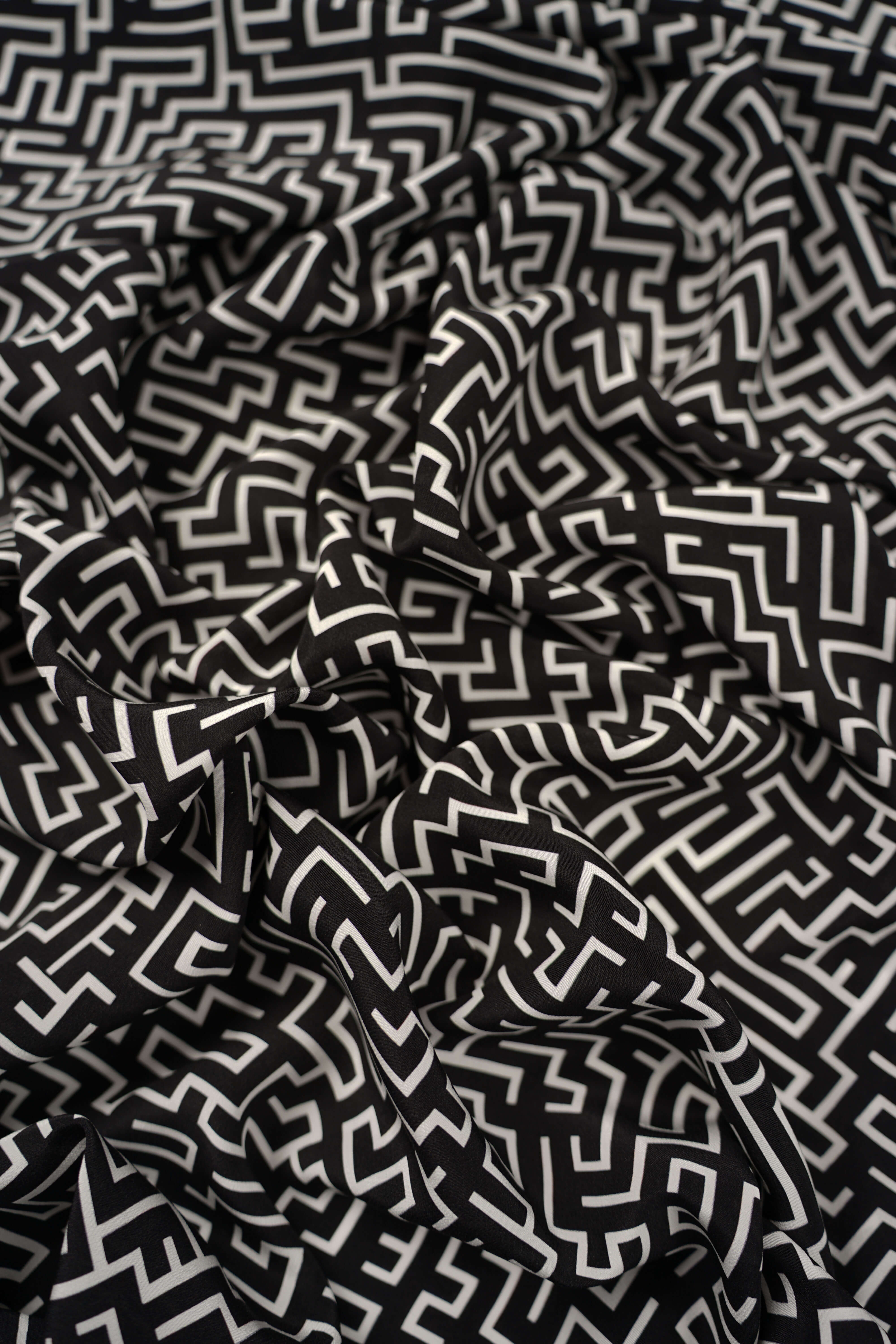 Made by Gårda Textil - Siden - Crêpe de Chine - Labyrinth Reverse - Svart/Vit
