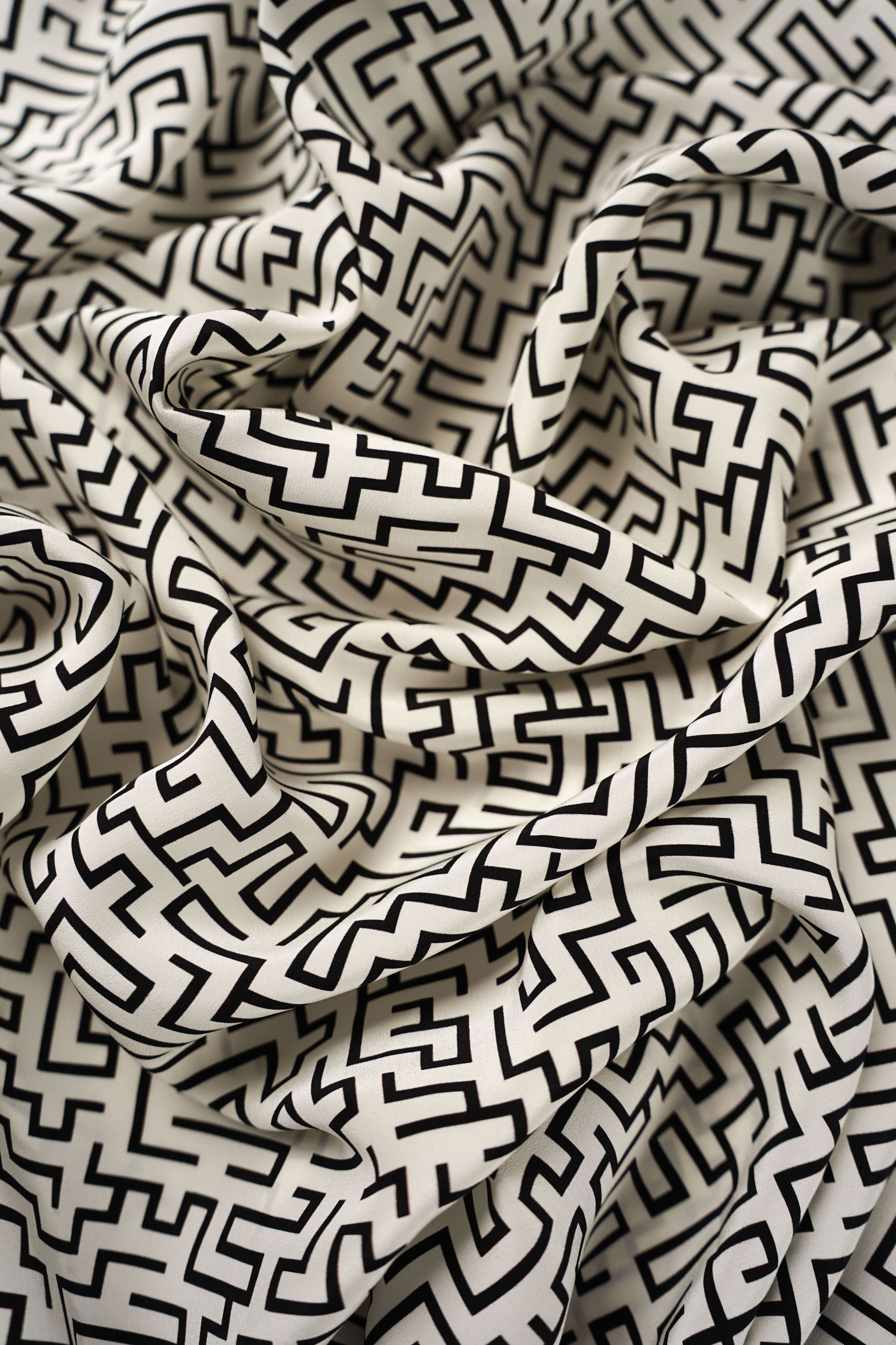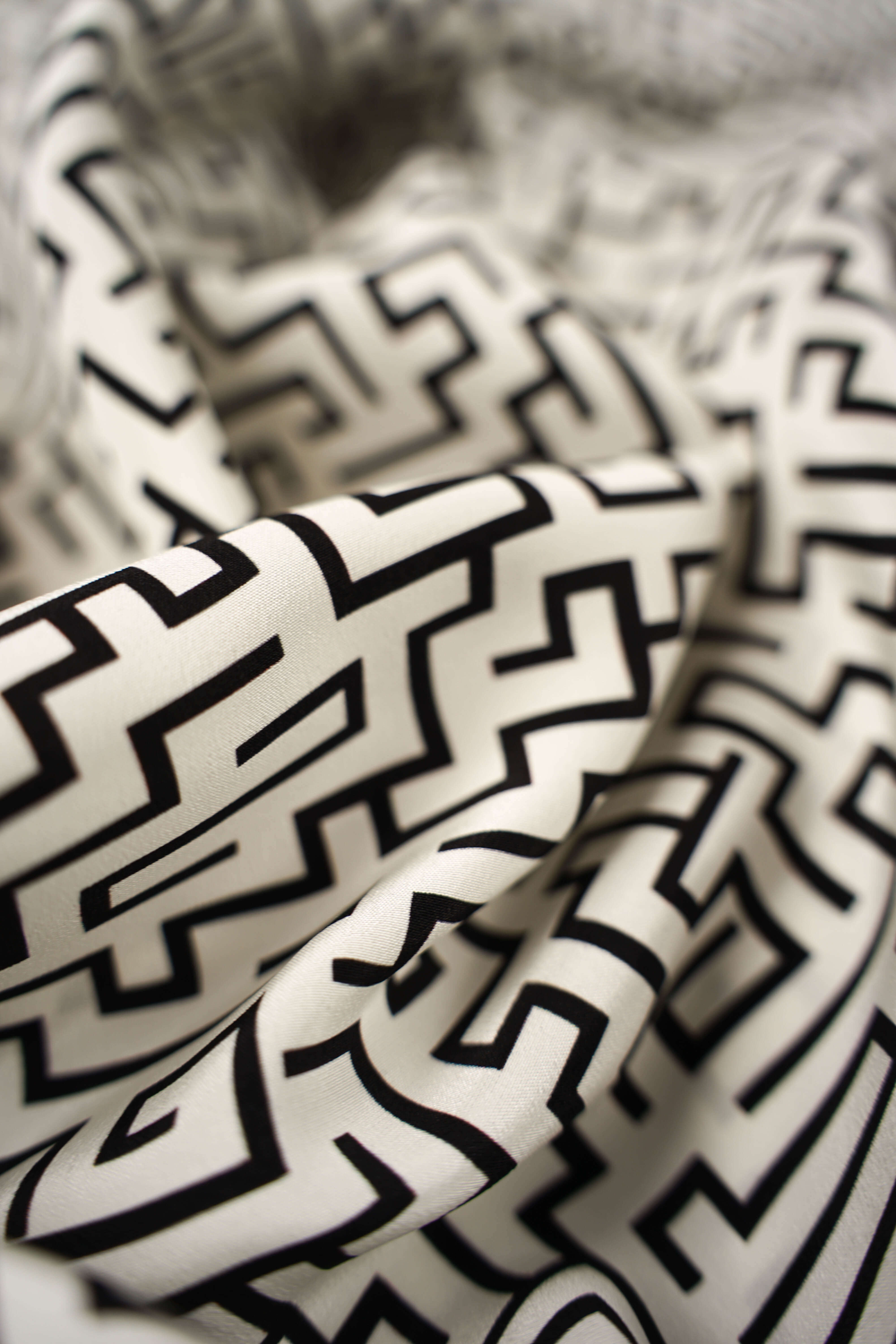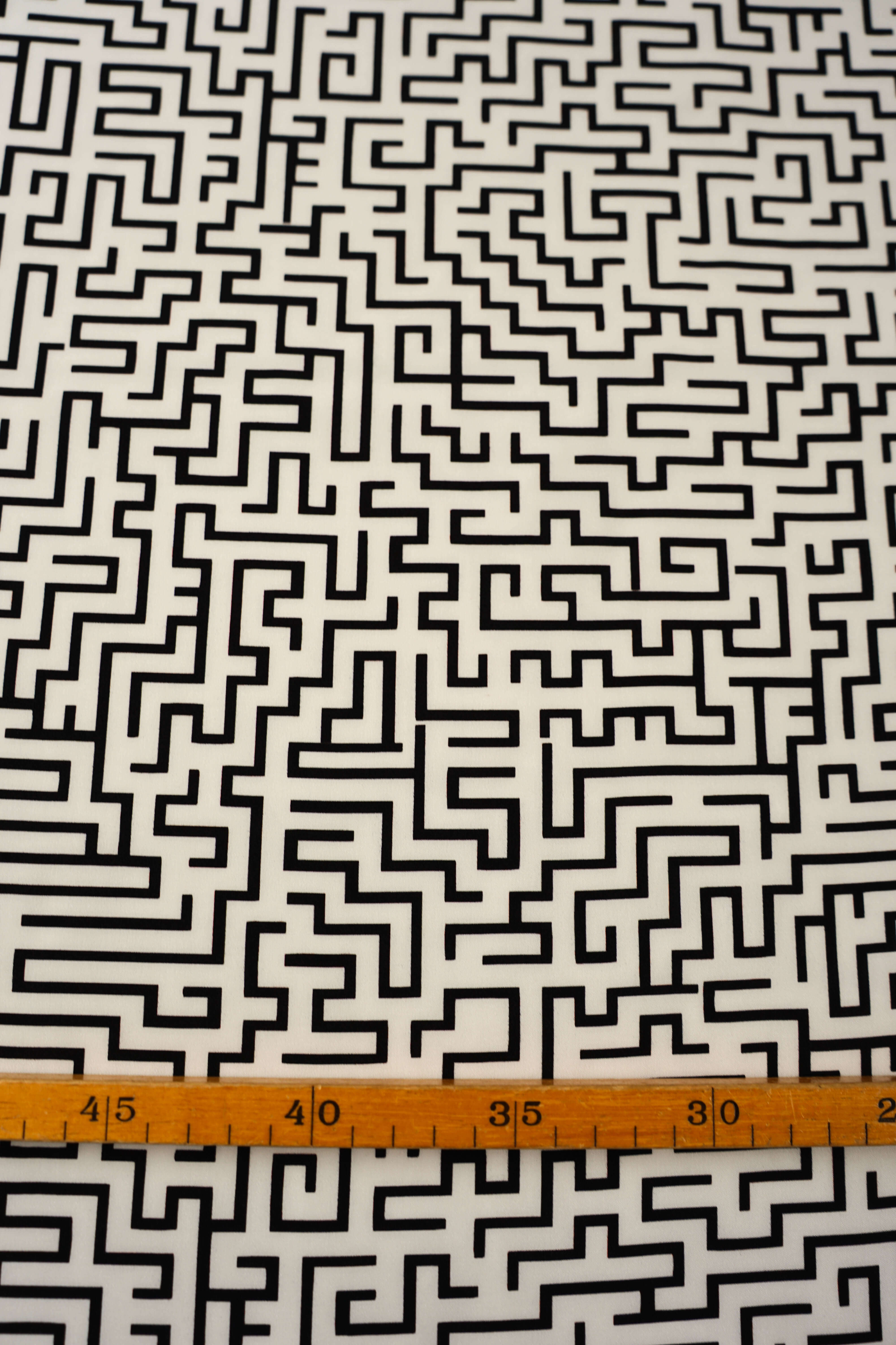 Made by Gårda Textil - Siden - Crêpe de Chine - Labyrinth - Vit/Svart