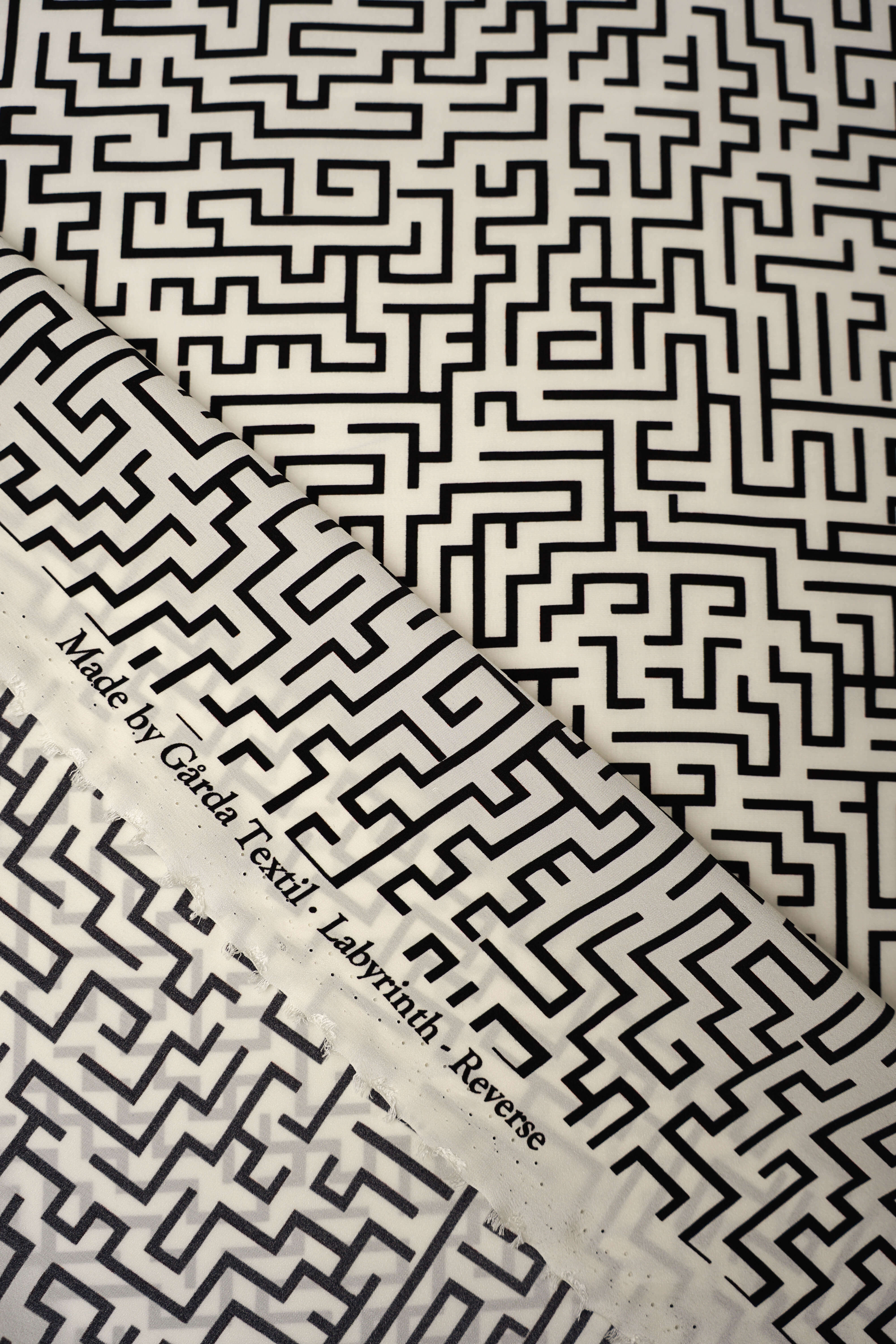 • Made by Gårda Textil - Siden - Crêpe de Chine - Labyrinth - Vit/Svart