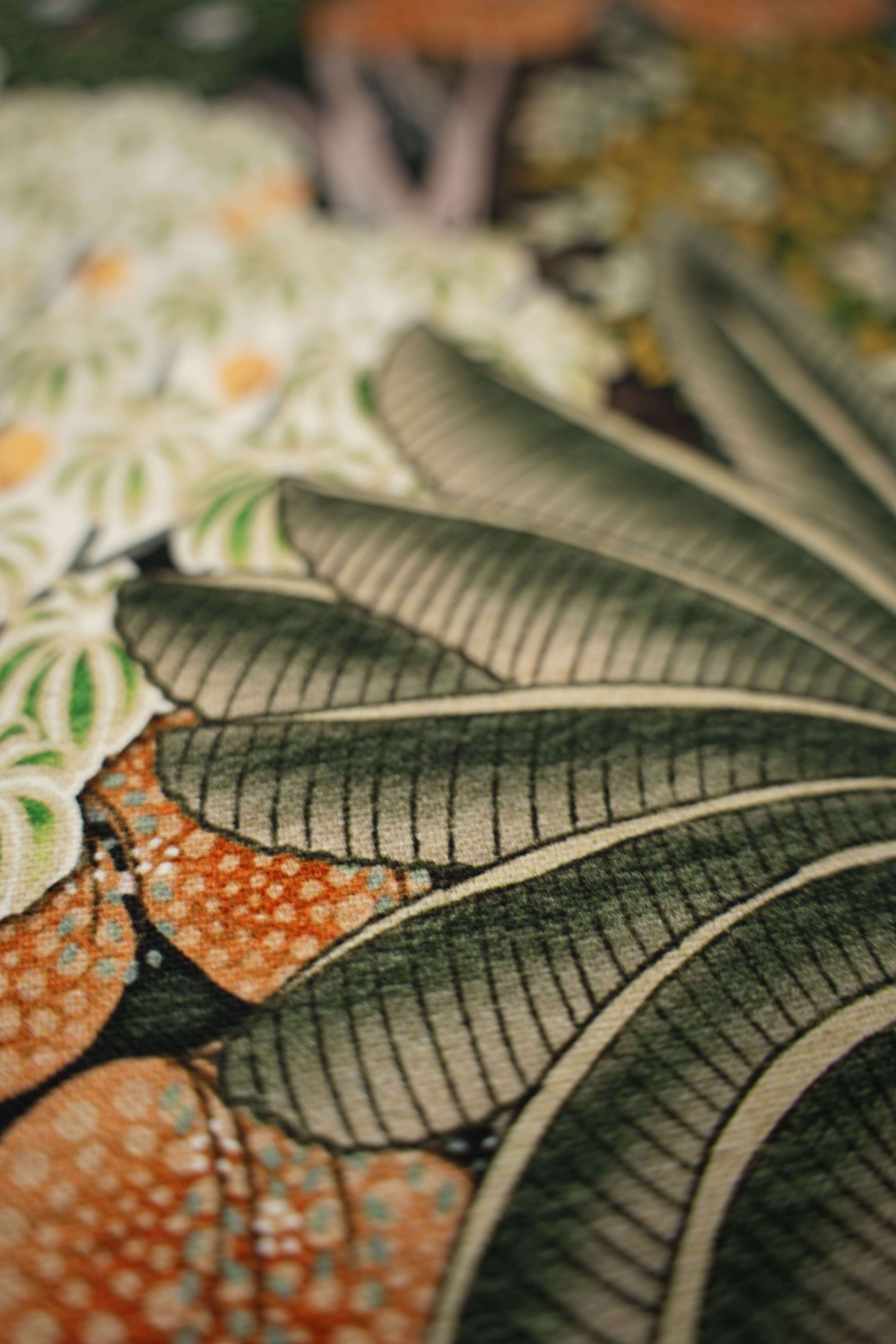 Otroligt snyggt möbeltyg med borstad yta och vackert stort mönster