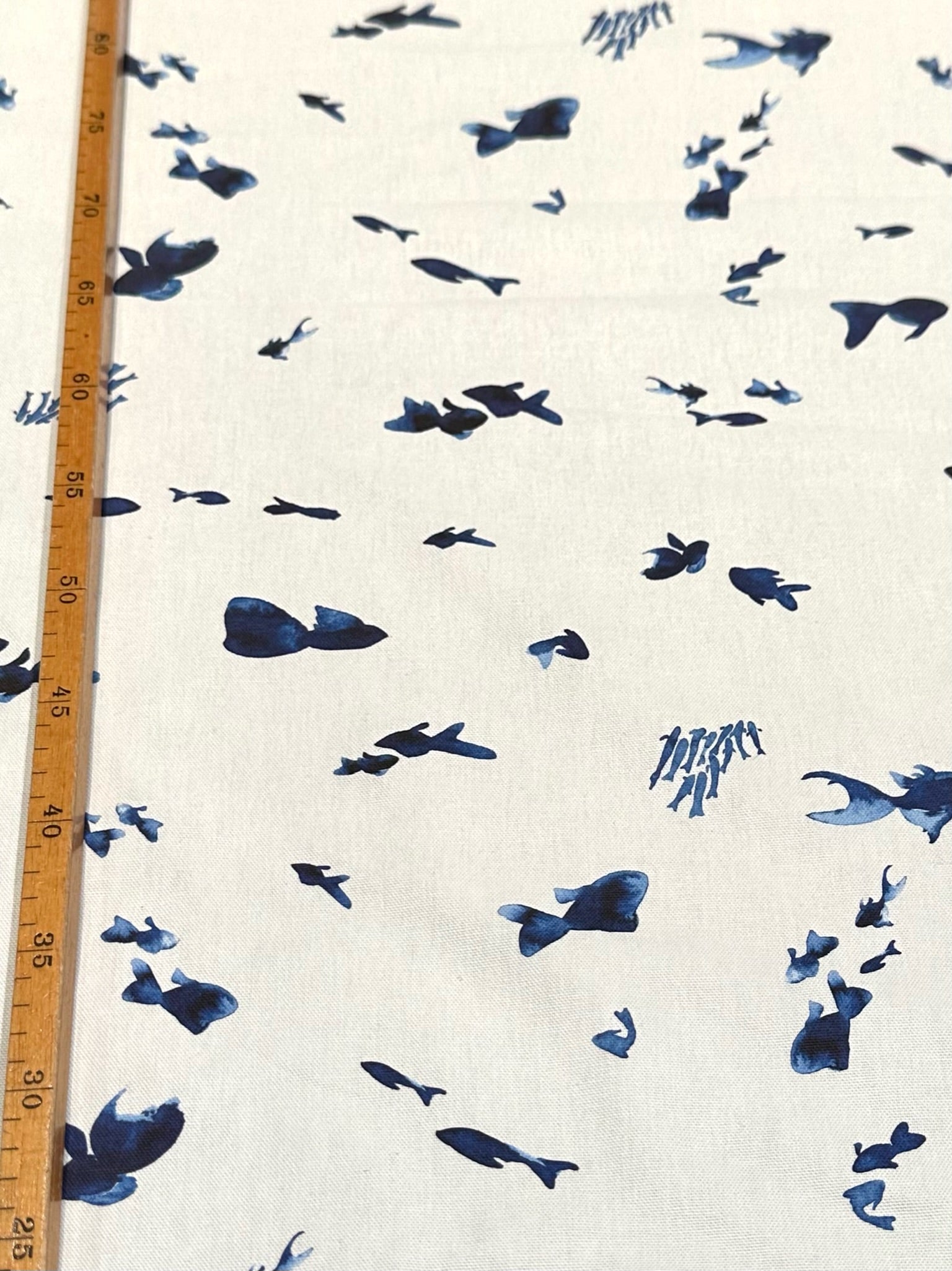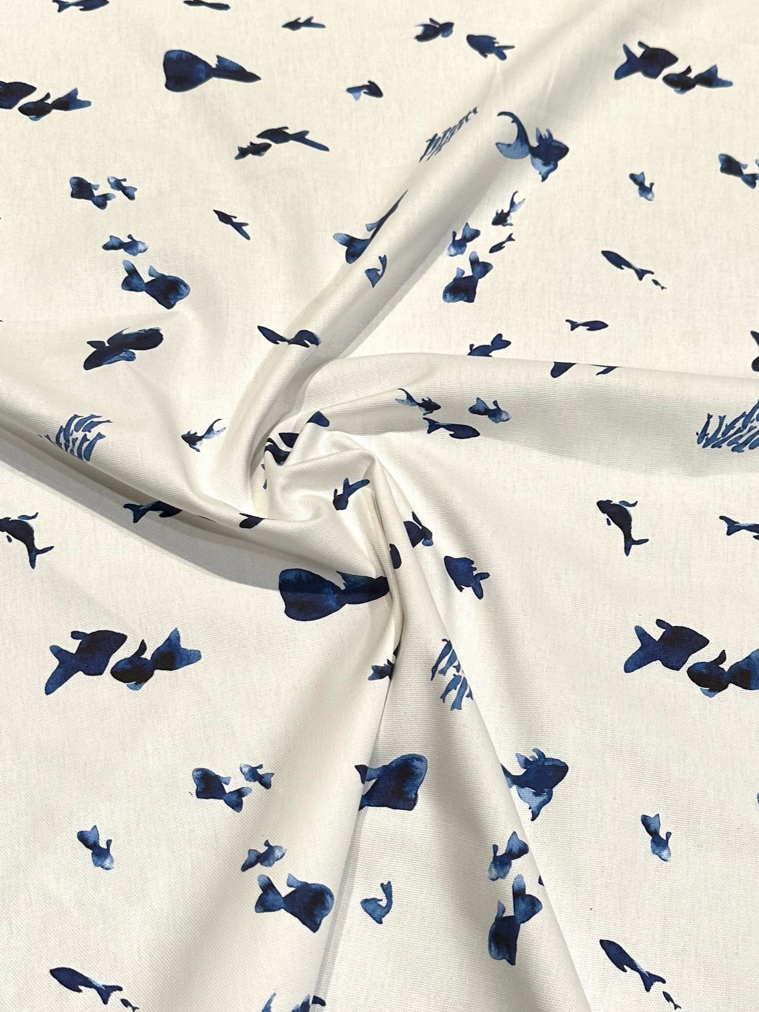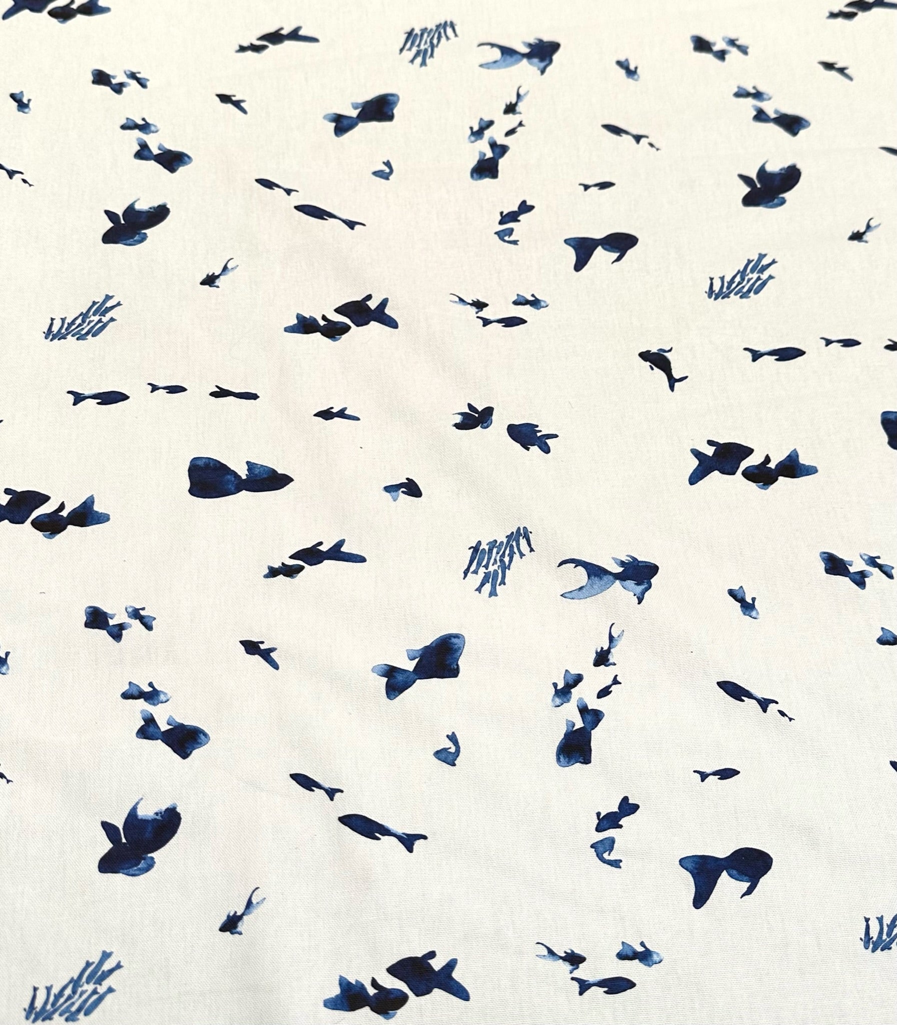 Spanskt Gardintyg Bomull Blå Fiskar
