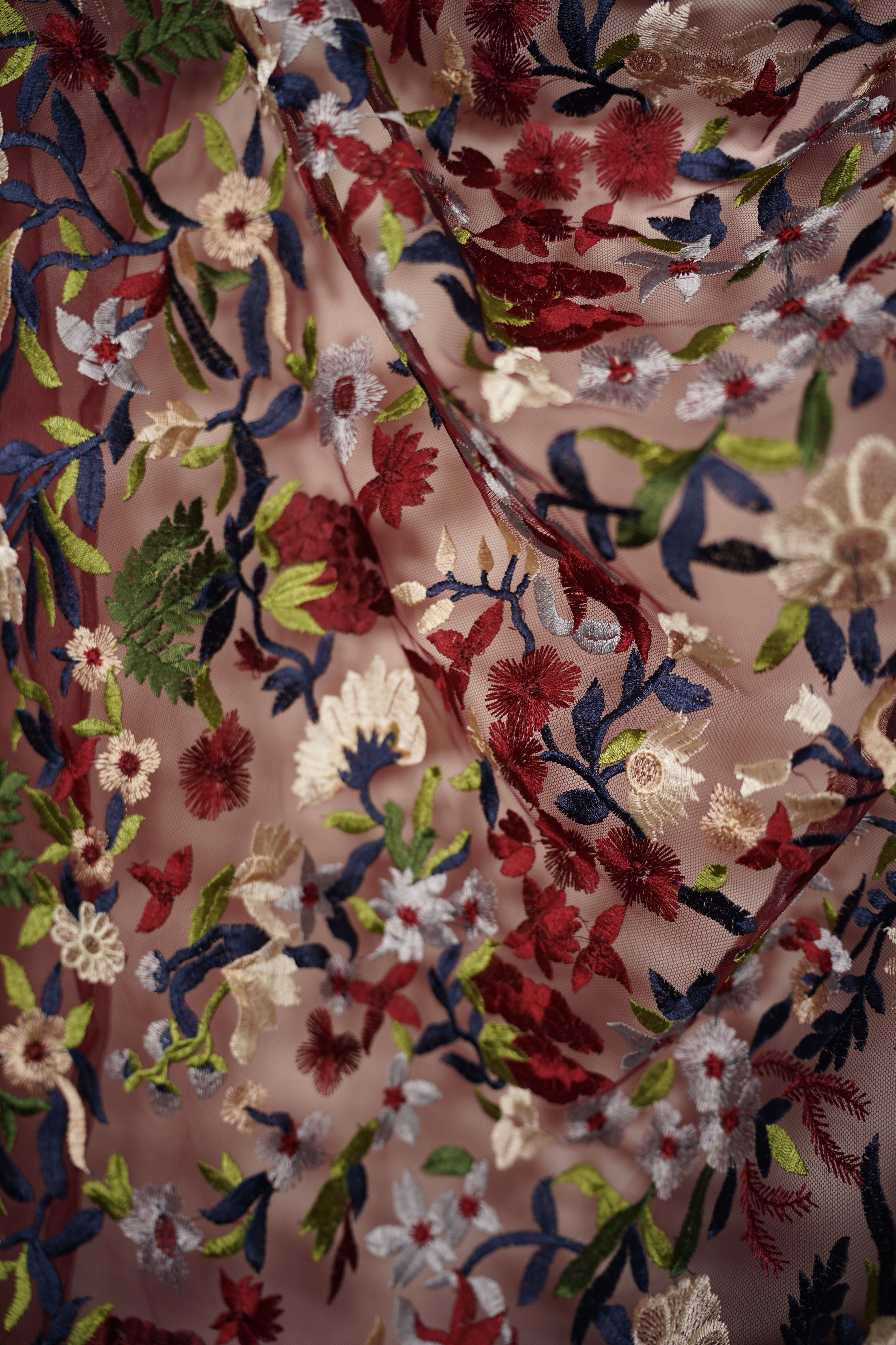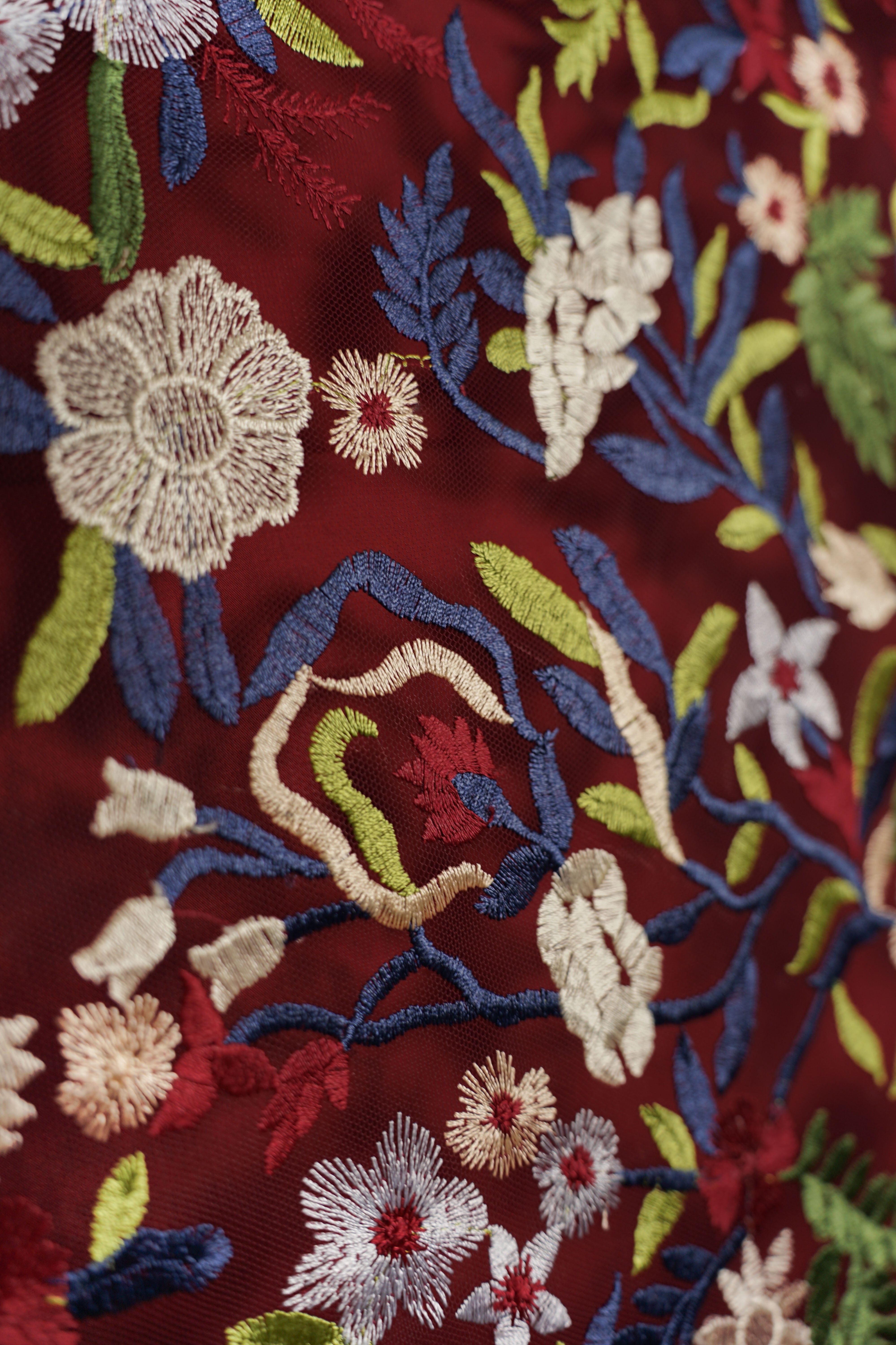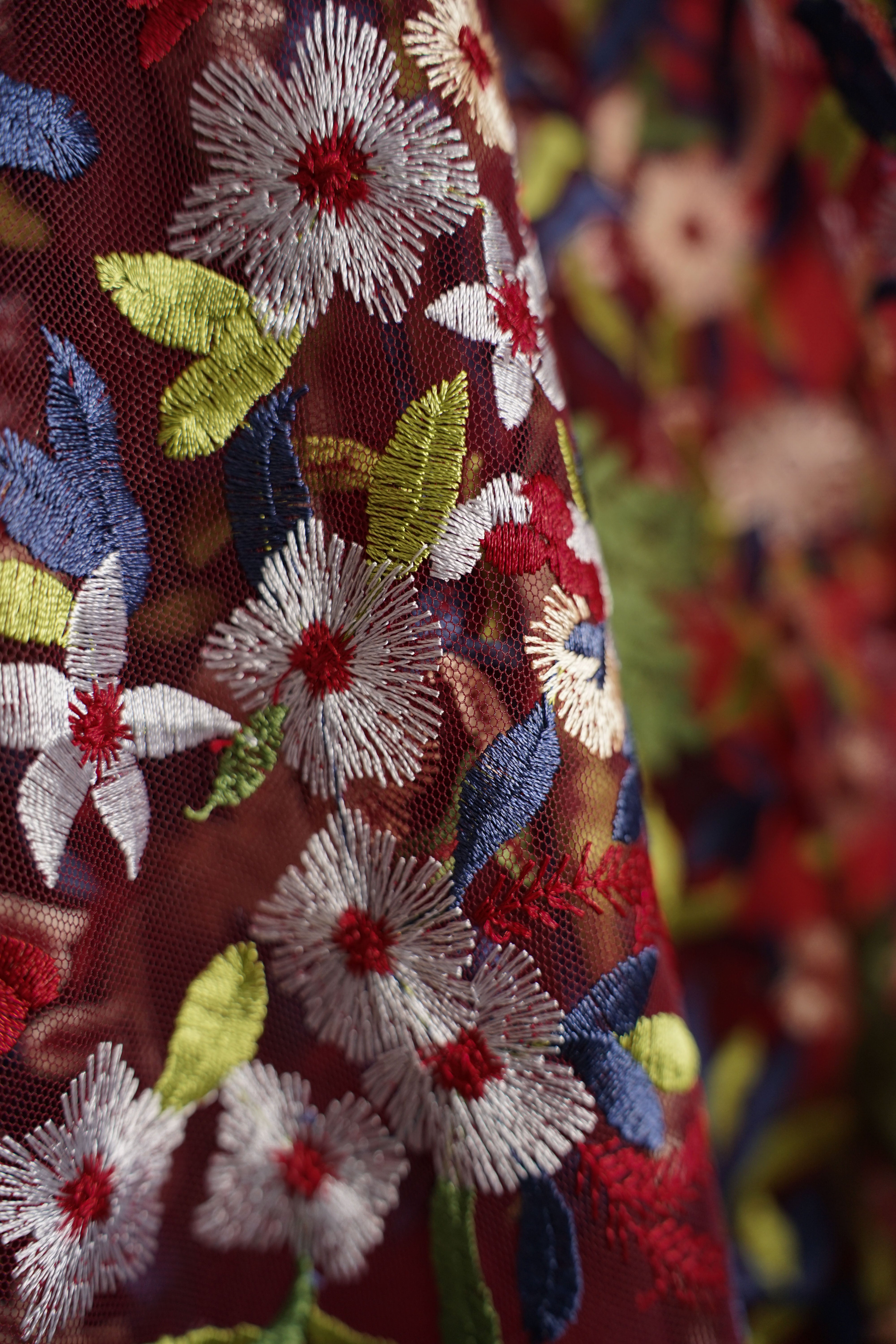 Under broderad tyll från italien med ett regn av blommor