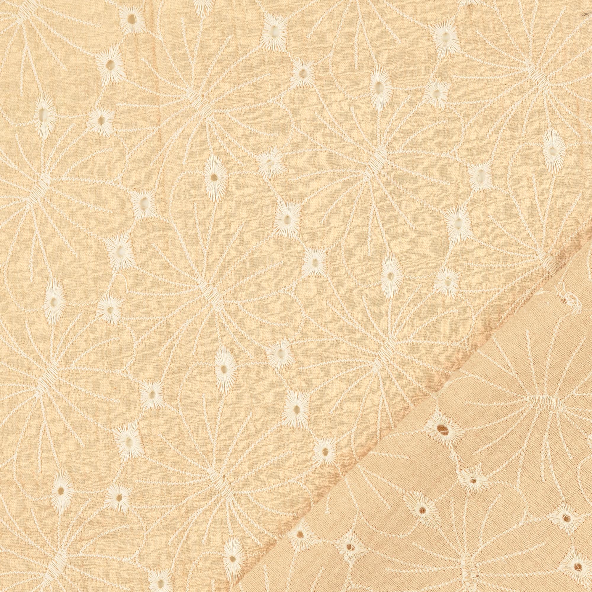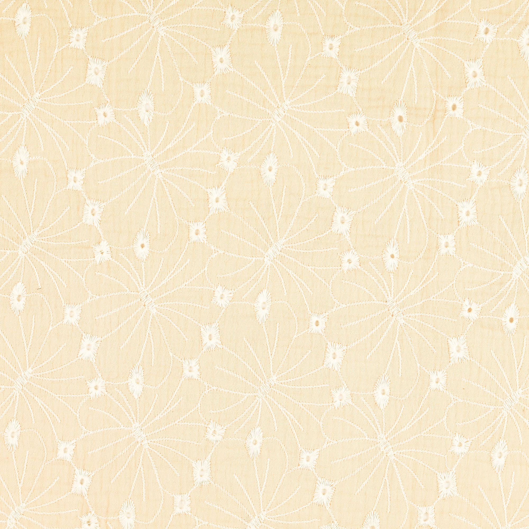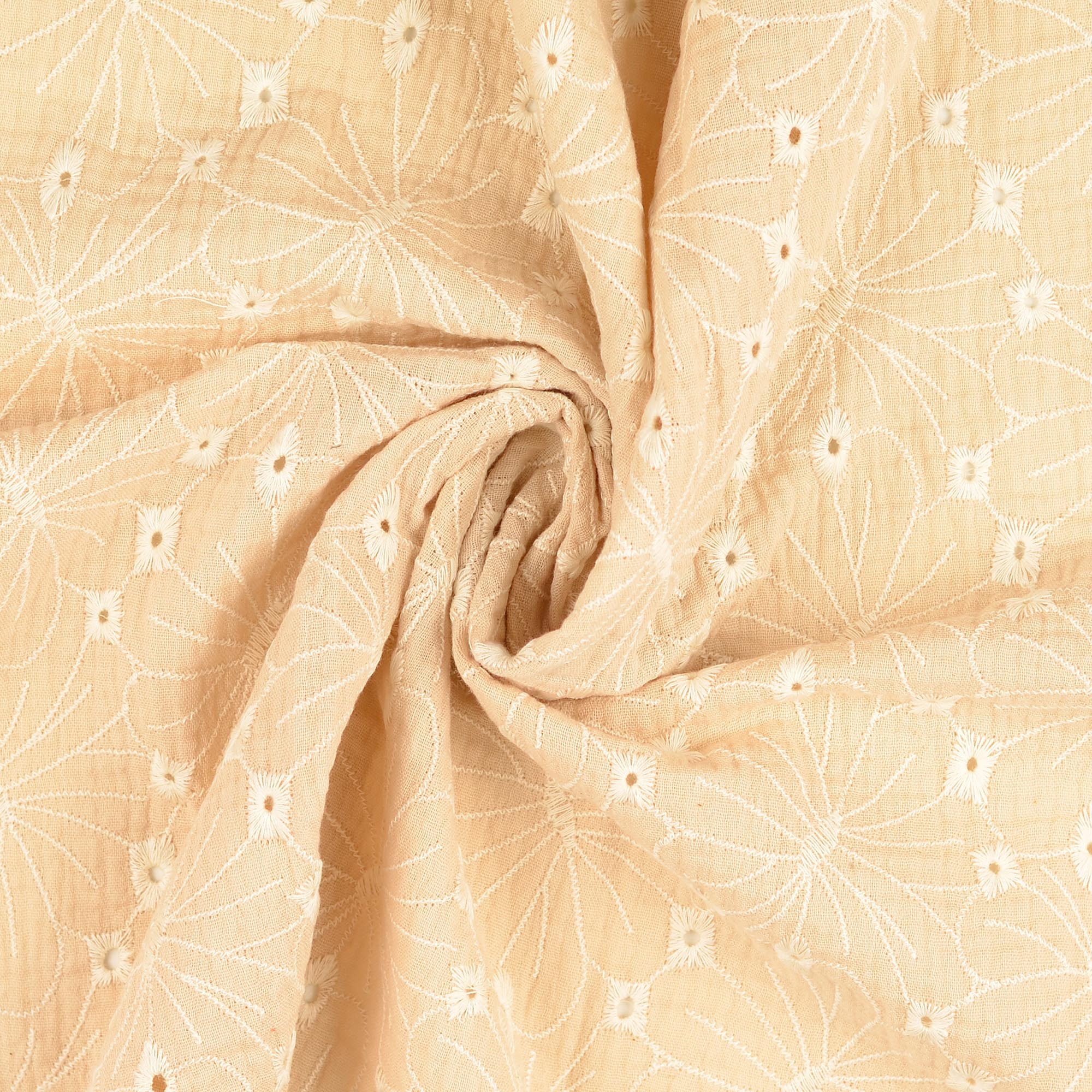 Broderad Muslin - Double Gauze - Bomull - Blommor - Beige