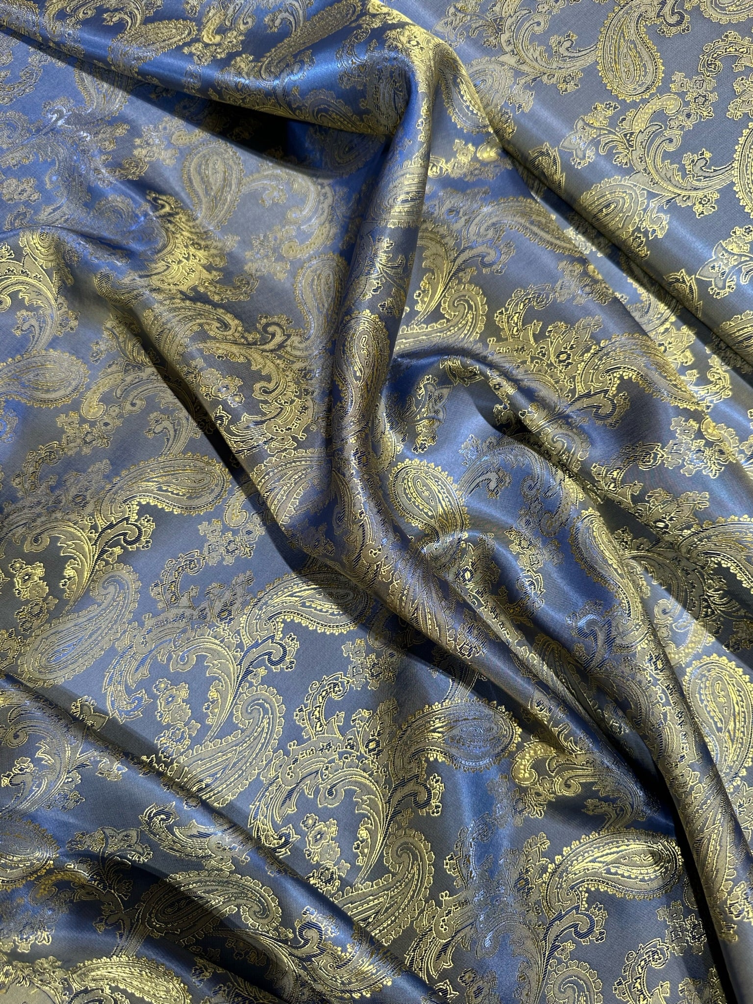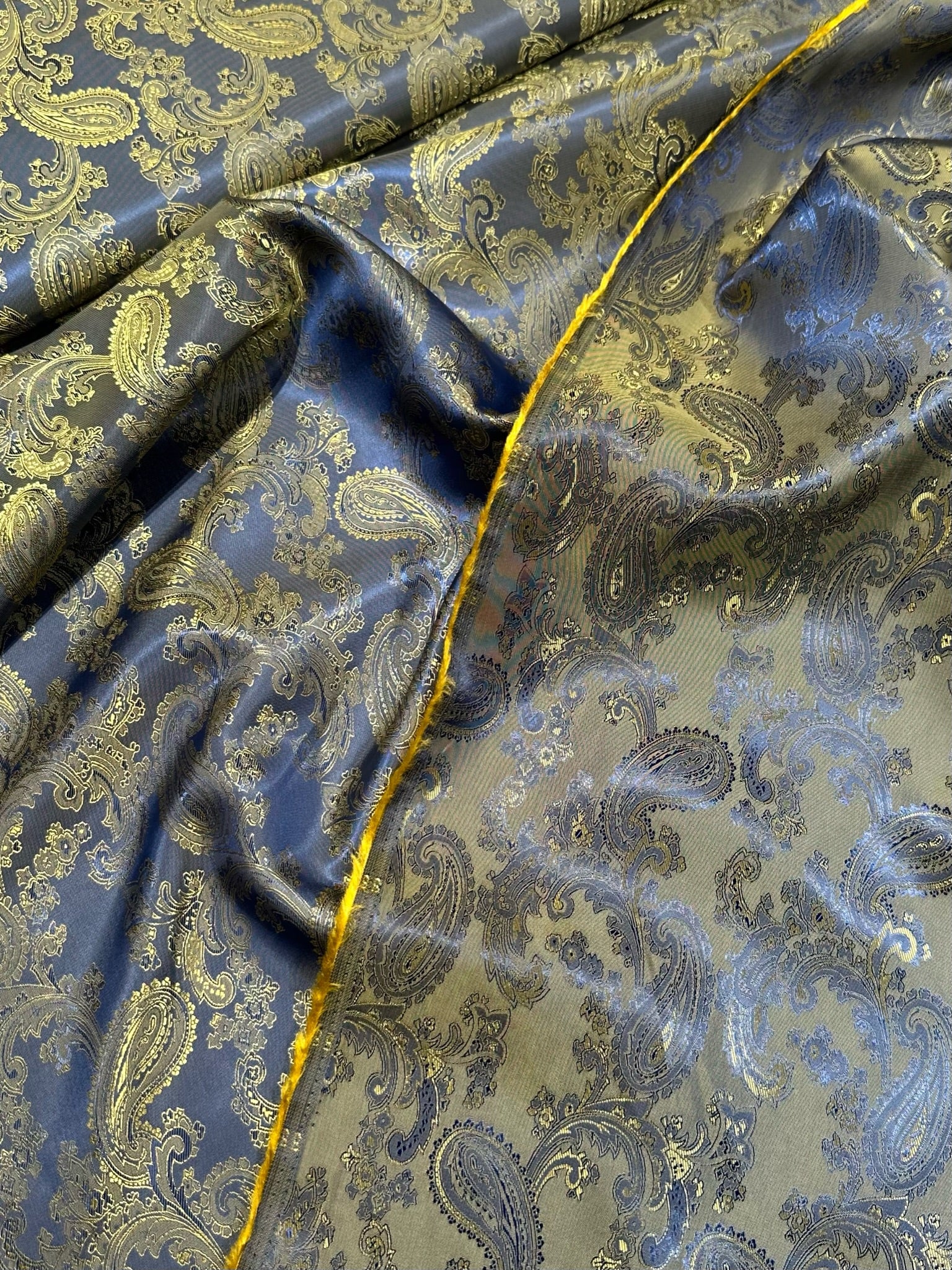 • Mönstrat Foder Paisley Viskos Polyester Blå & Gul C7