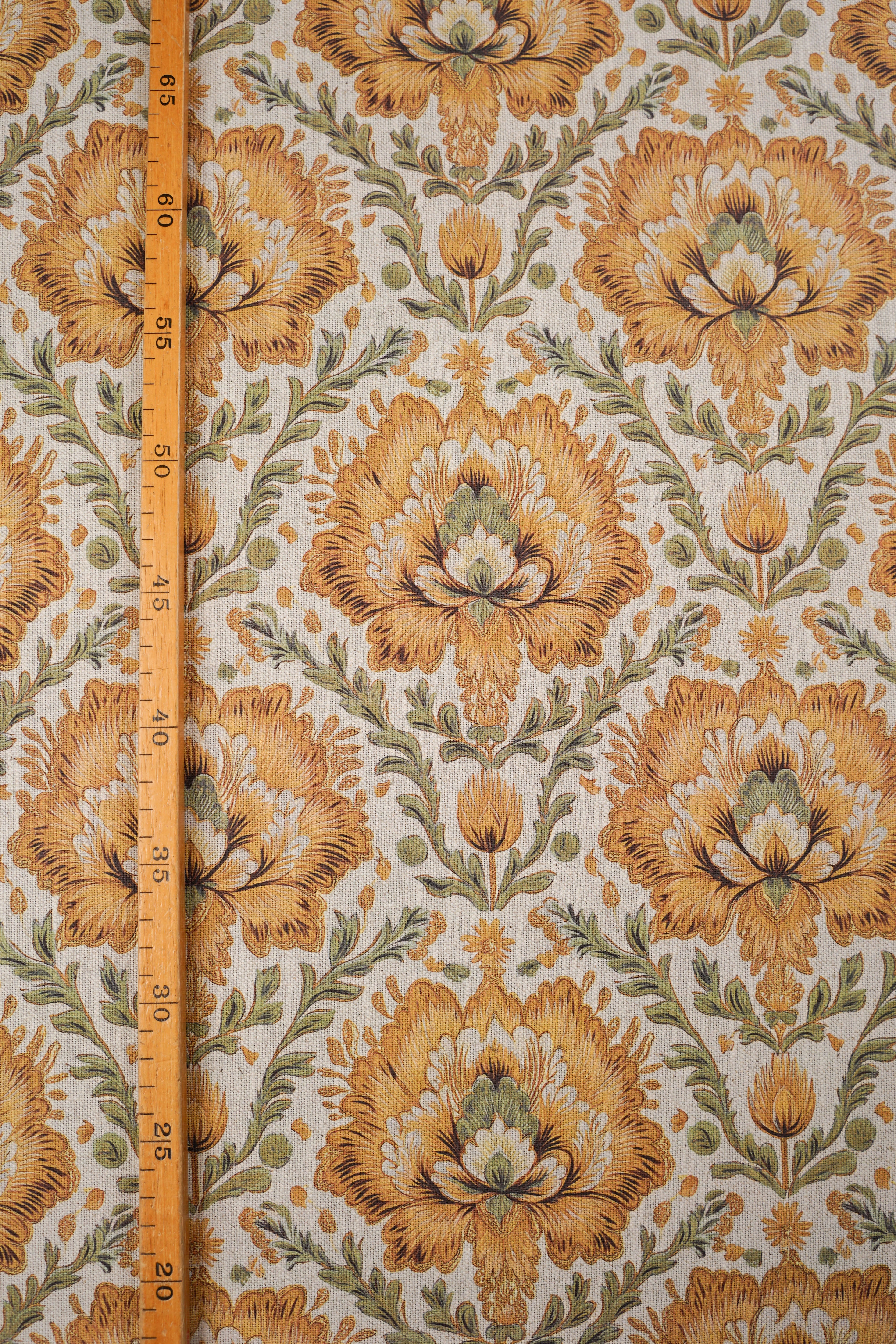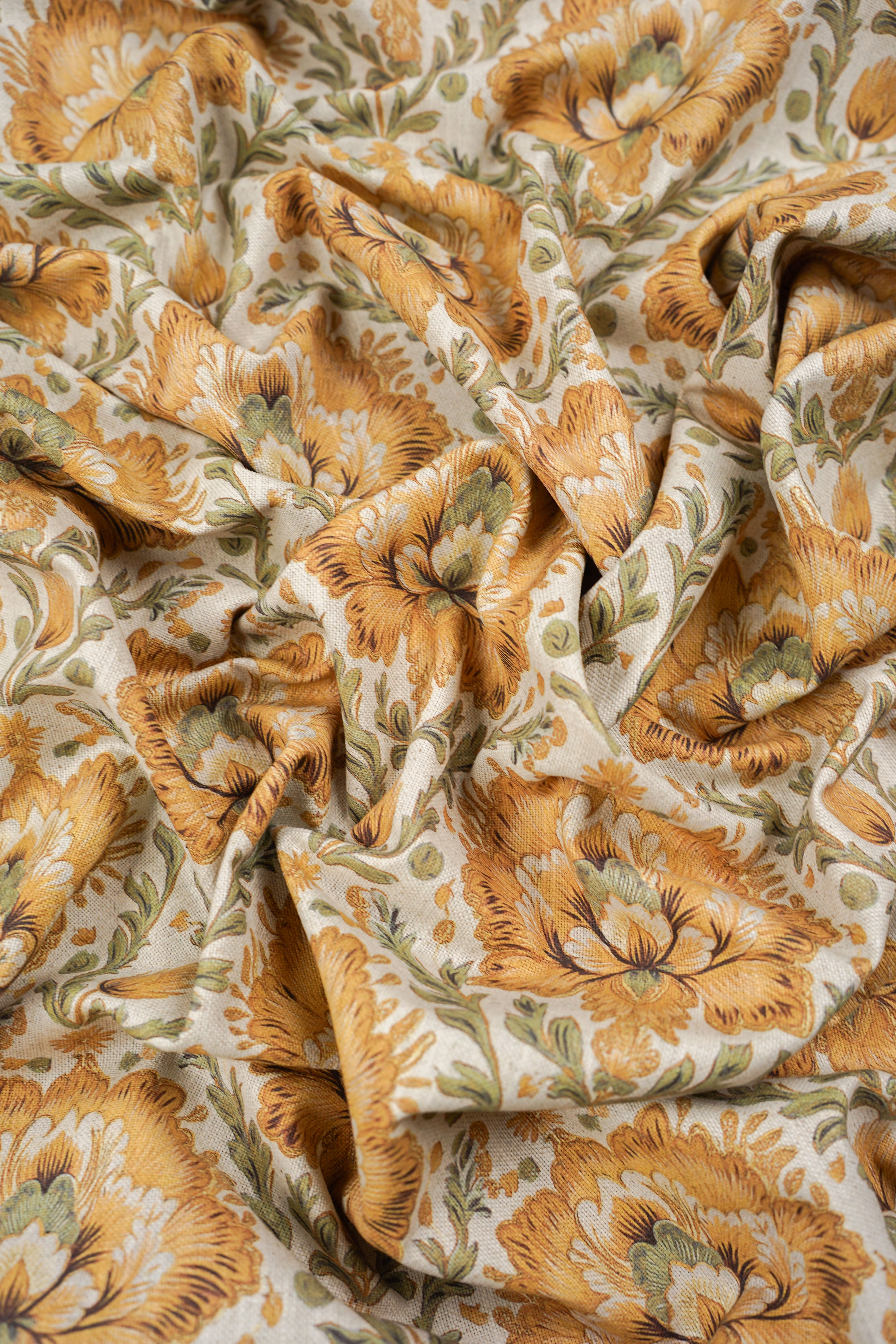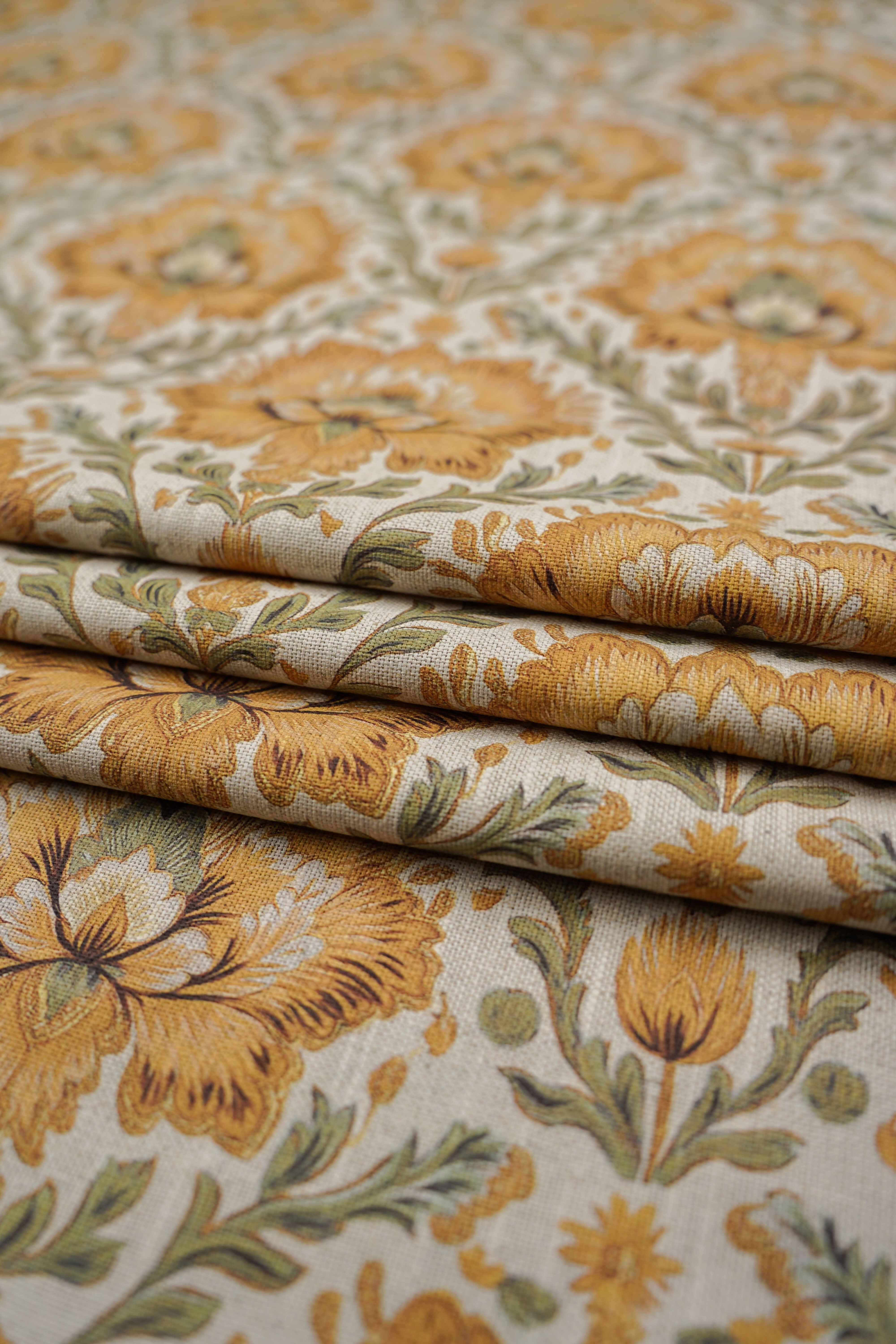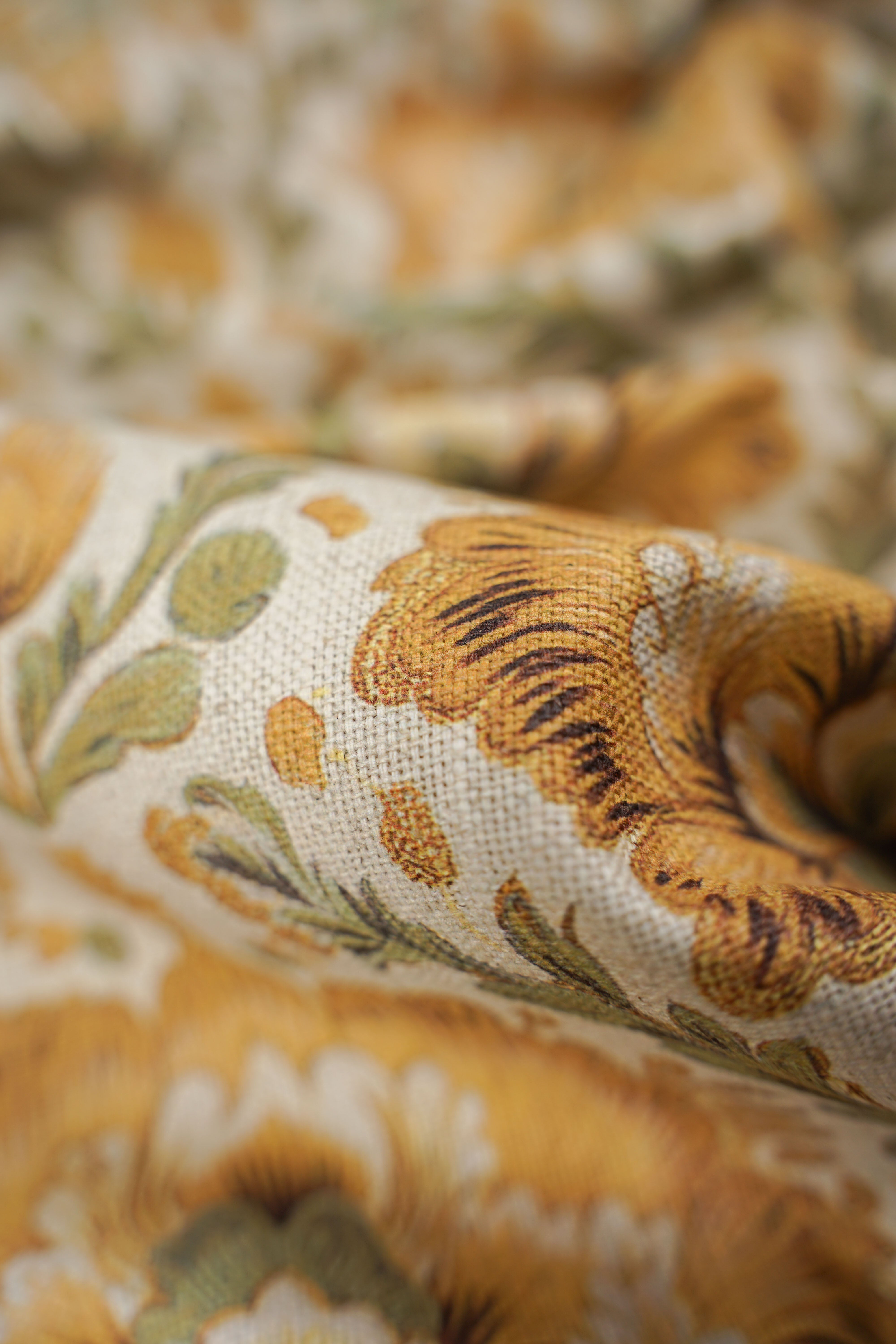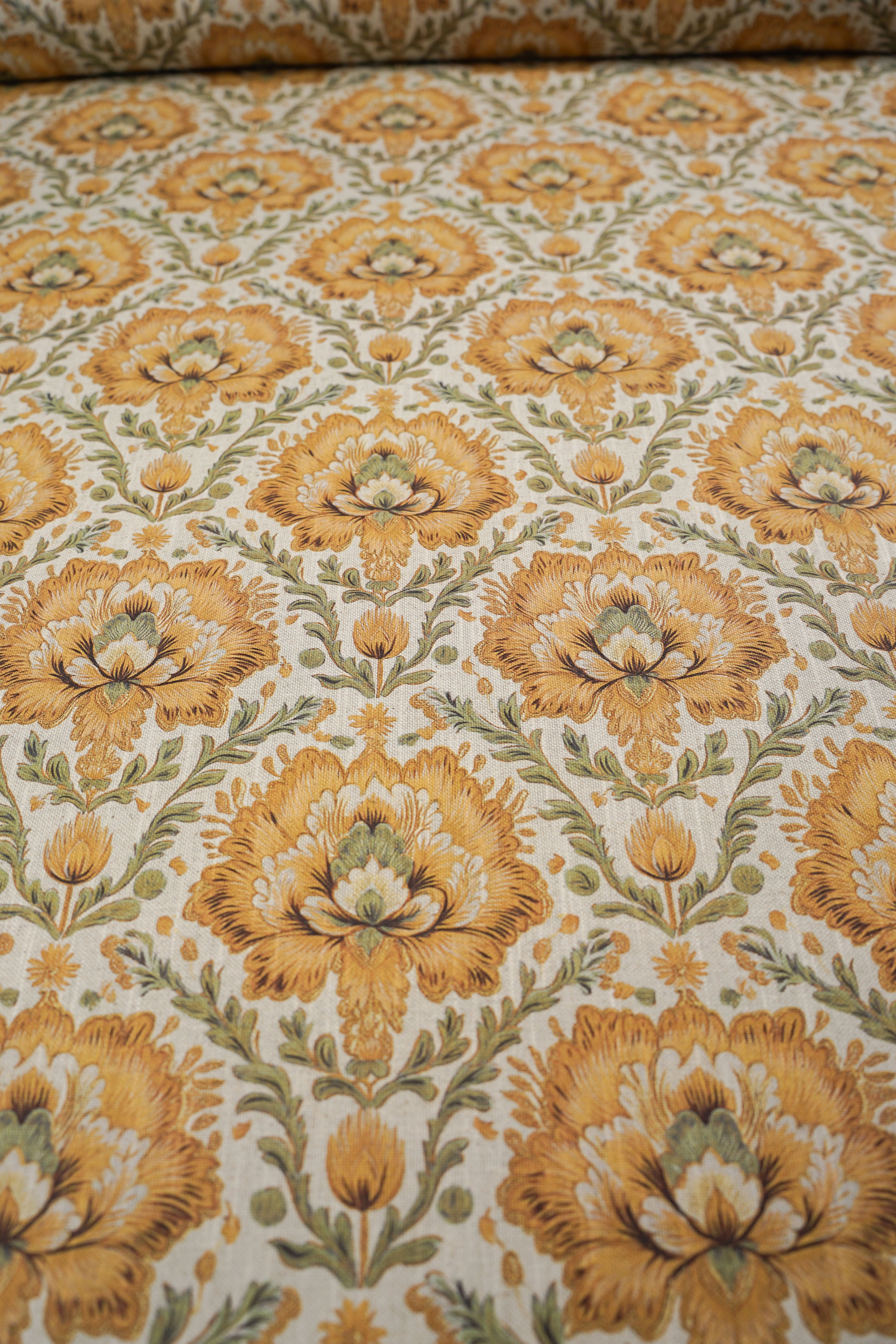 Mönstrat - Gardintyg - Lin - Bomull - Blomster - Karma mostaza
