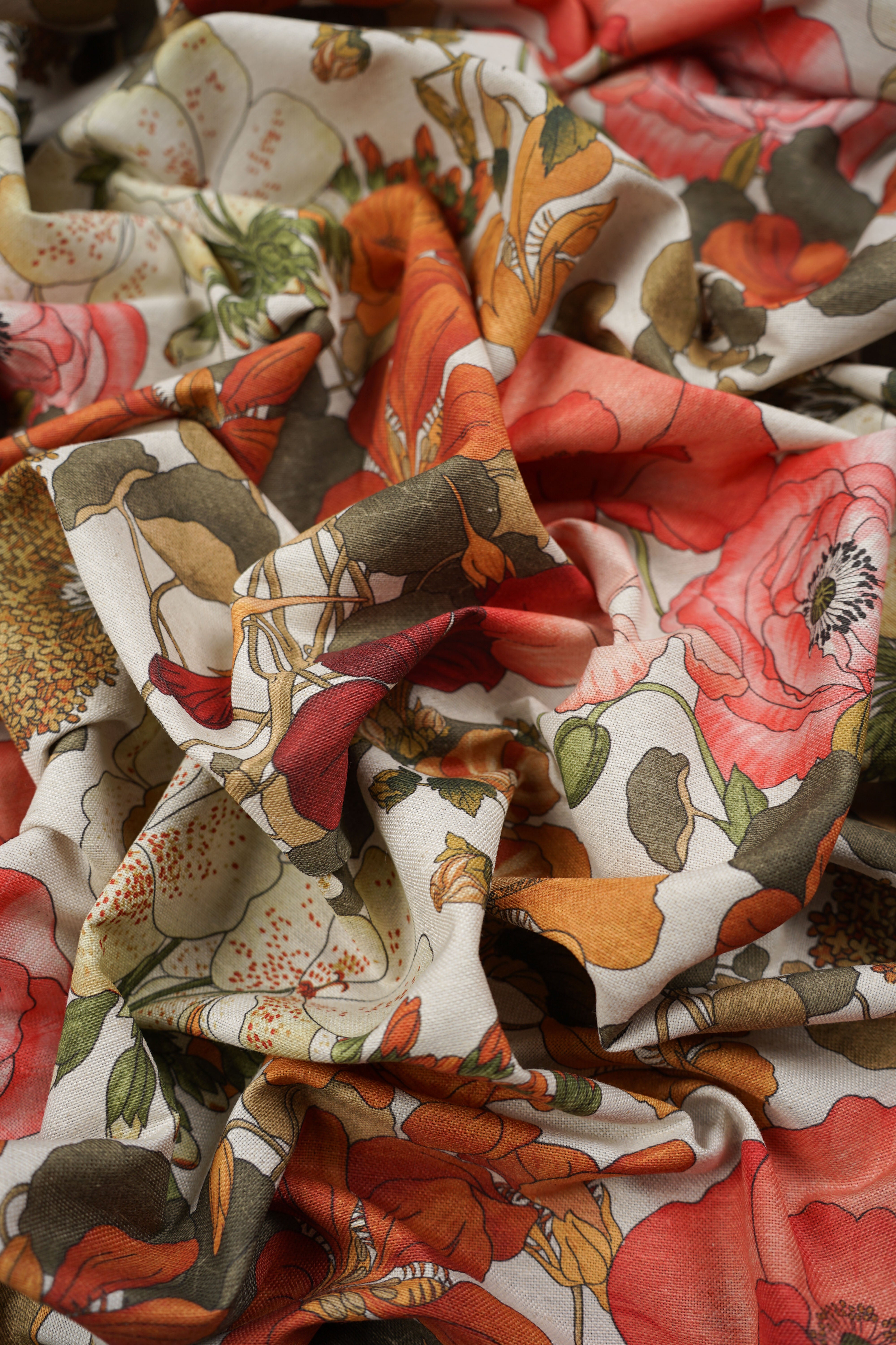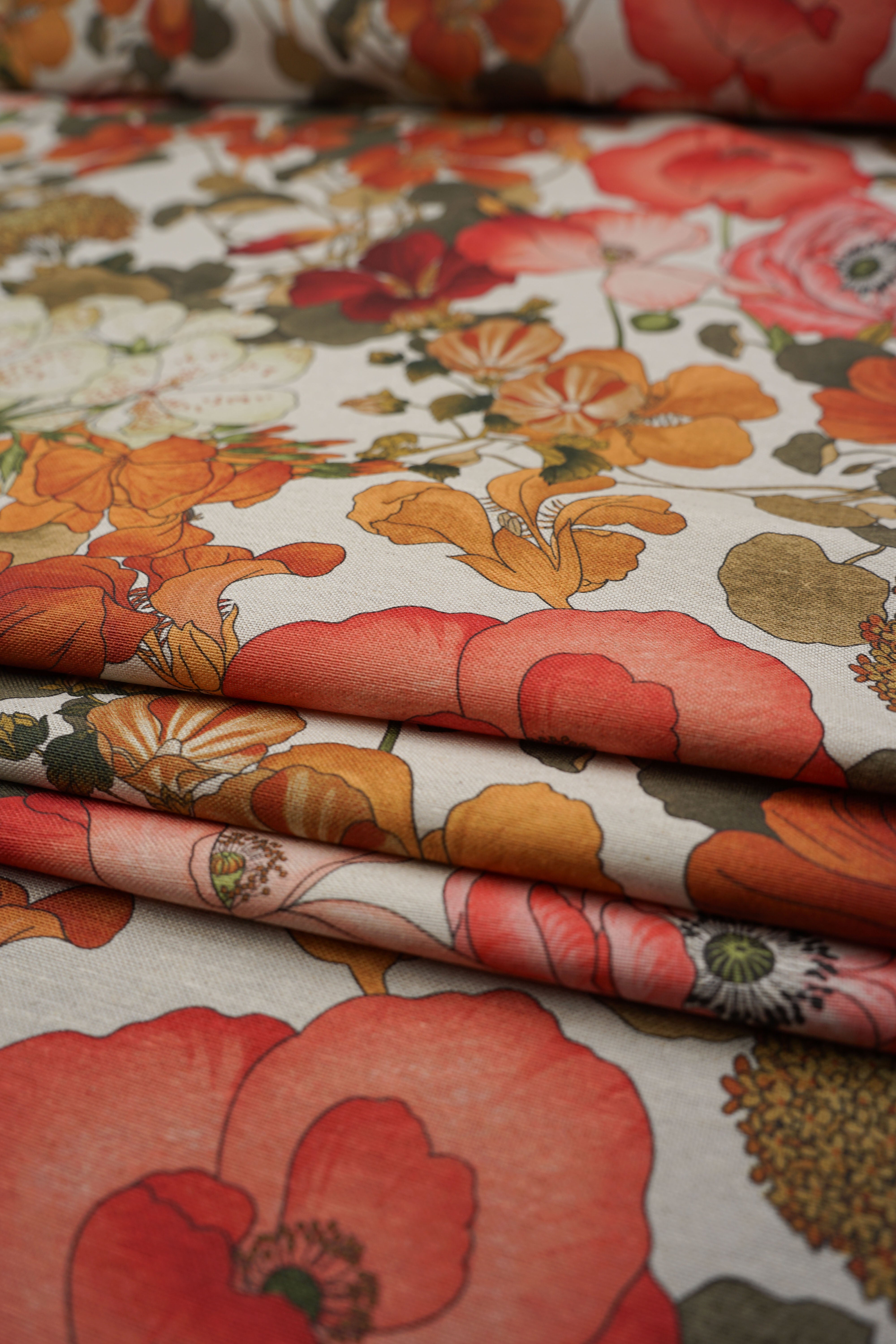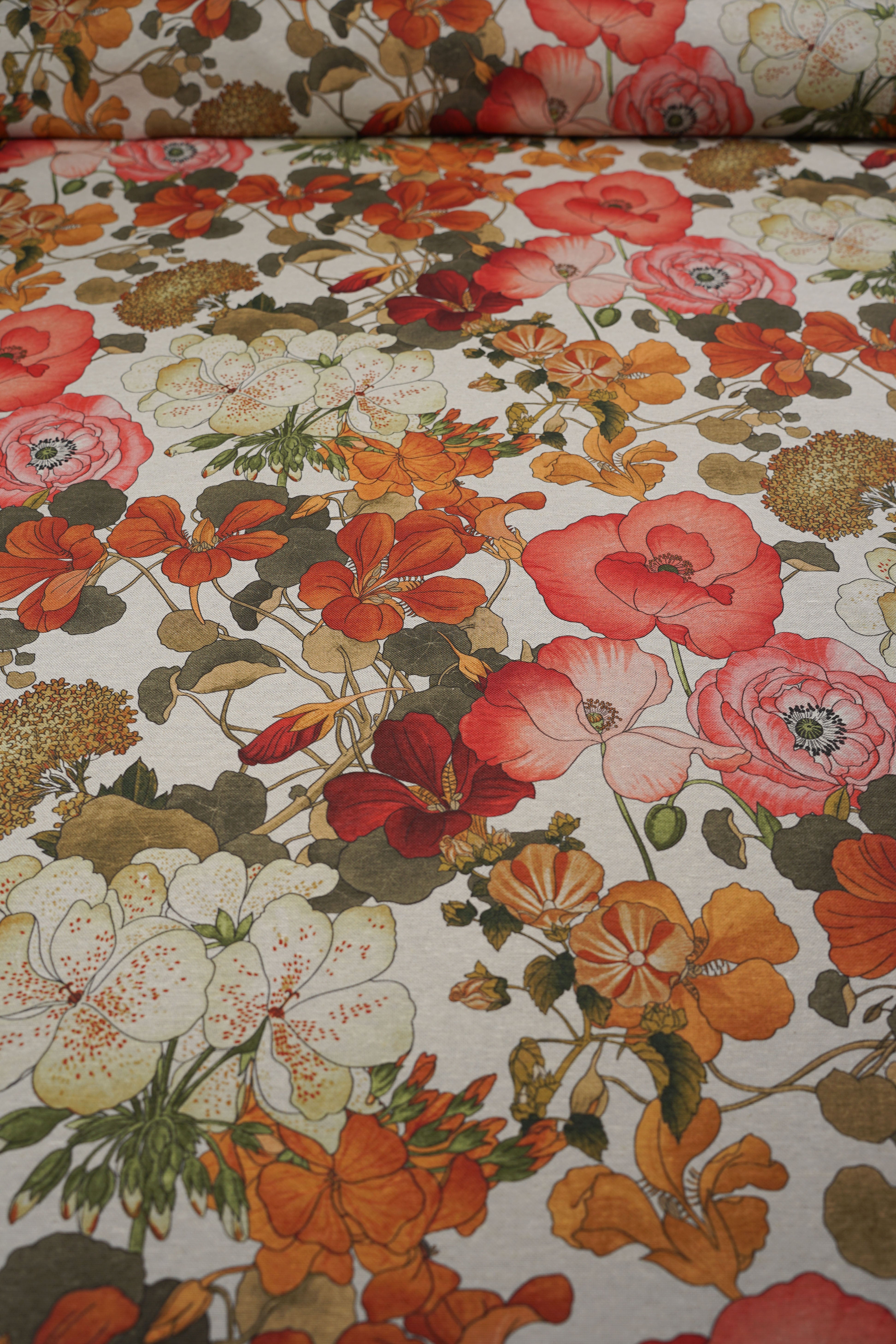 Mönstrat - Gardintyg - Linne - Bomull - Blomsteräng - Cappucine 010