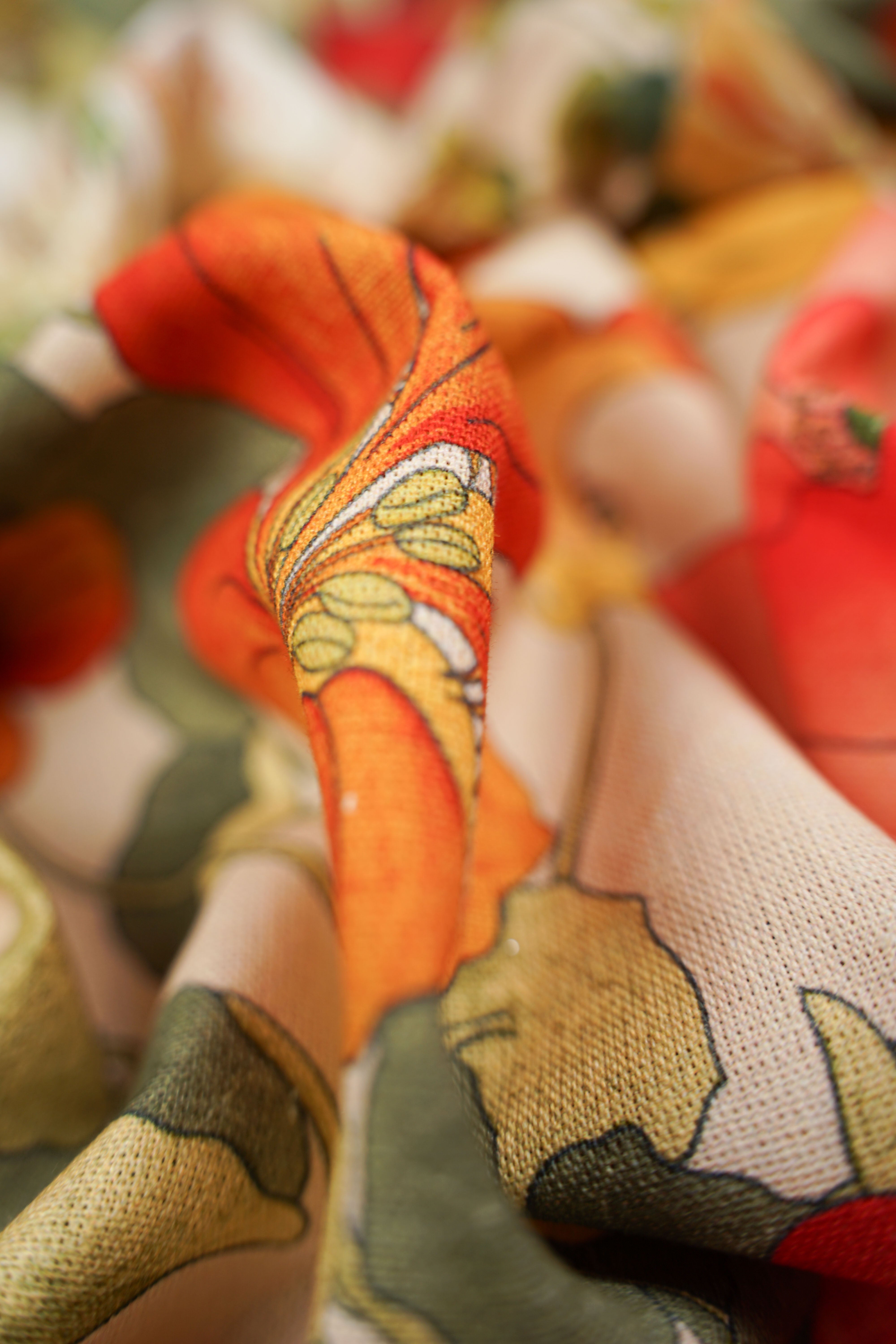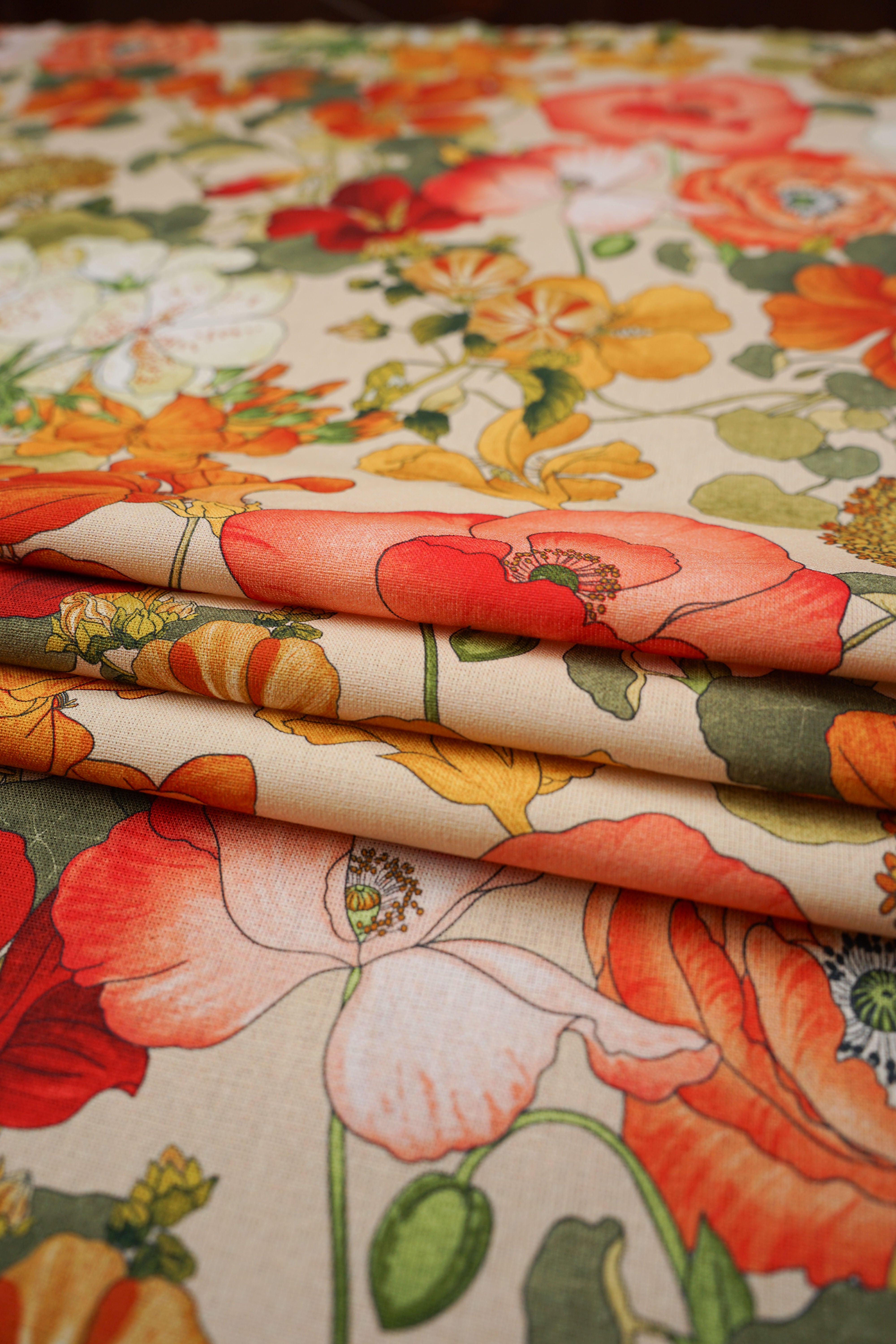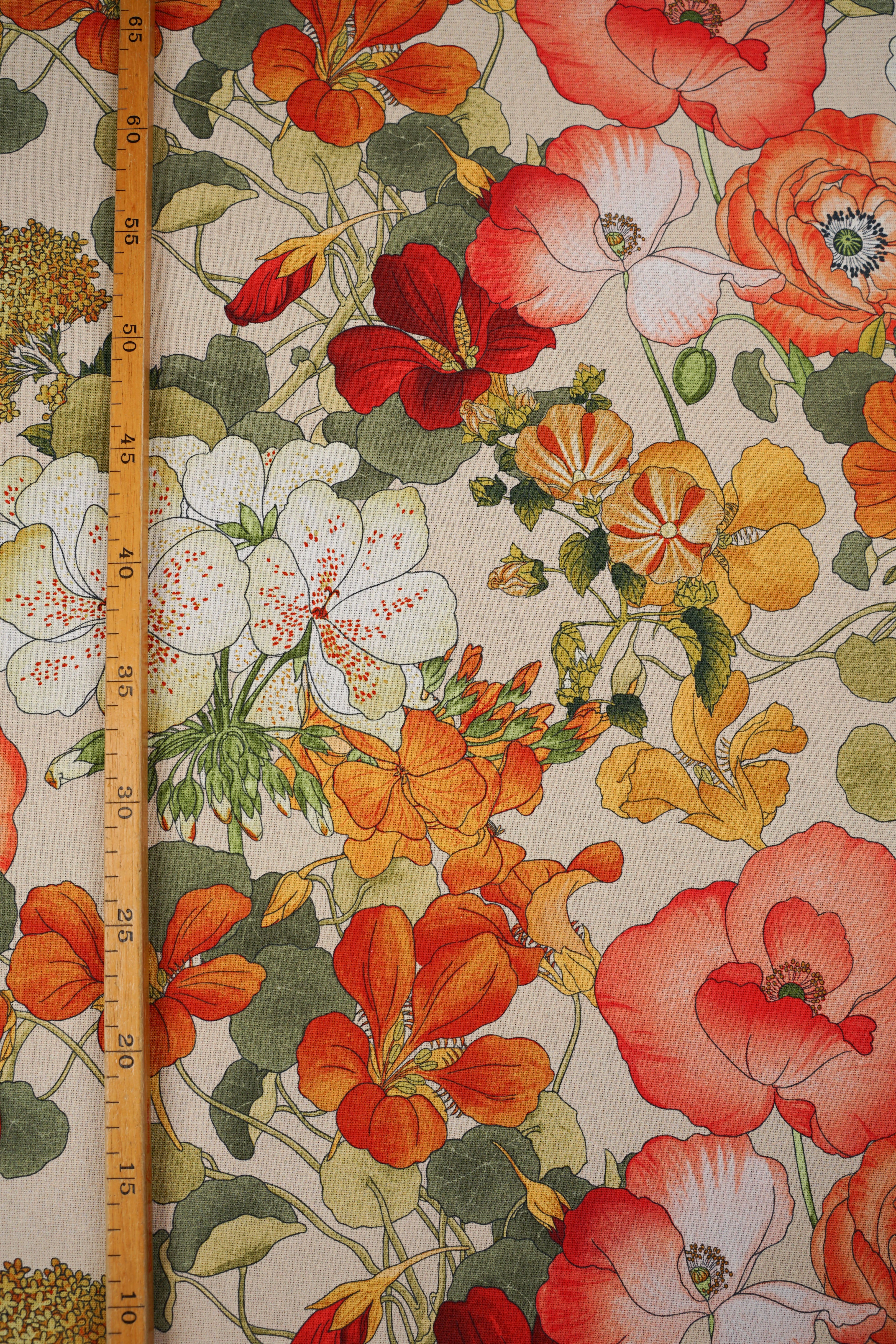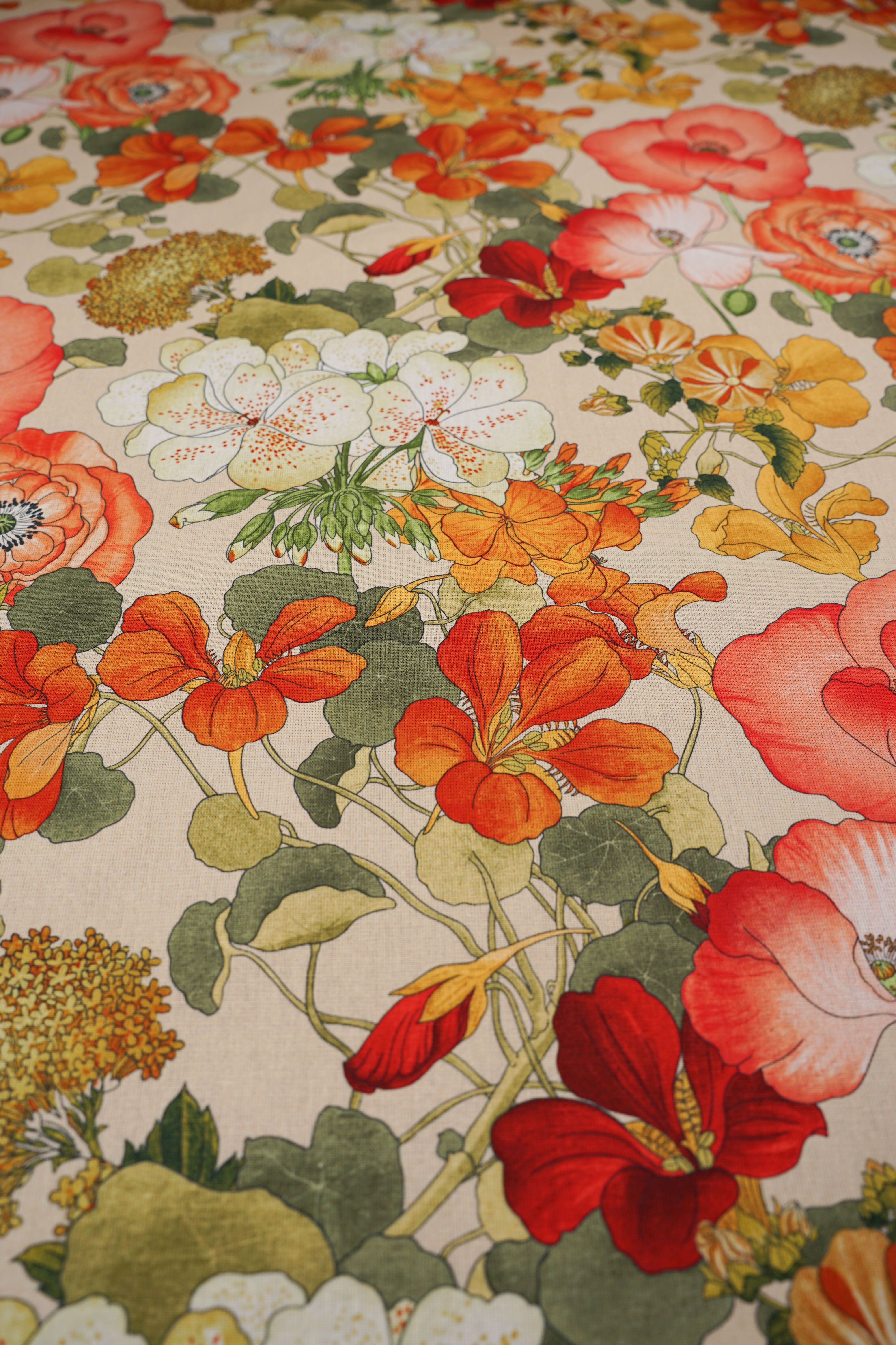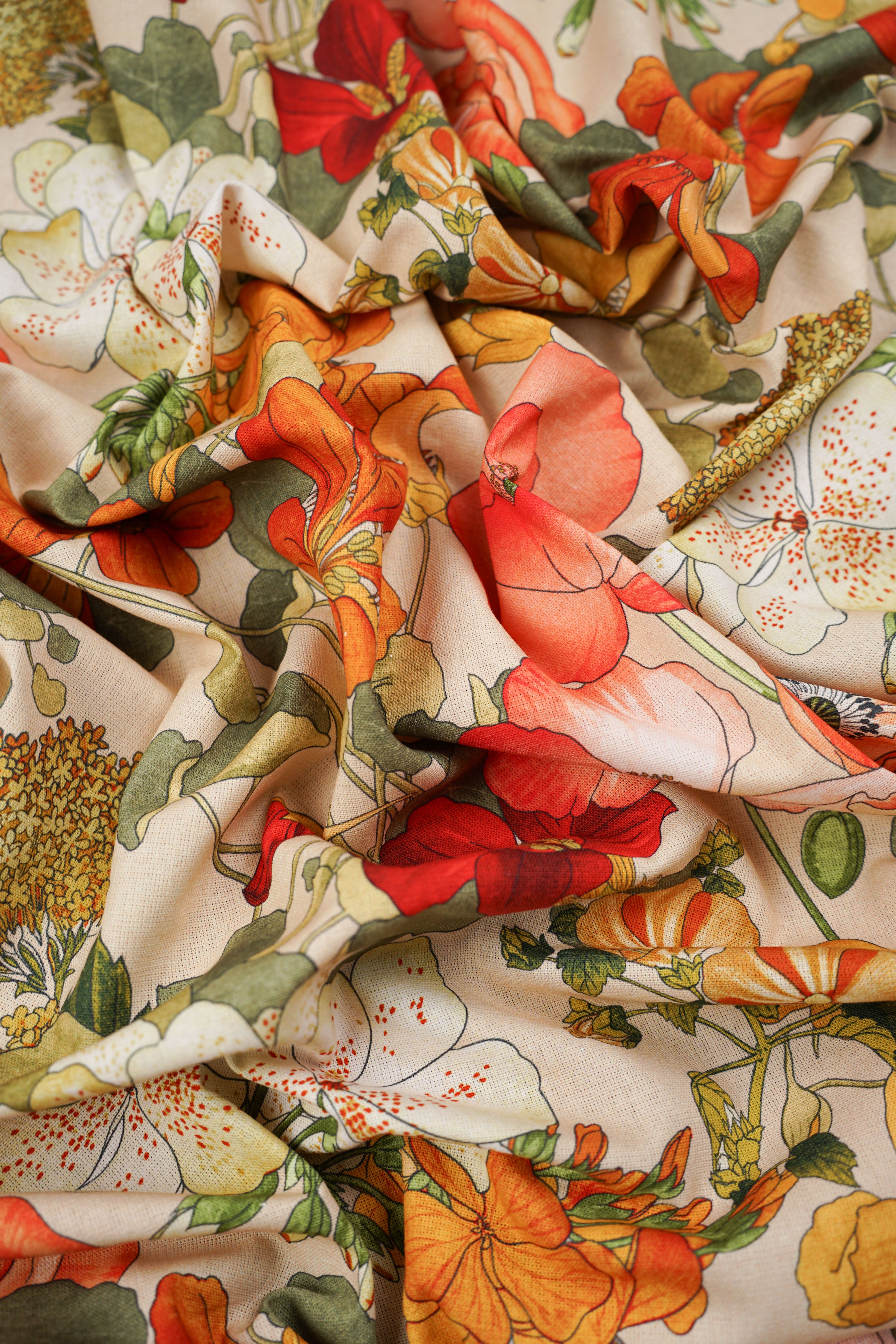 Mönstrat - Gardintyg - Linne - Bomull - Blomsteräng - Cappucine 002