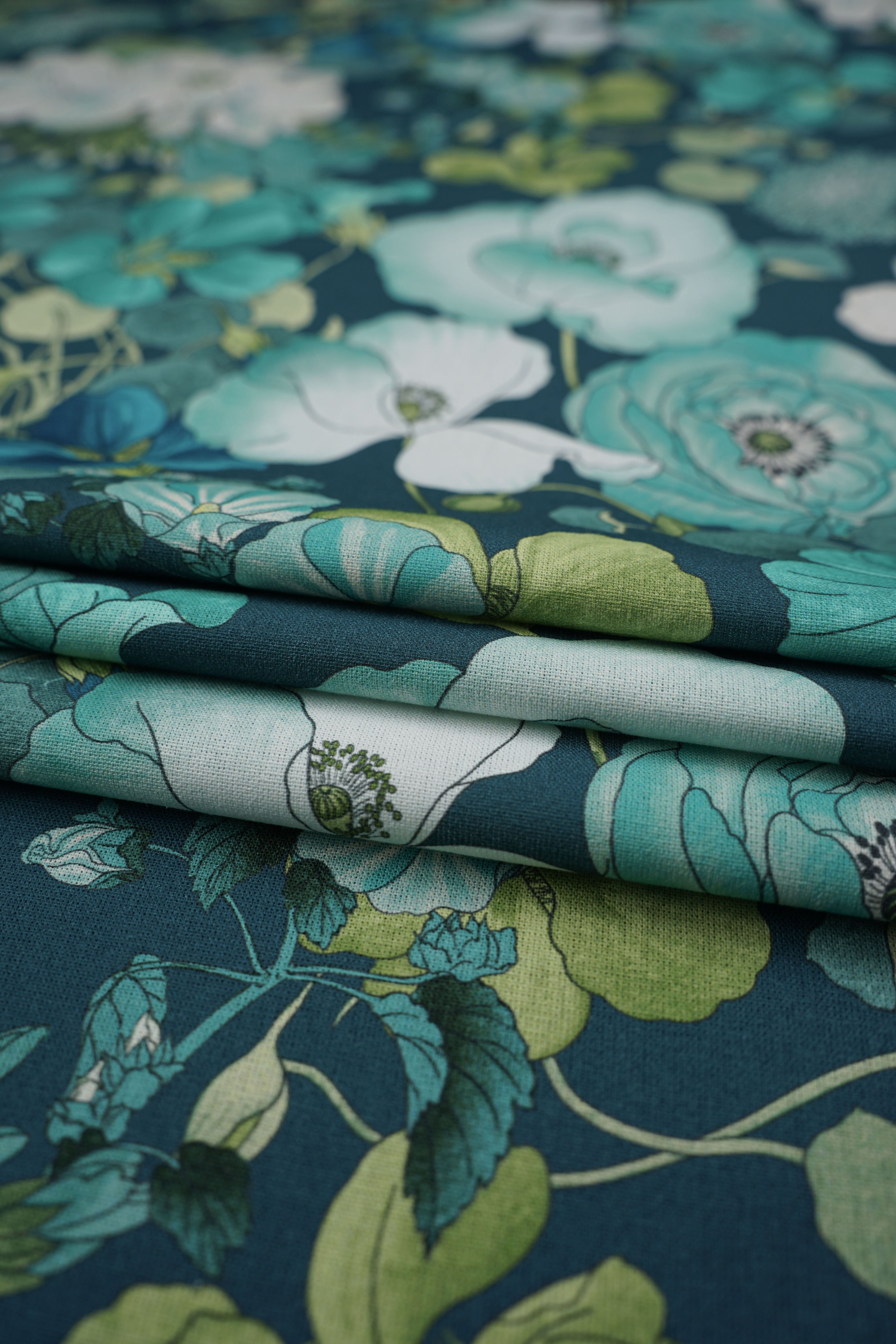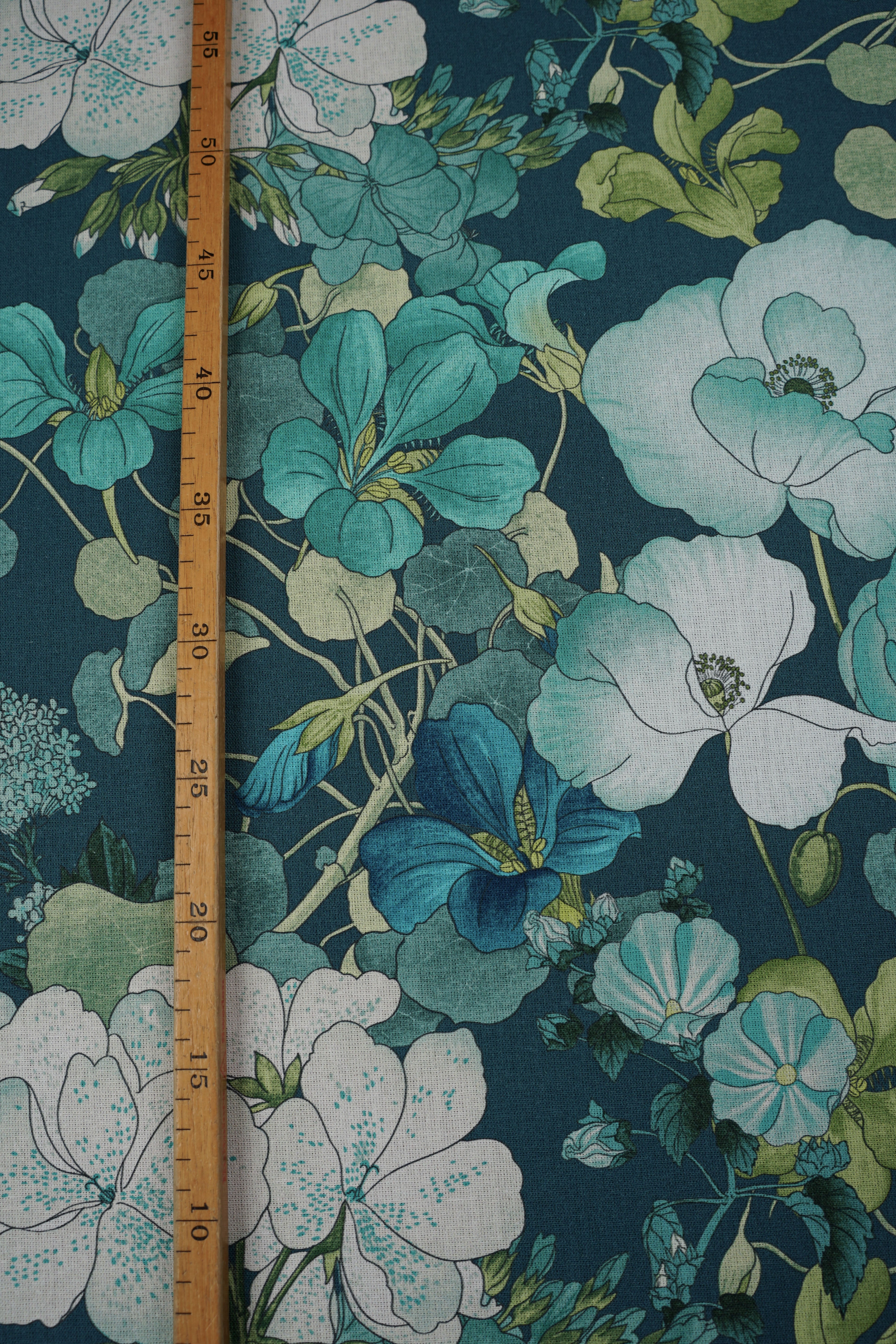 Storblommigt vackert gardintyg, fungerar dessutom utmärkt till kuddar, dukar och andra inredningsdetaljer