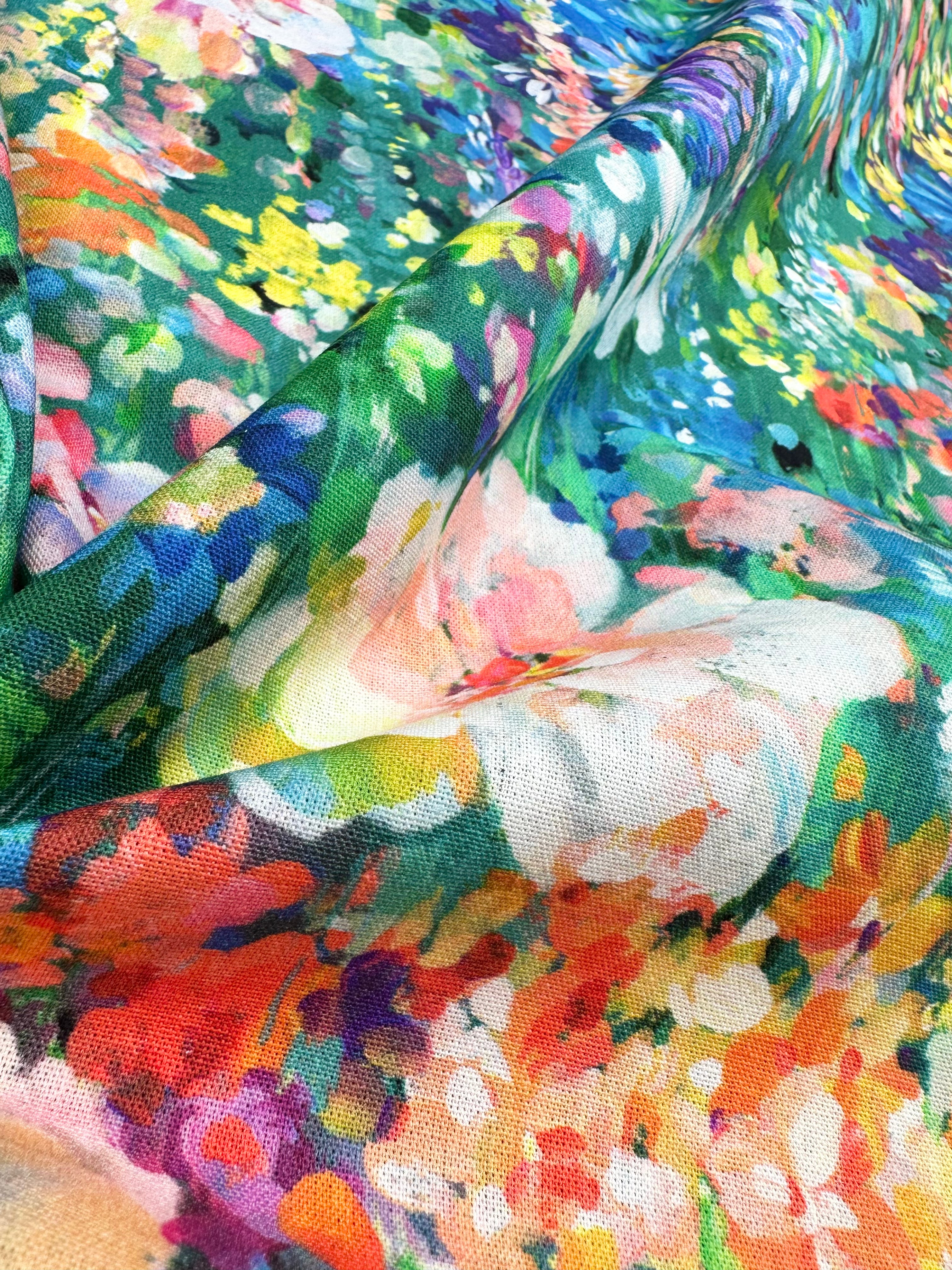 Underbart inredningstyg som funkar till gardiner, kuddar och möbler. Fyll ditt hem med ett hav av blommor med hjälp av detta motiv av en oljemålning, det skänker både glädje och skönhet
