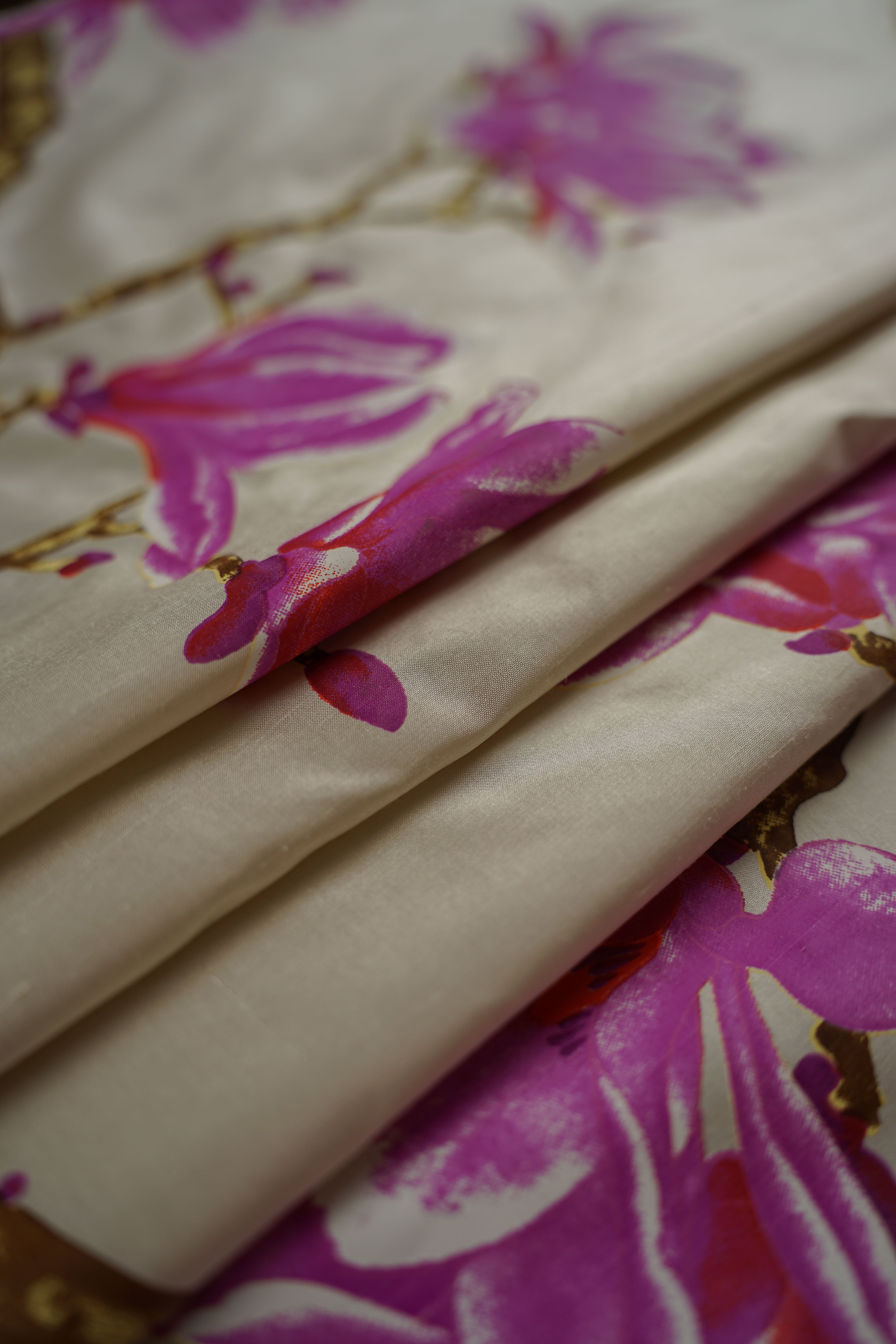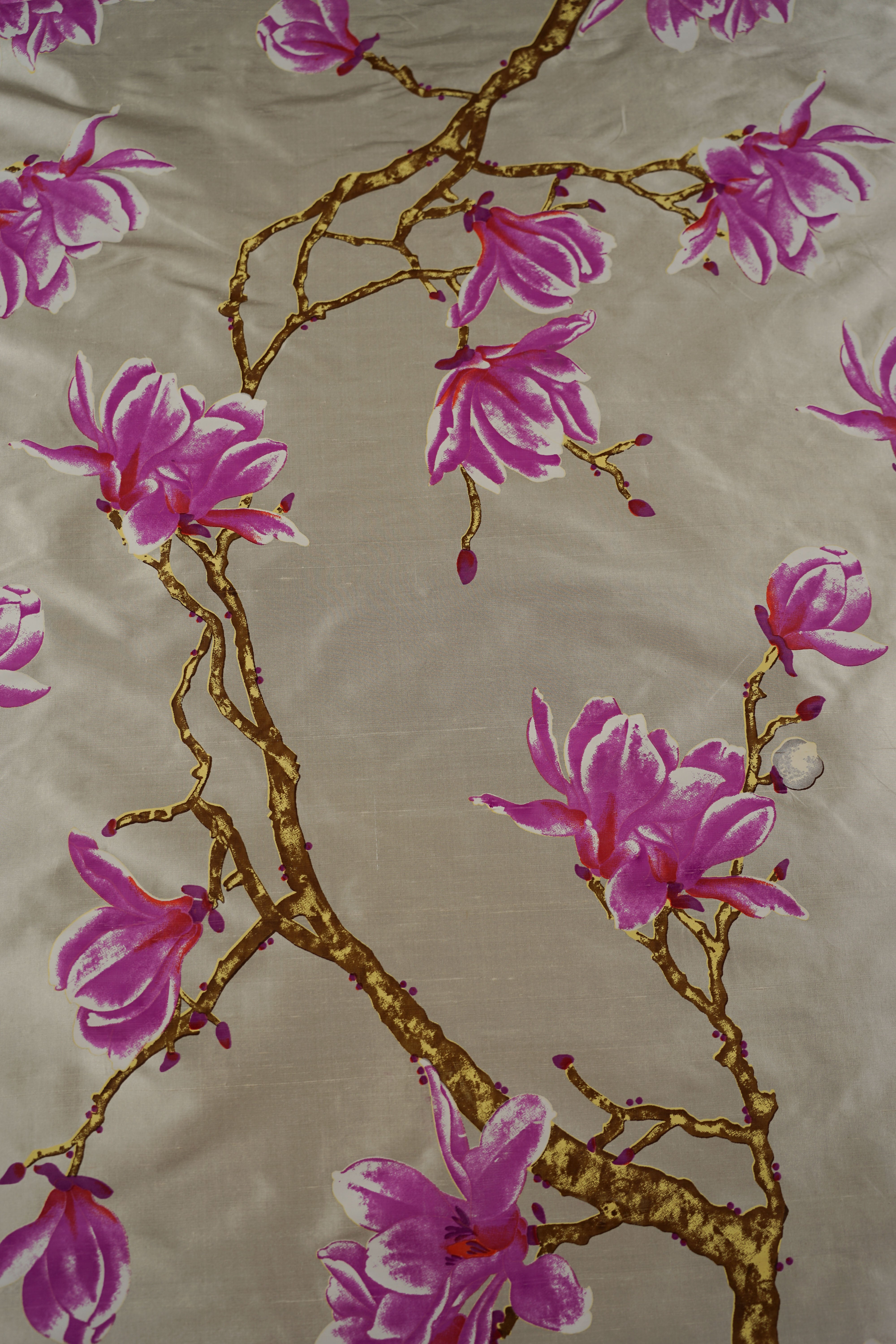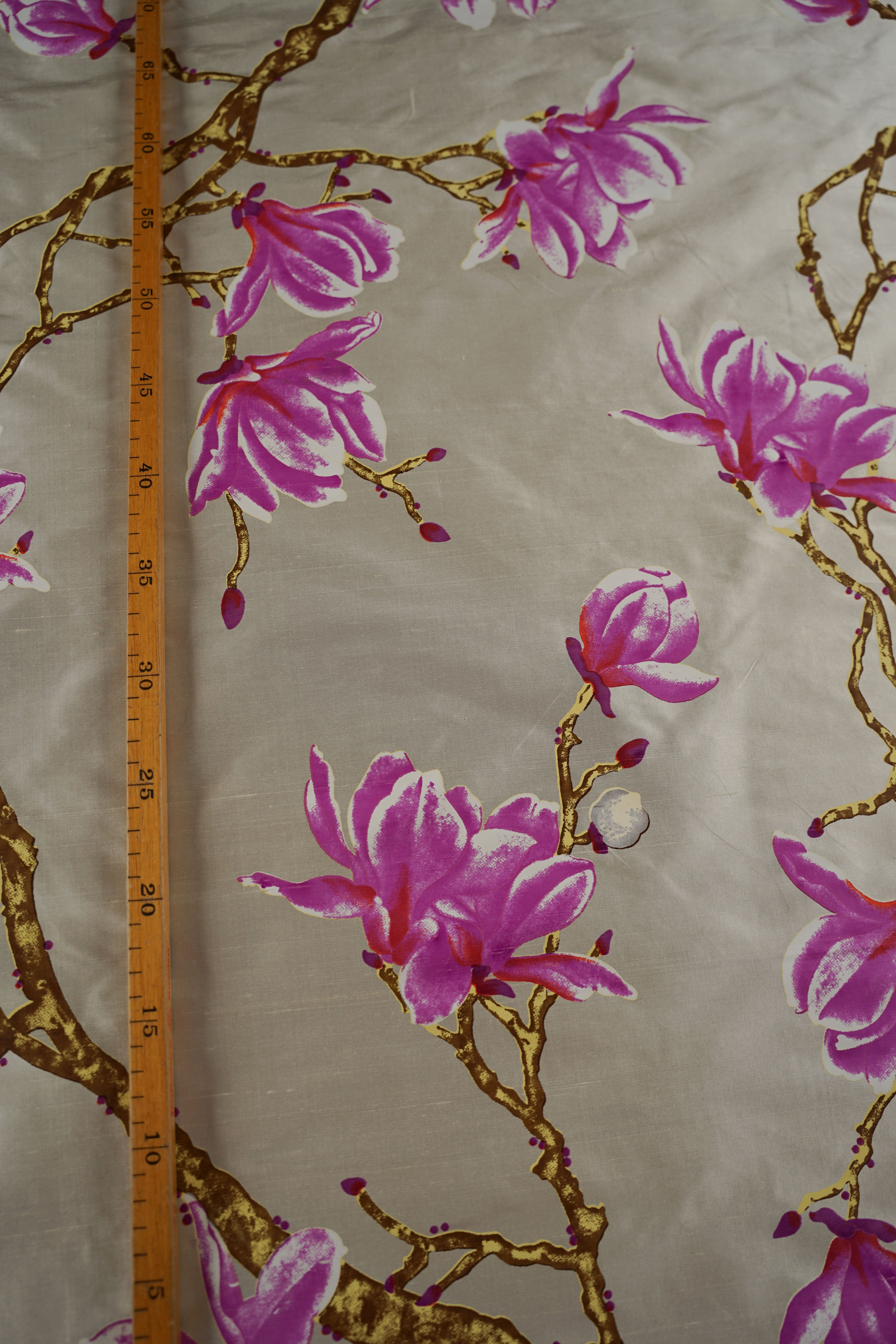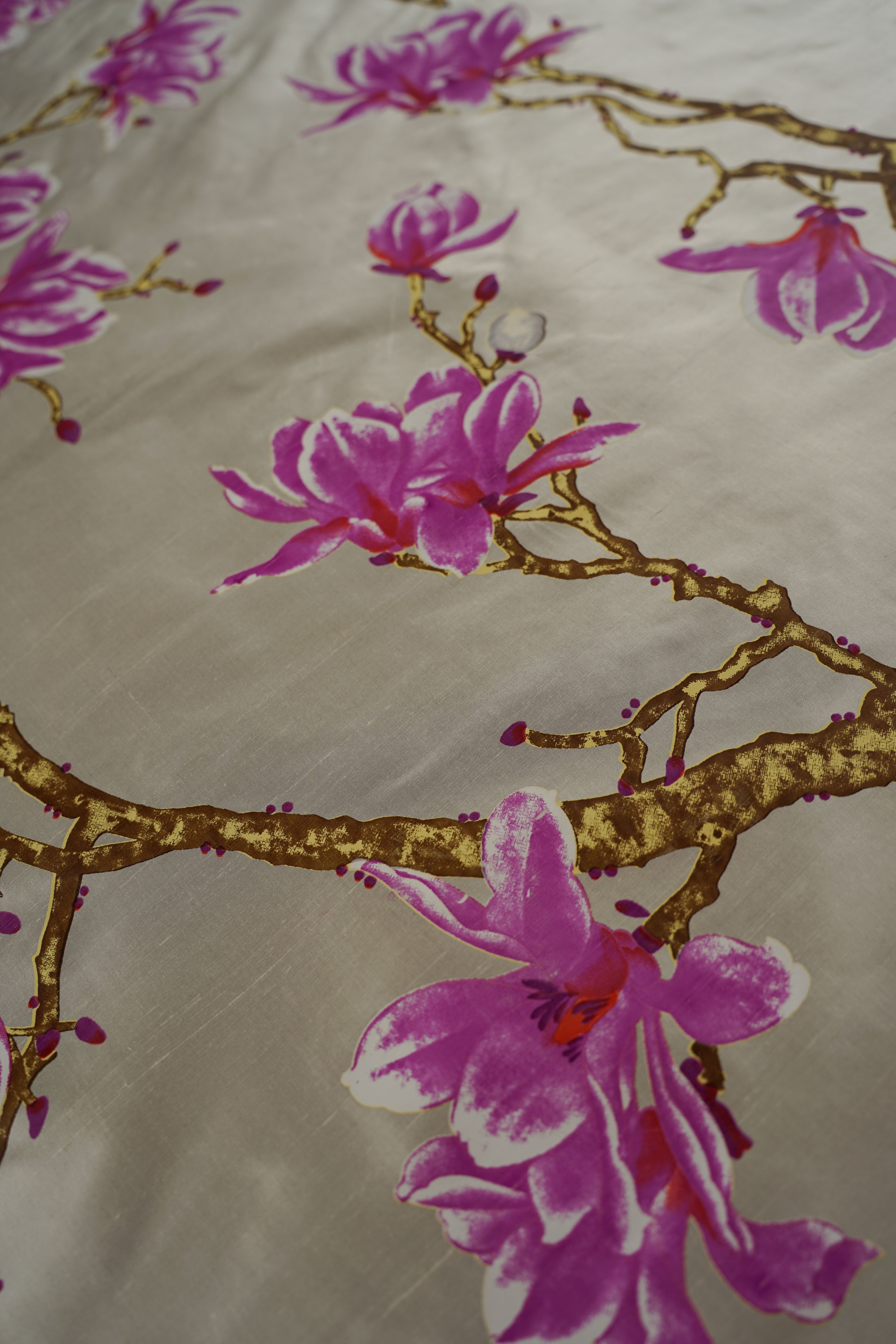 Thaisiden med vackert stort tryck mönster av ett magnoliaträd