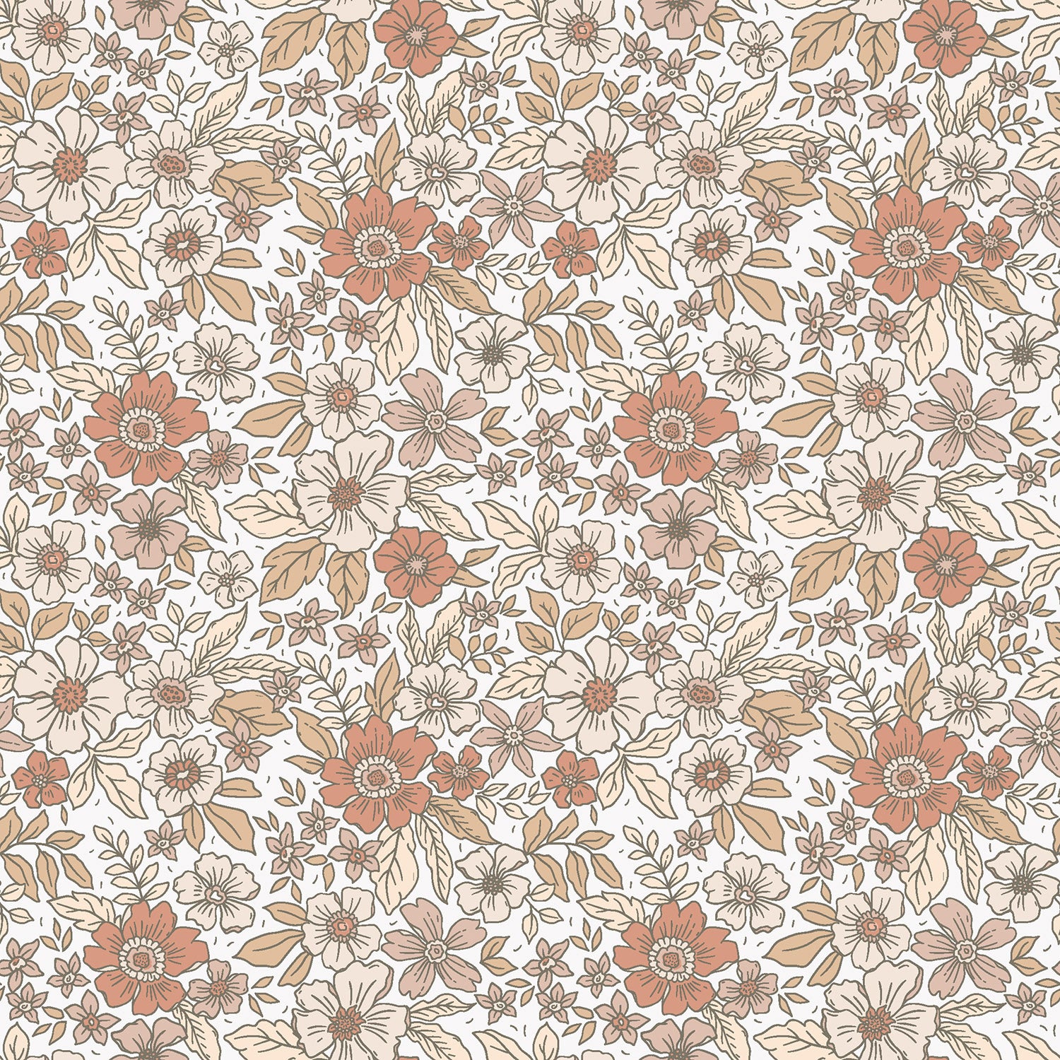 • Bomull - Poplin - Mönstrat - Blommor - Beige, Rost - 052