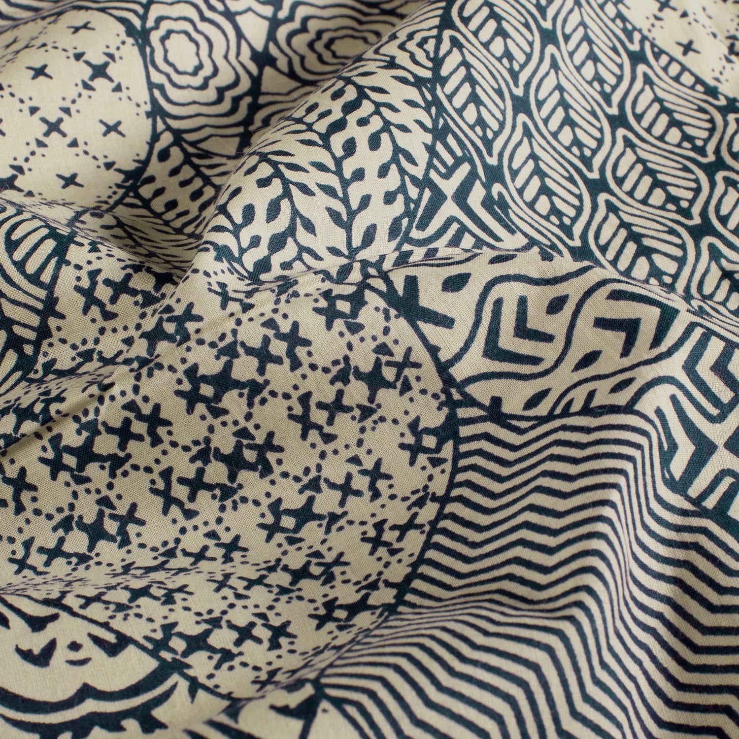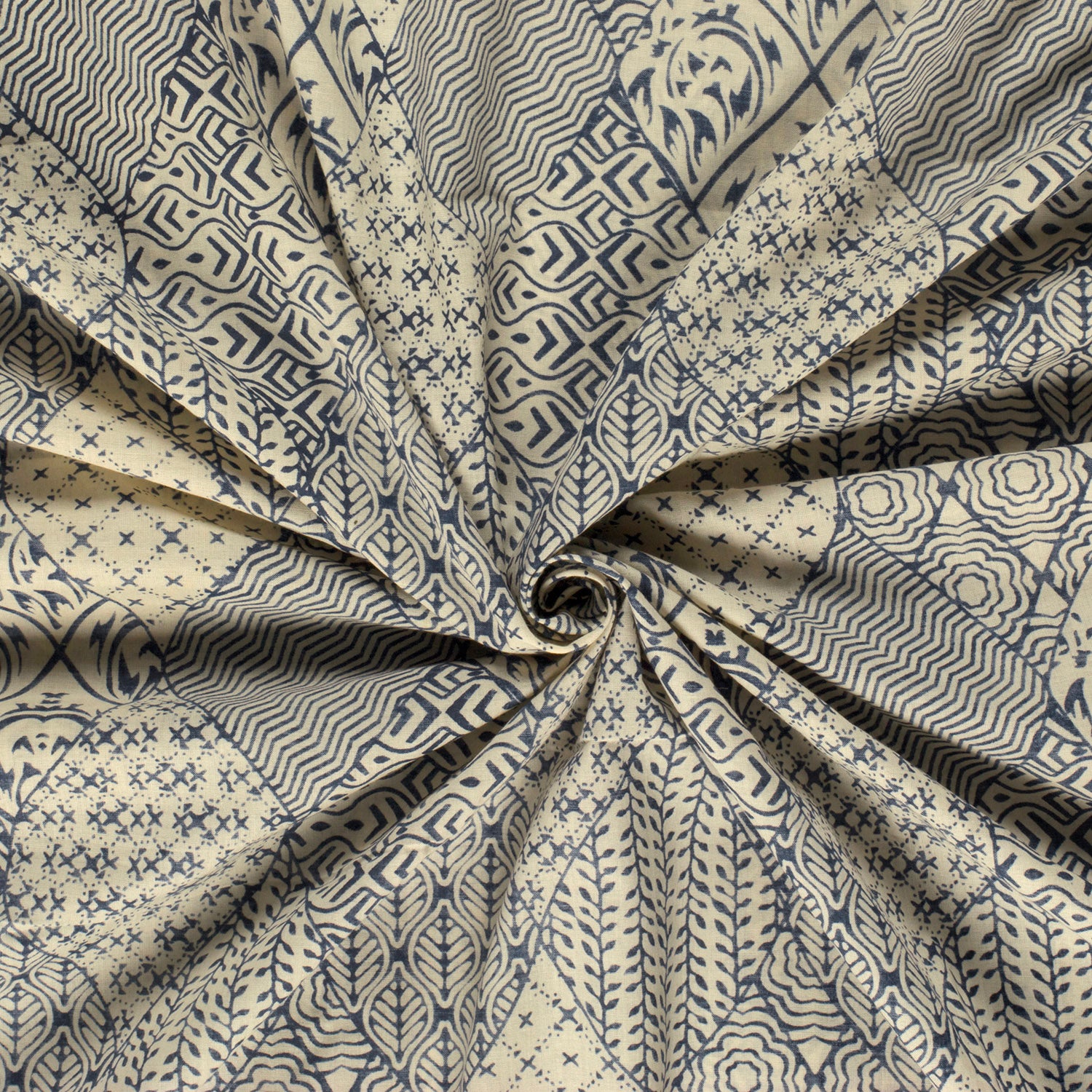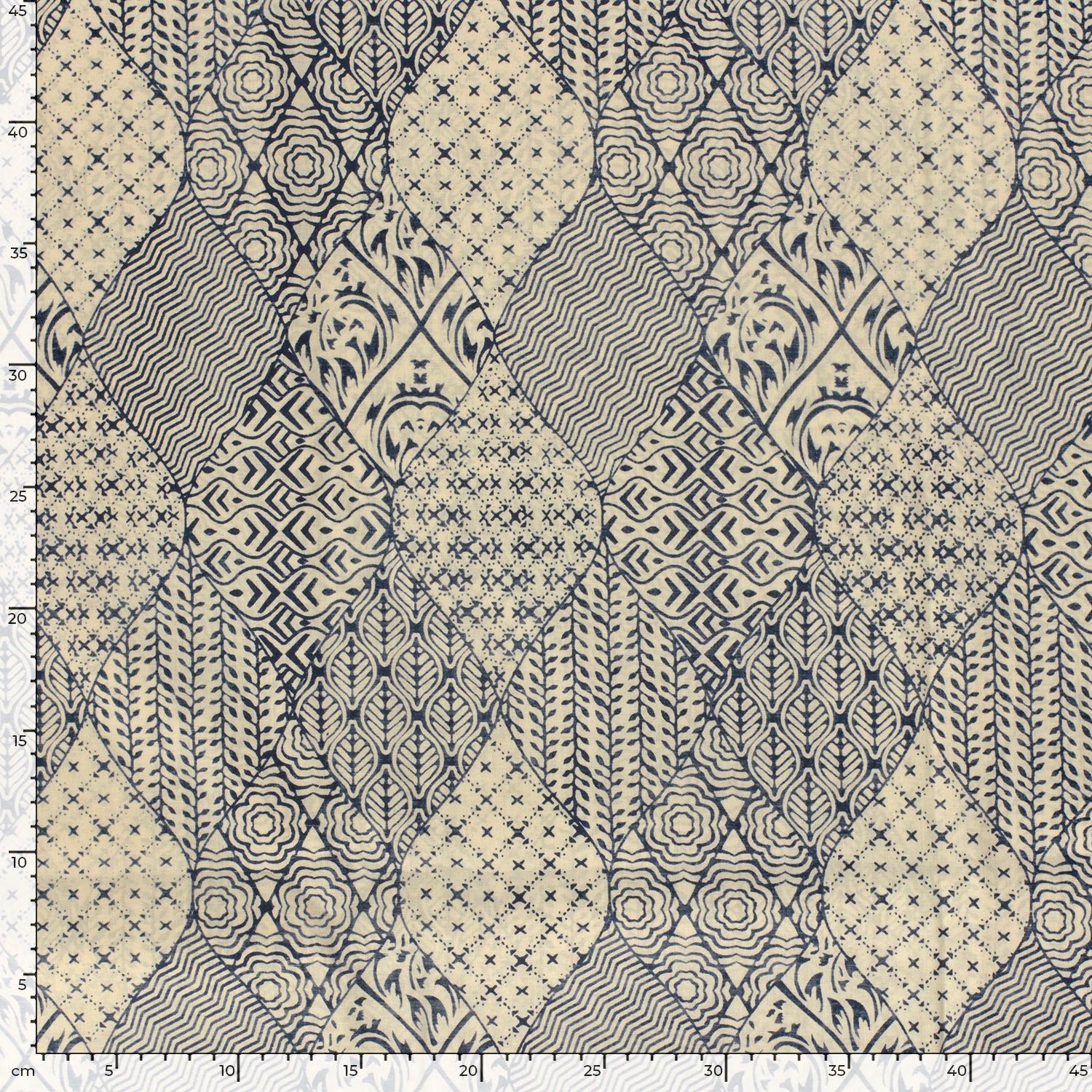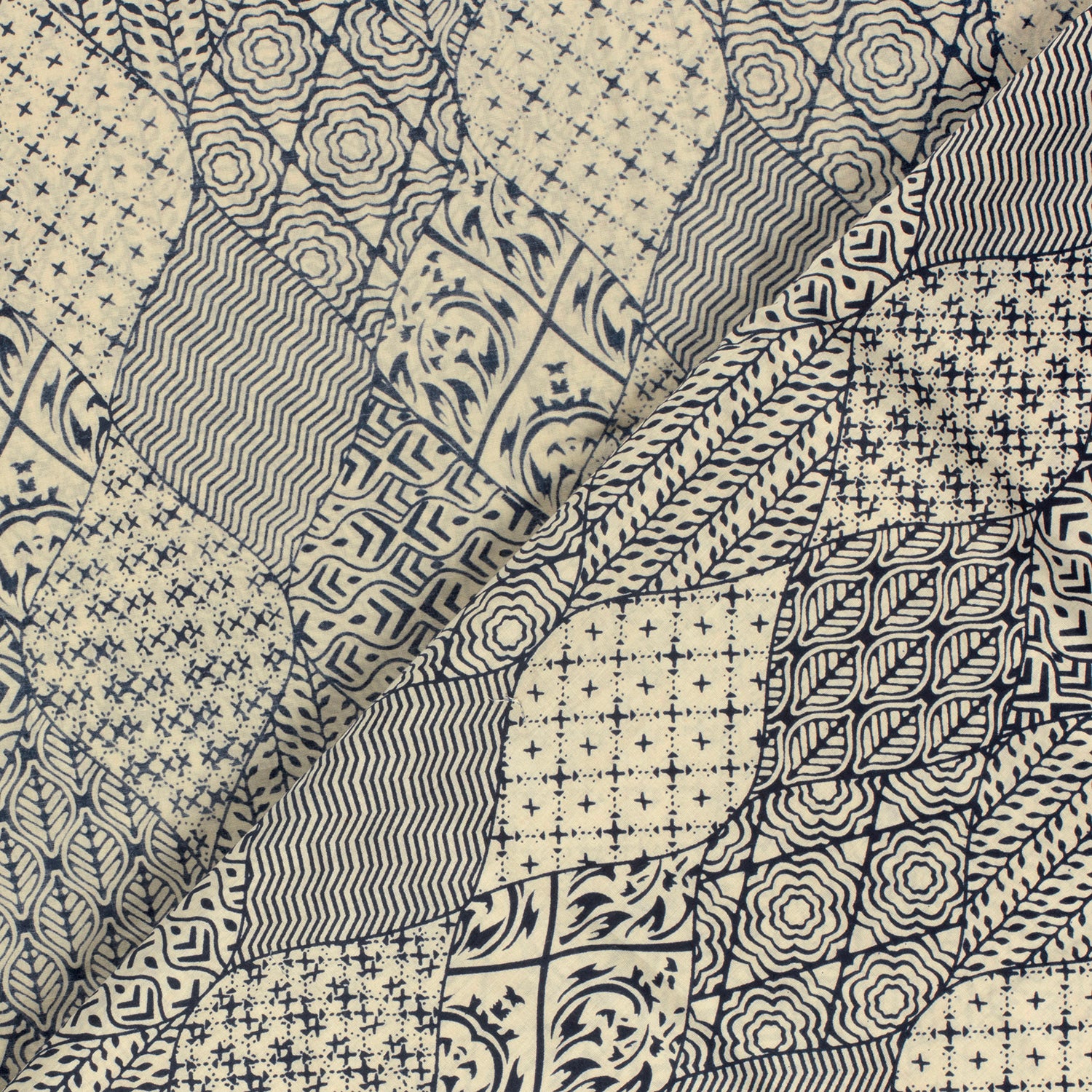 • Bomull - Voile - Mönstrat - Batik - Abstrakt - Ivory, Indigo - 006