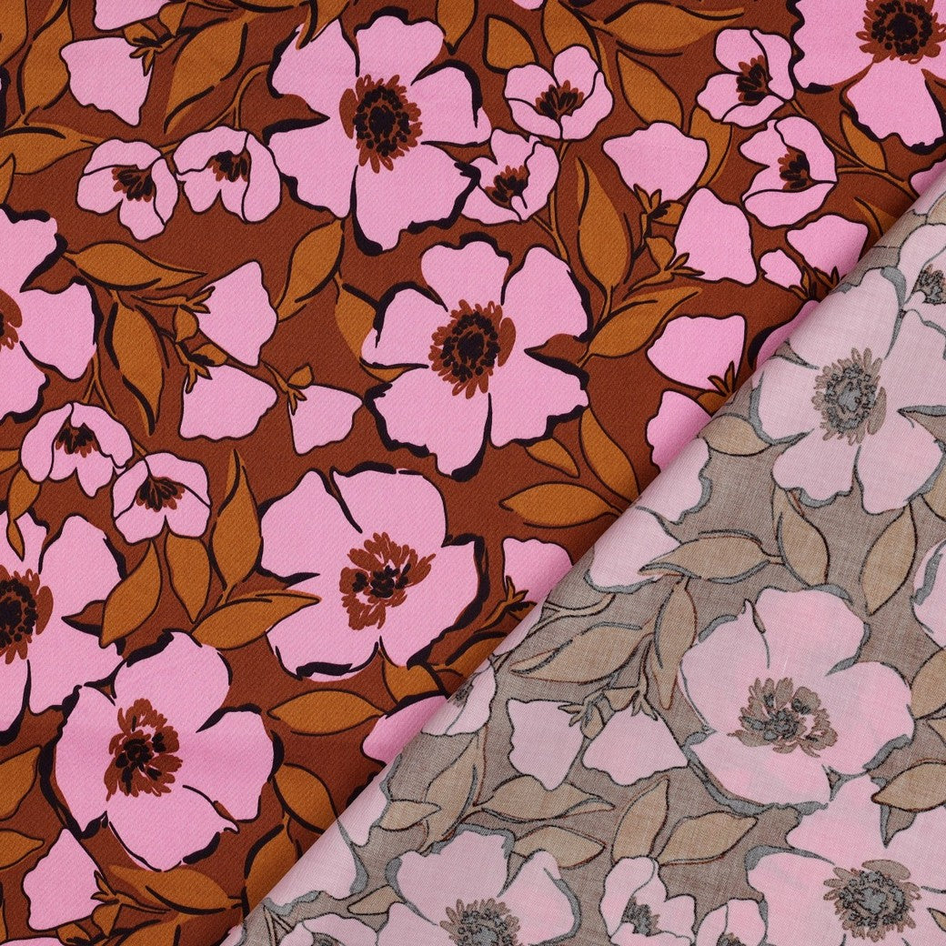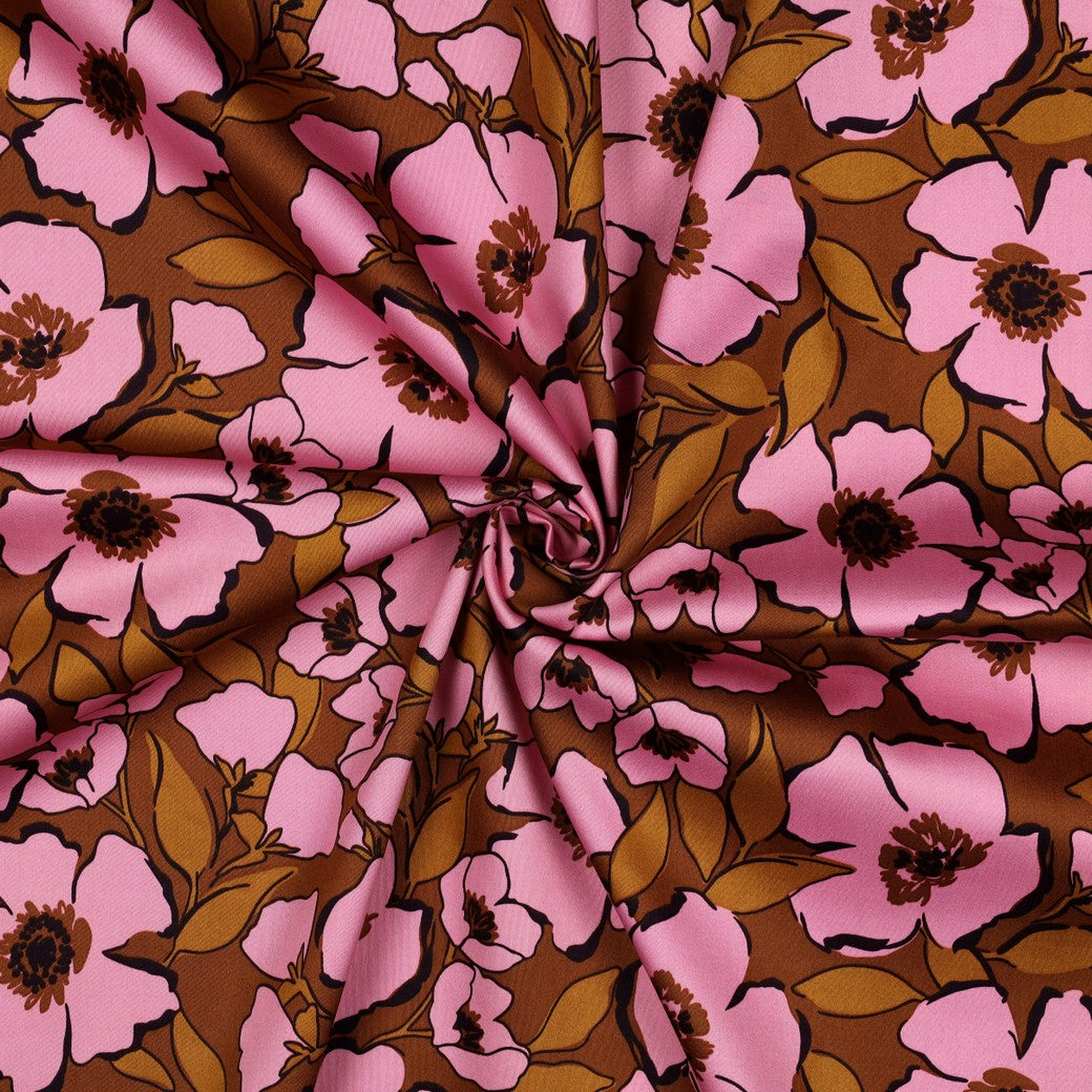 Blommor - Mönstrad - Satin - Blommor - Brun - 09.009