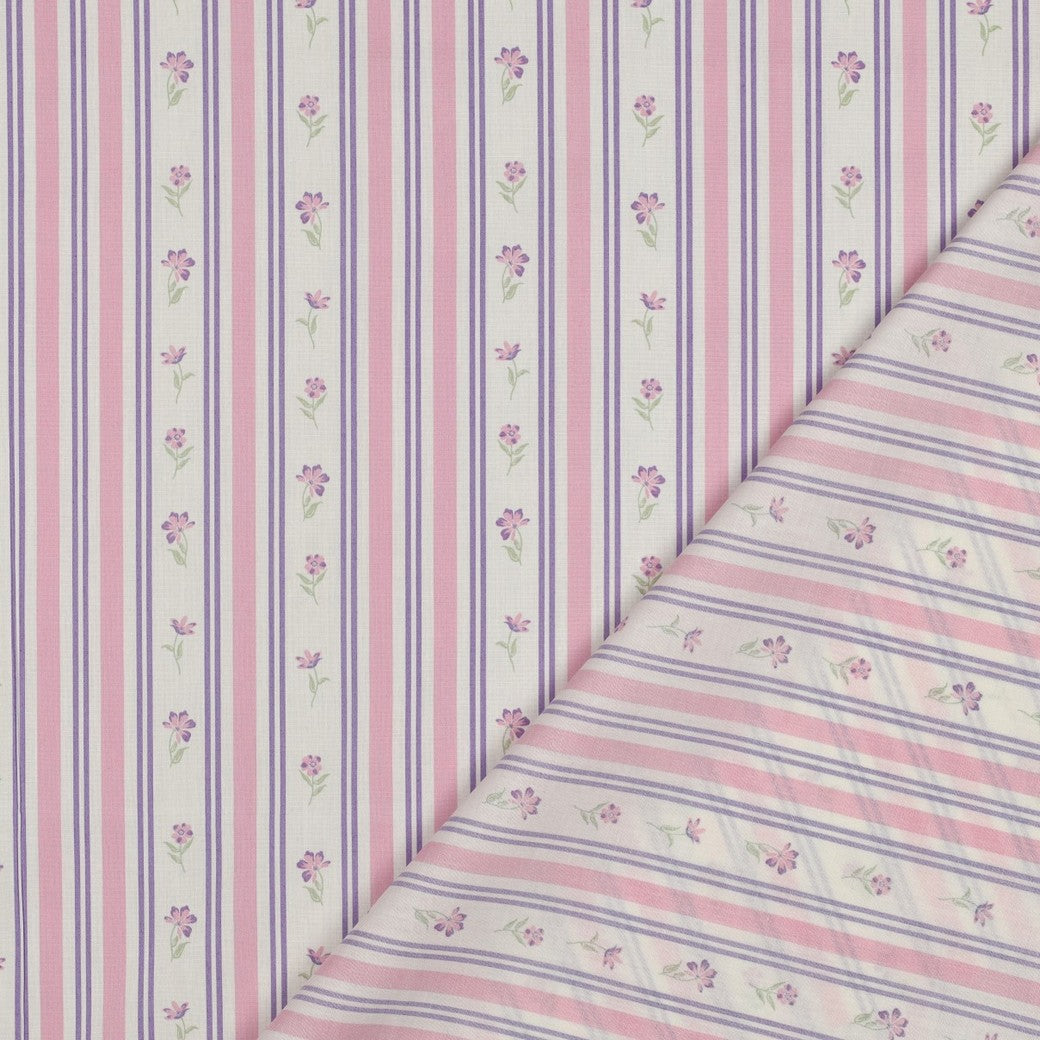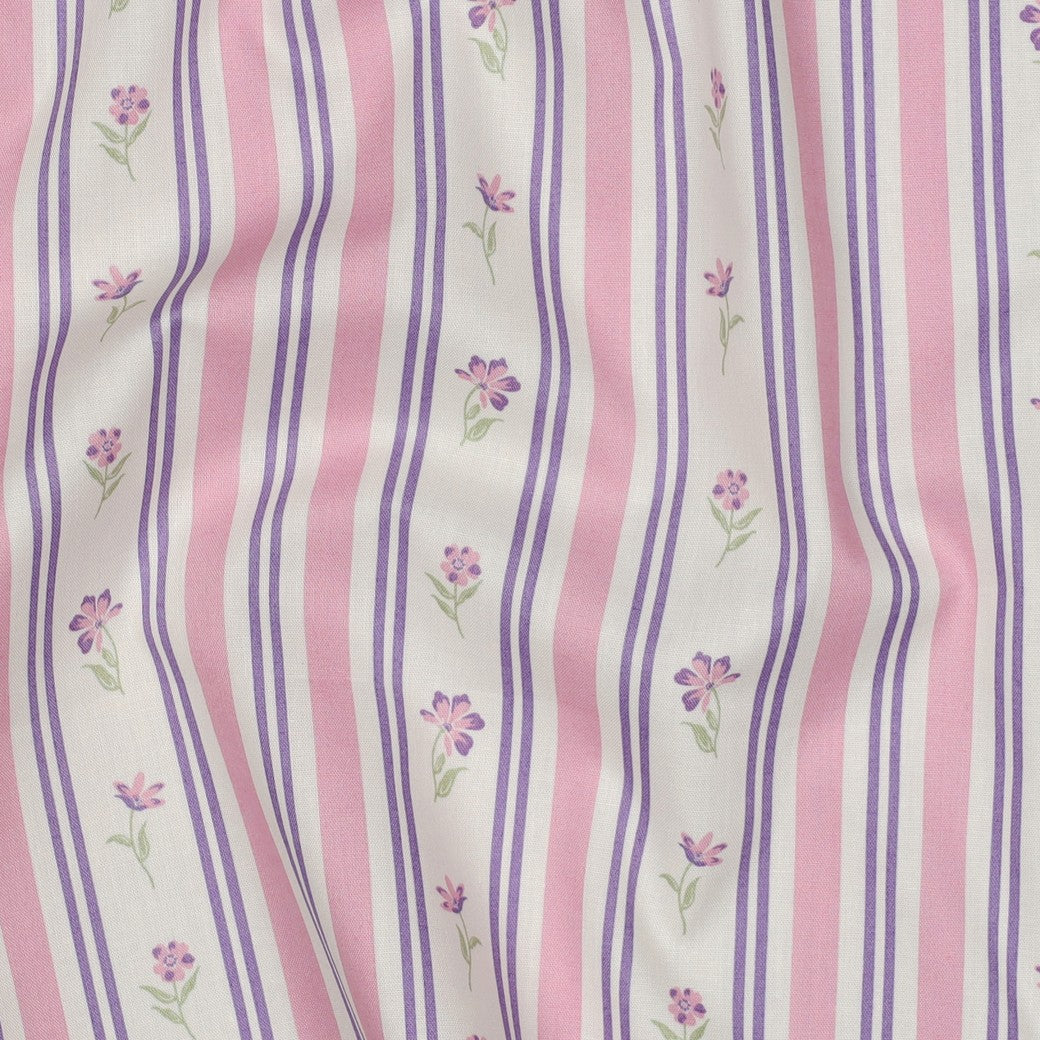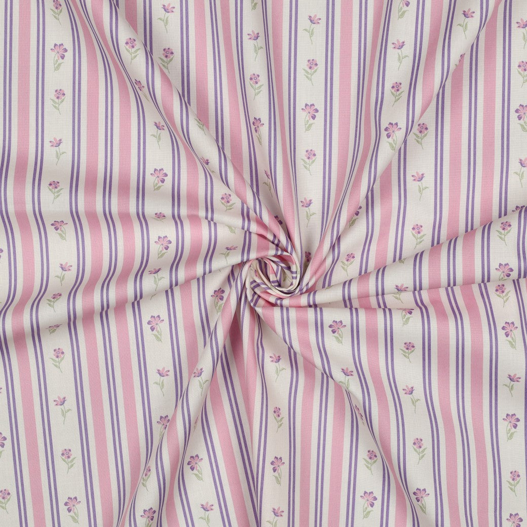 Bomull - Poplin - Randig - Blommor - Blå - 72.023
