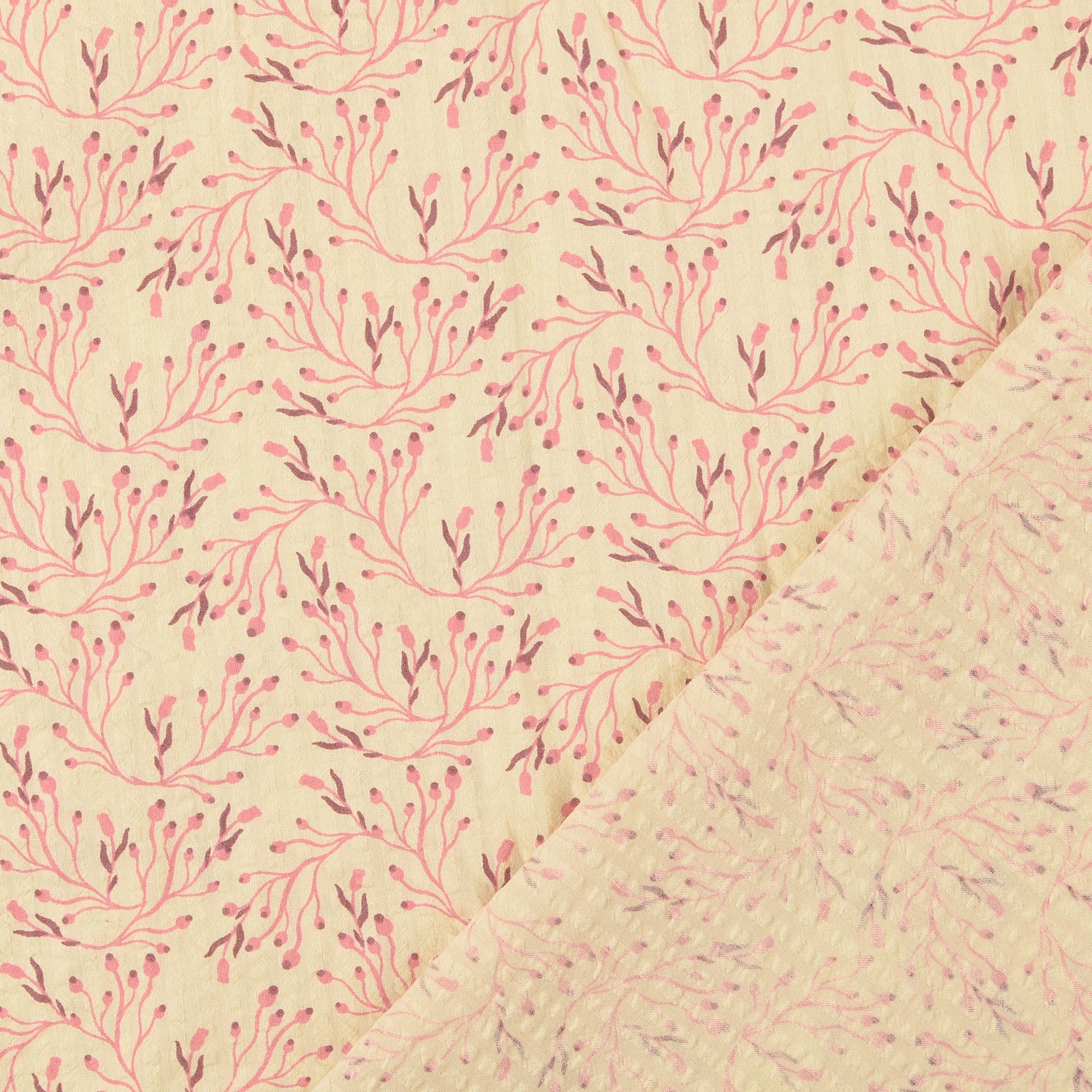 Mönstrad - Bomull - Seersucker - Blommor - Pink - 0017
