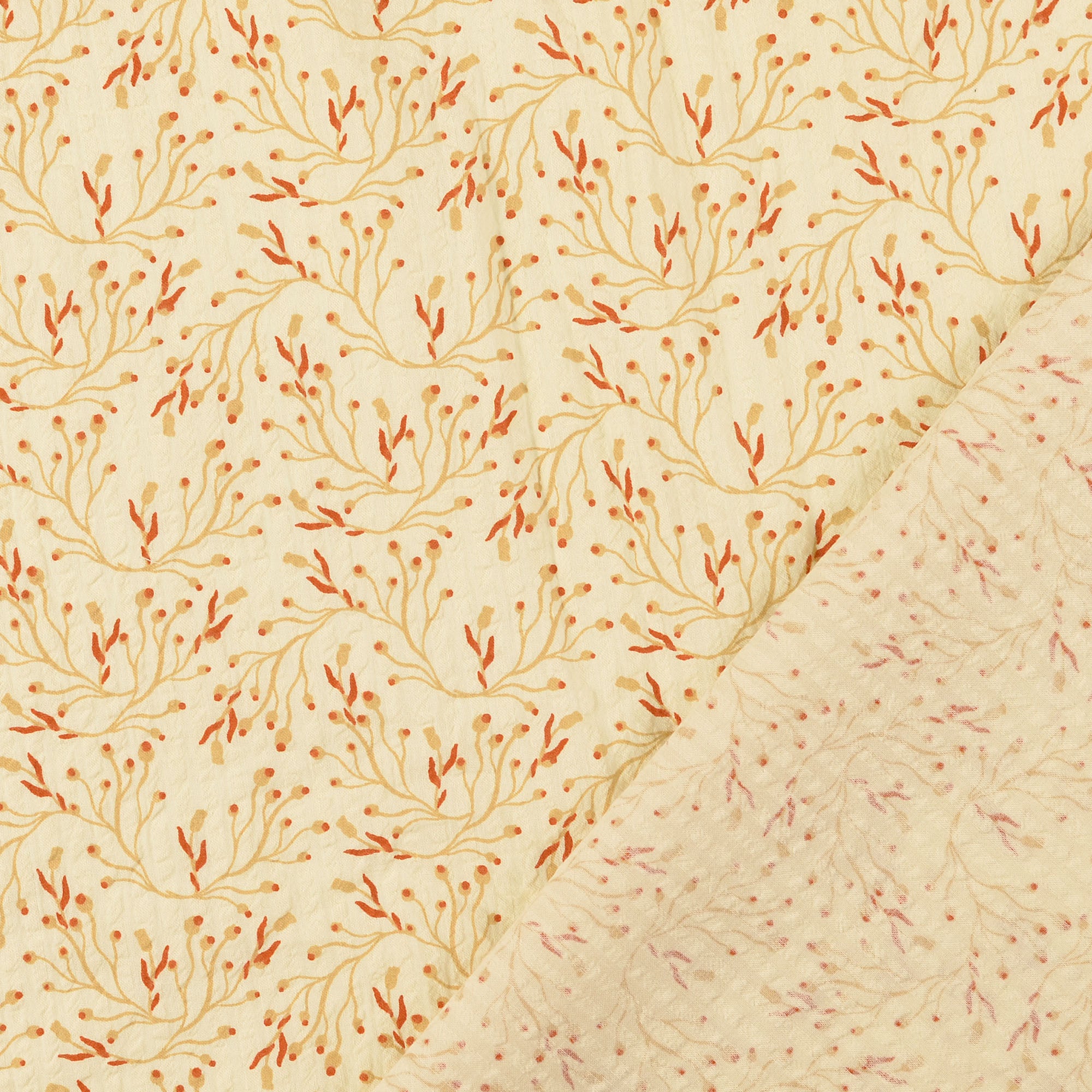 Mönstrad - Bomull - Seersucker - Blommor - Beige - 0018