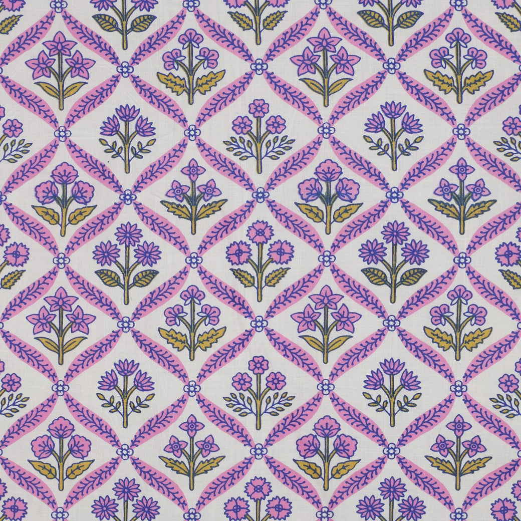 Mönstrat - Bomull - Block print - Blommor - Lila - 16.002
