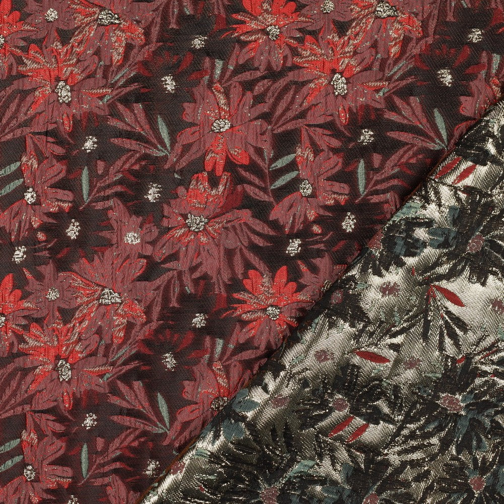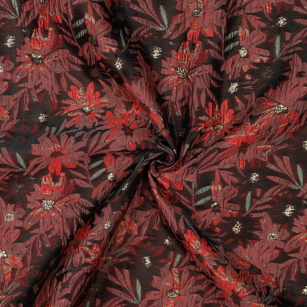Mönstrat - Brokad - Metallic - Blommigt - Bordeaux - 001