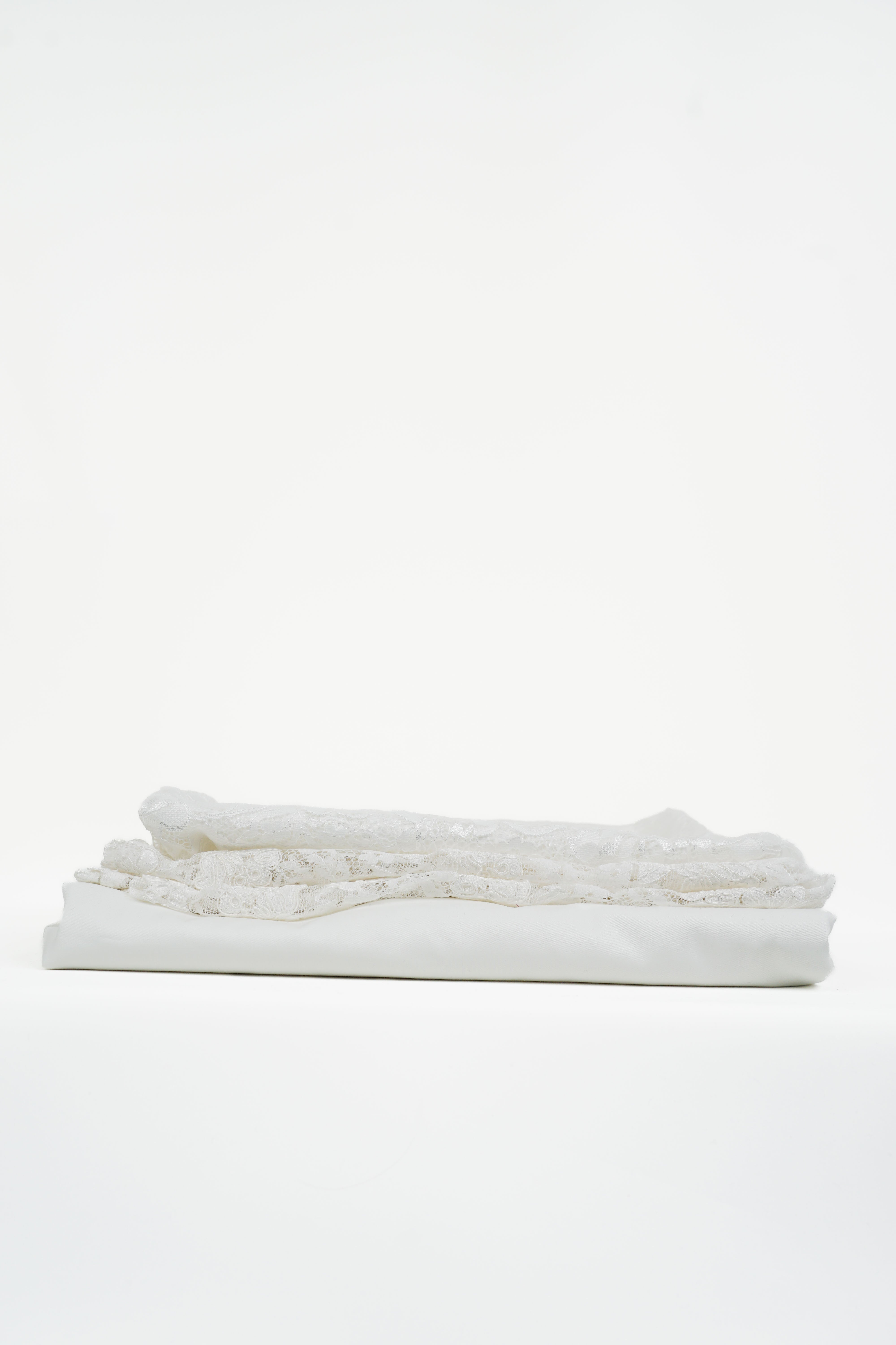 Spets, polyester, 1,22 m x 0,7m (OBS! Liten fläck på tyget)Spets, polyester, 1,4 m x 0,85 m (OBS! Liten dov fläck på tyget)Bomullspoplin, 1,5 x 3,65