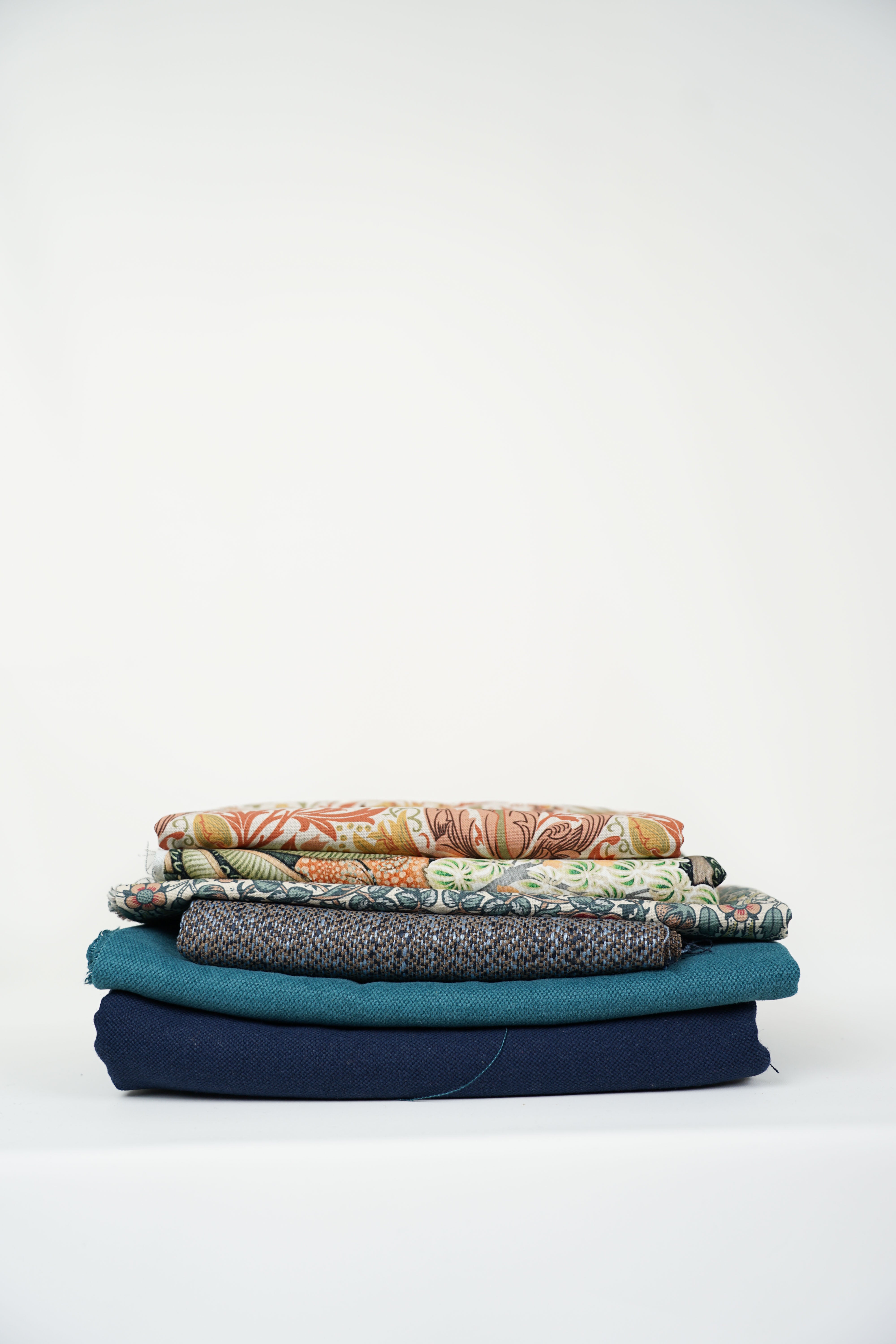 Listan på tygerna står i ordning efter hur de ligger på bilden uppifrån och ner.