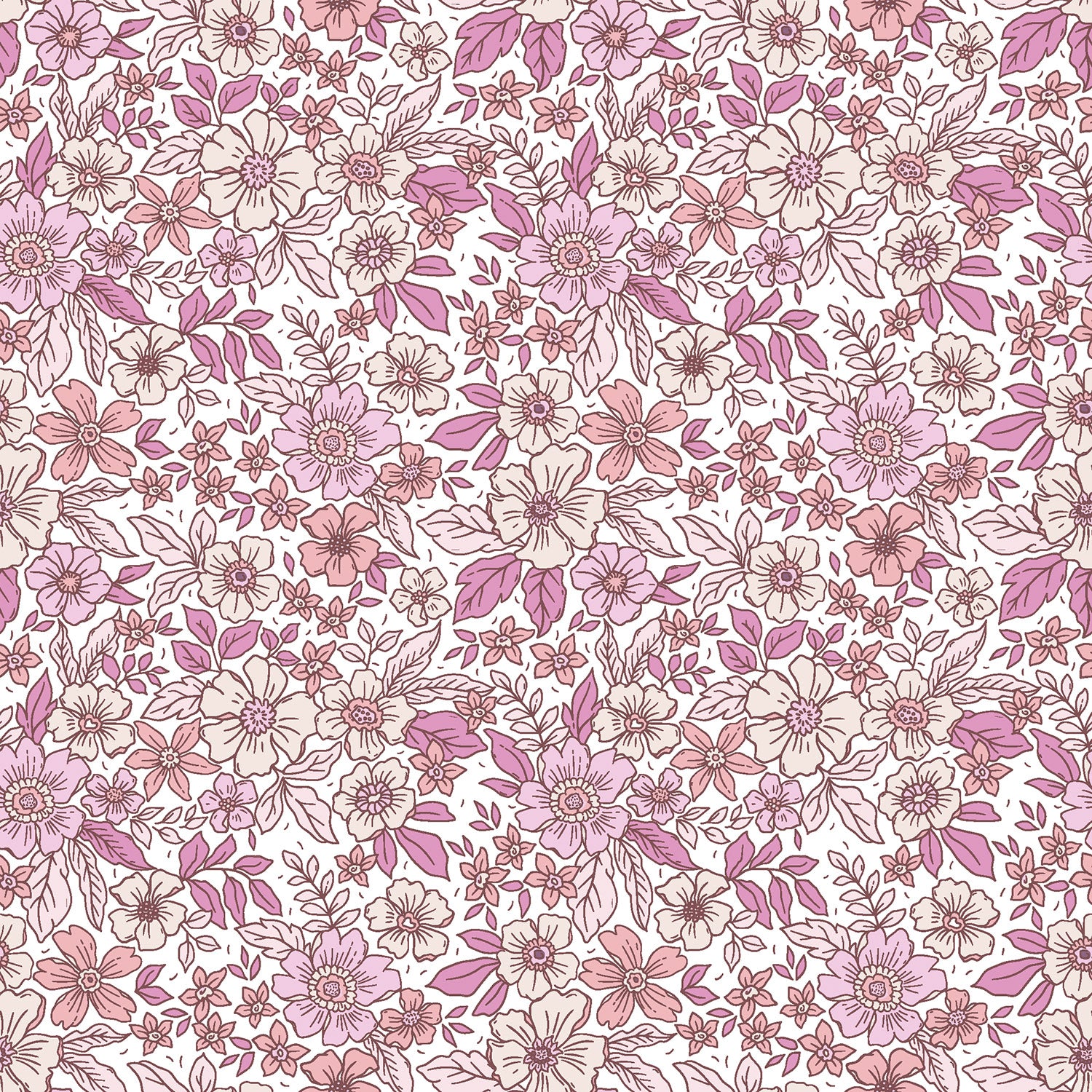 Bomull - Poplin - Mönstrat - Blommor - Rosa - 012
