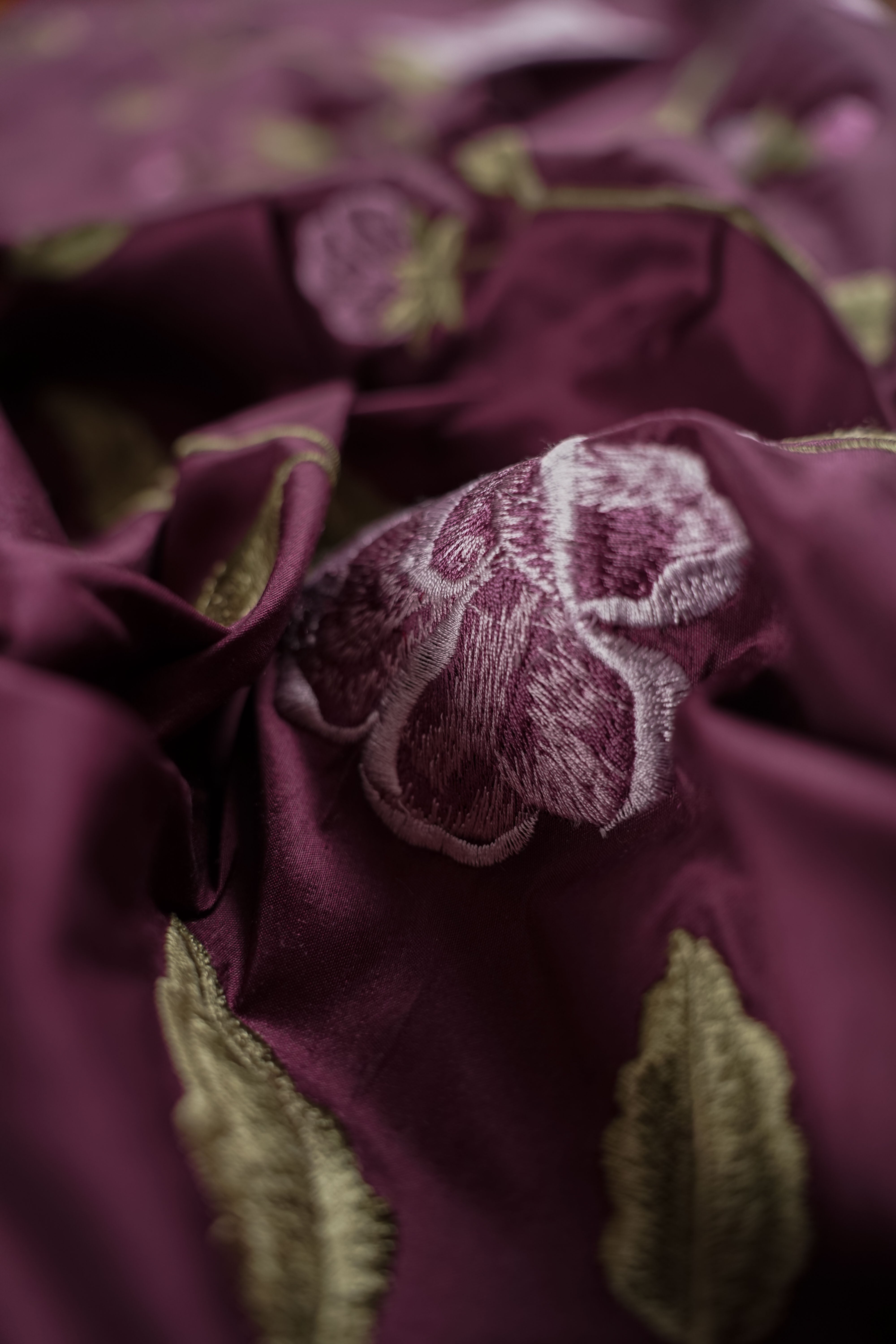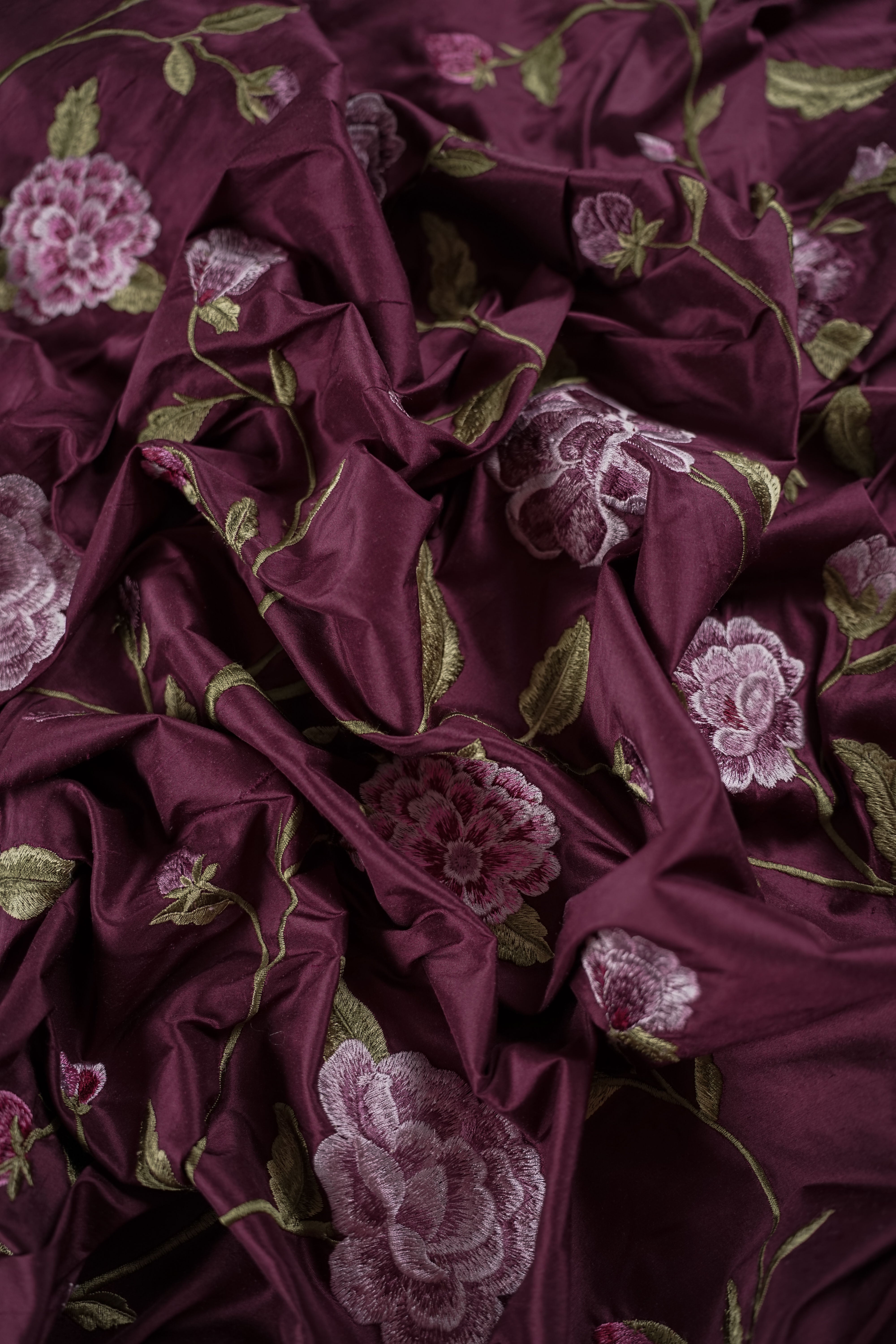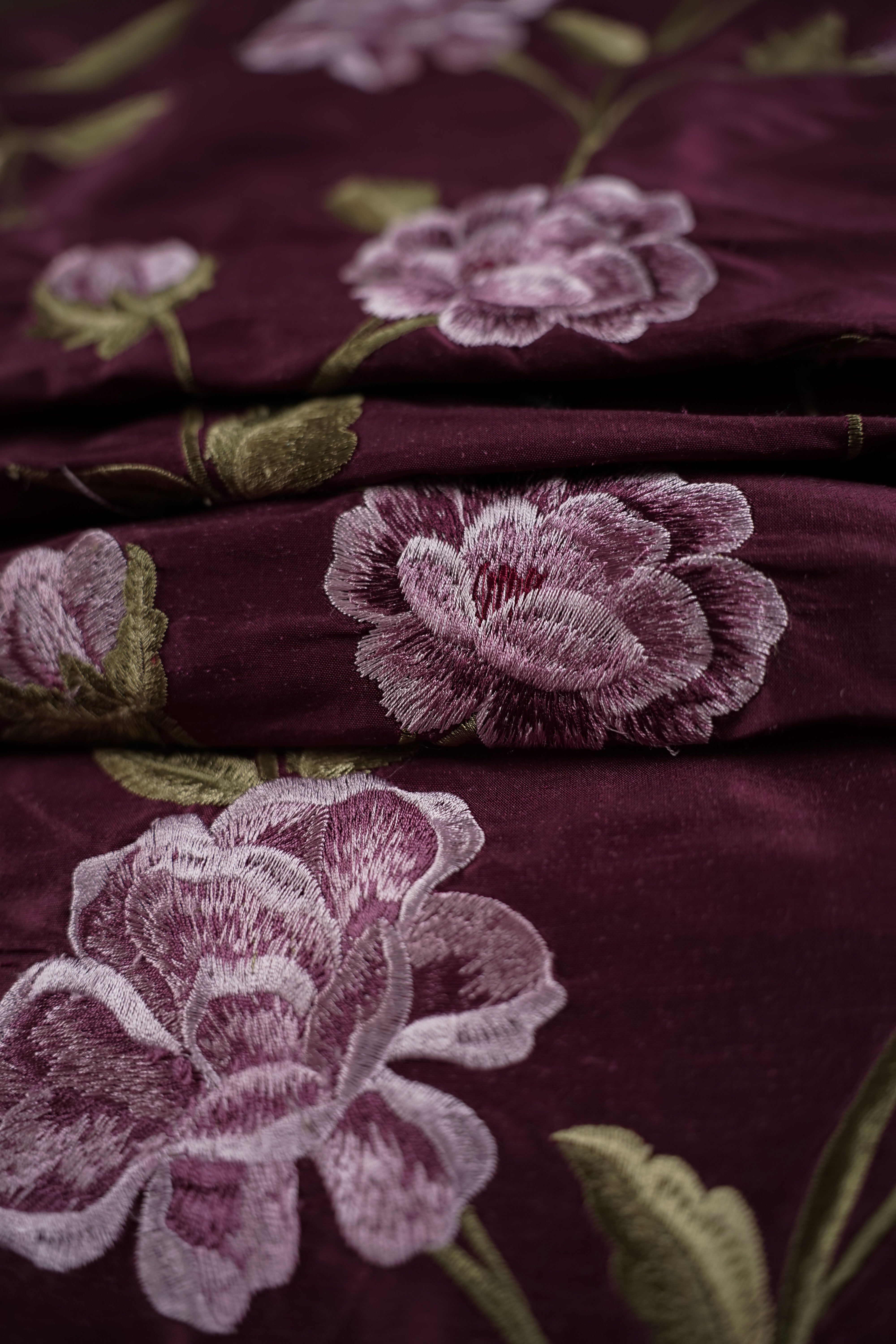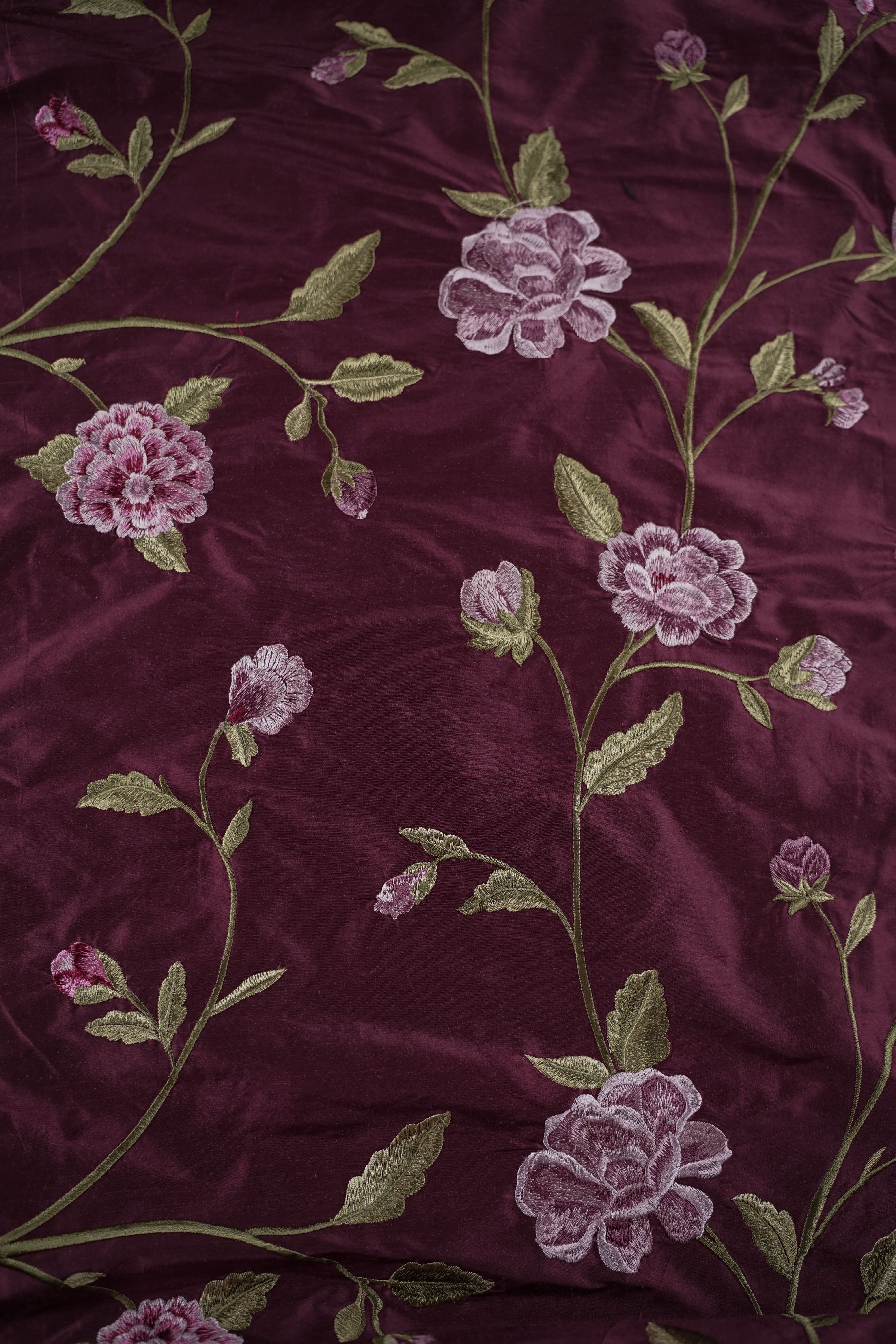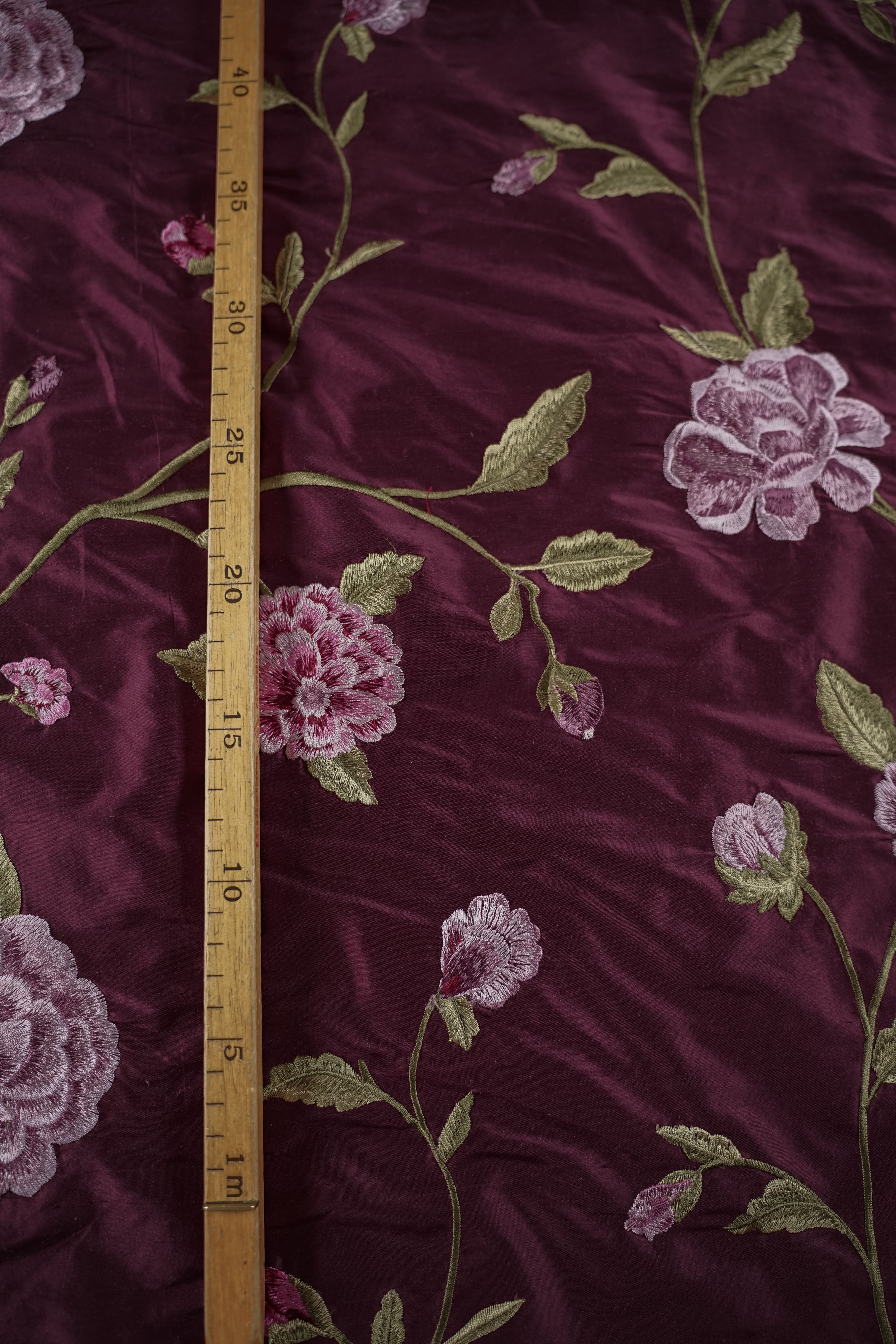 Storblommigt broderat vintage-thaisiden