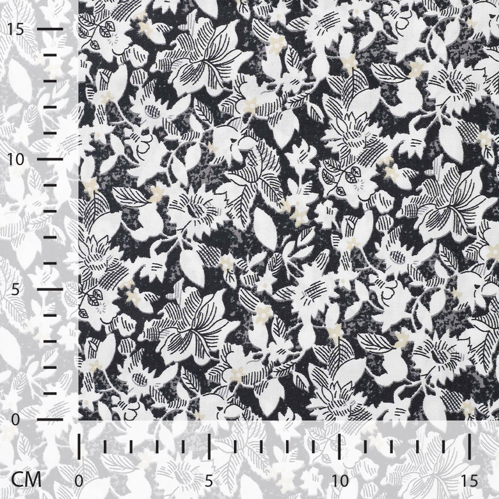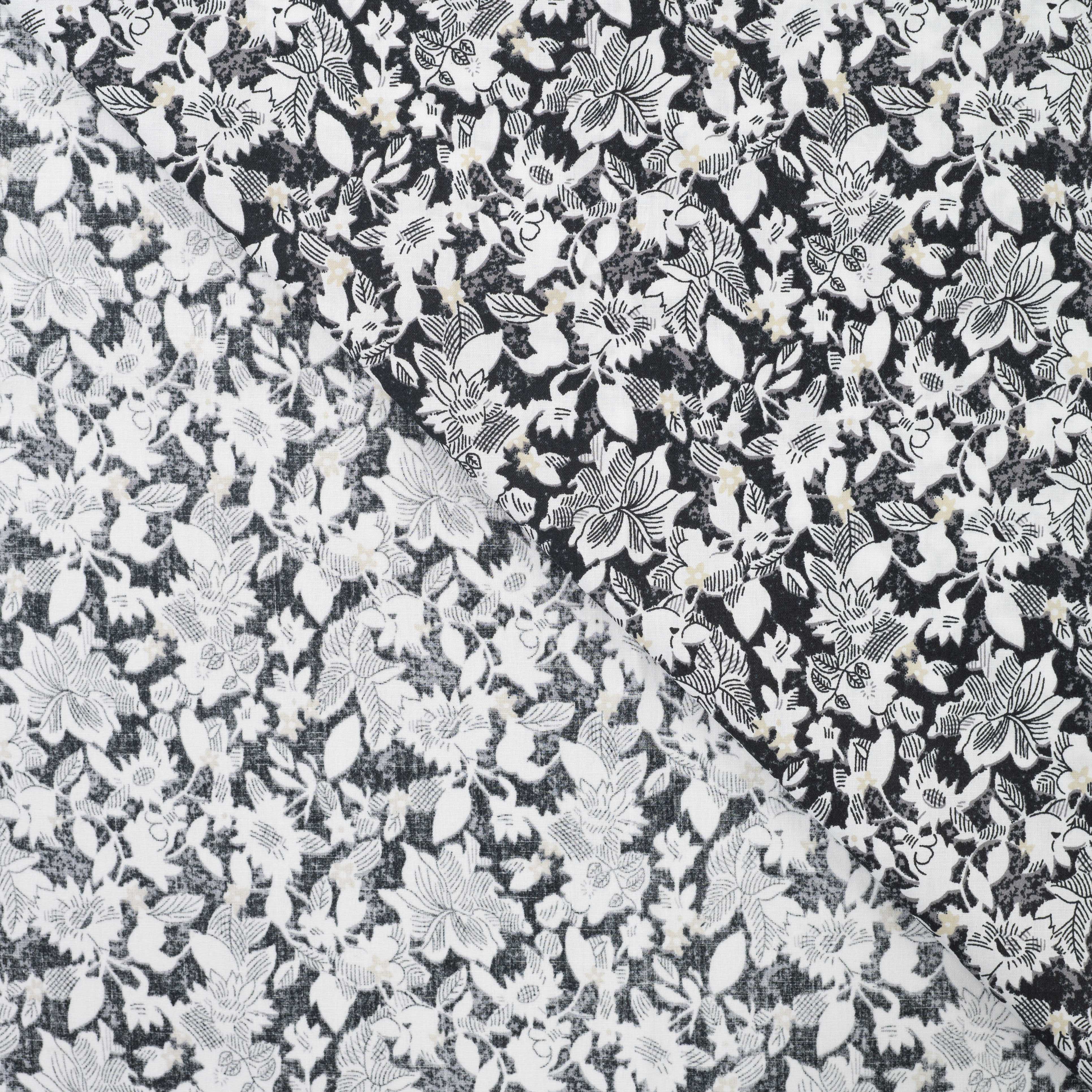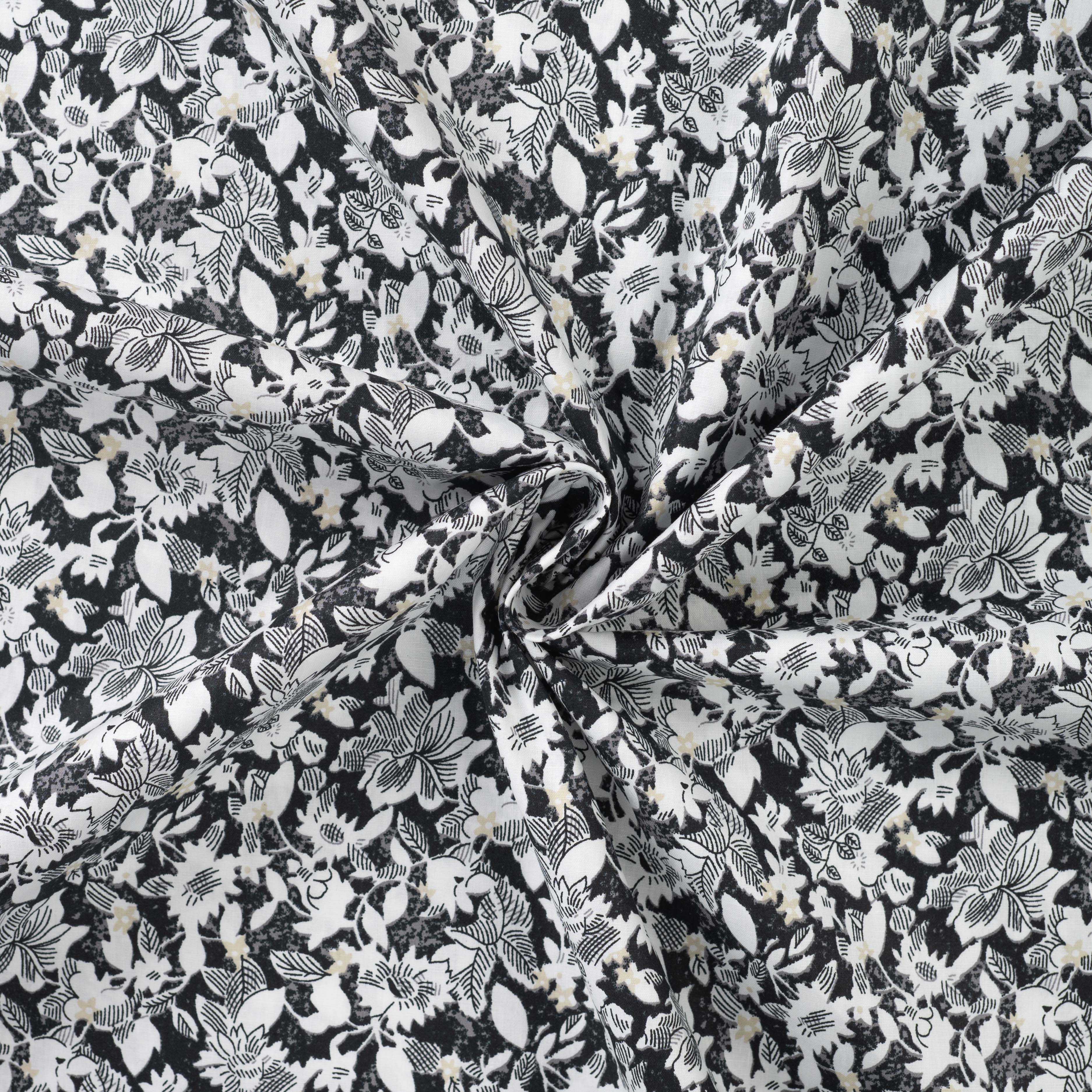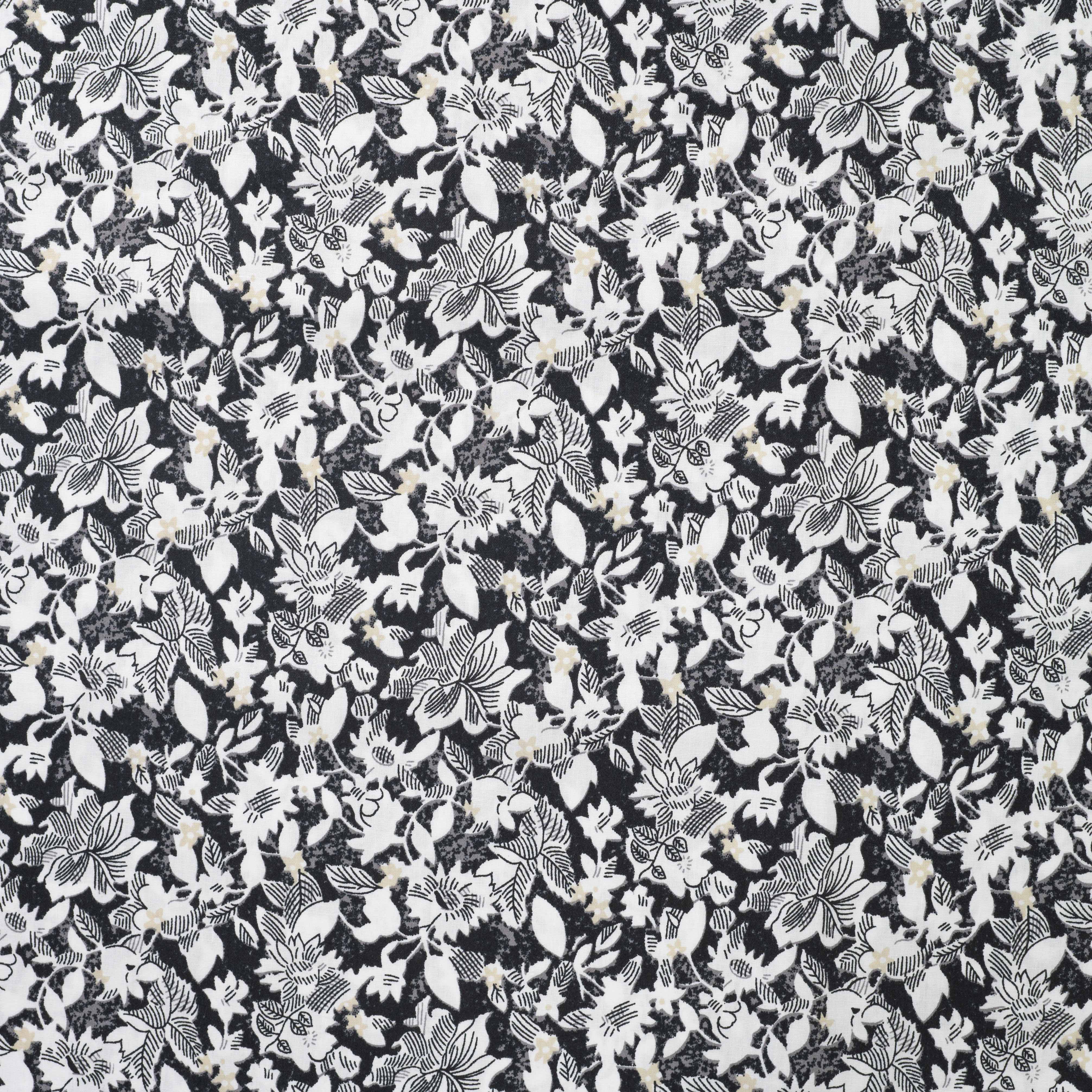Mönstrad Bomullspoplin - Bomull - Blommor - Svart