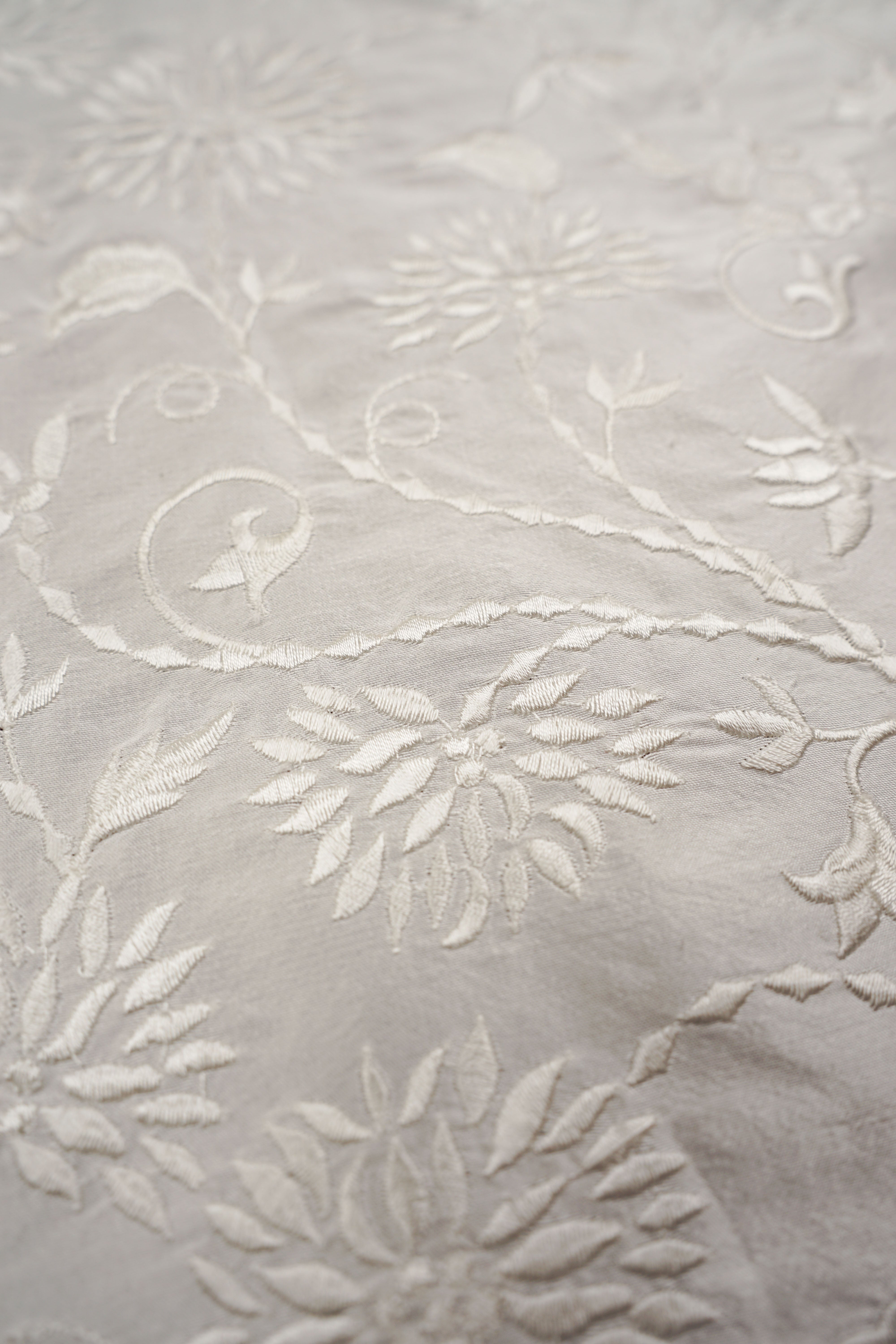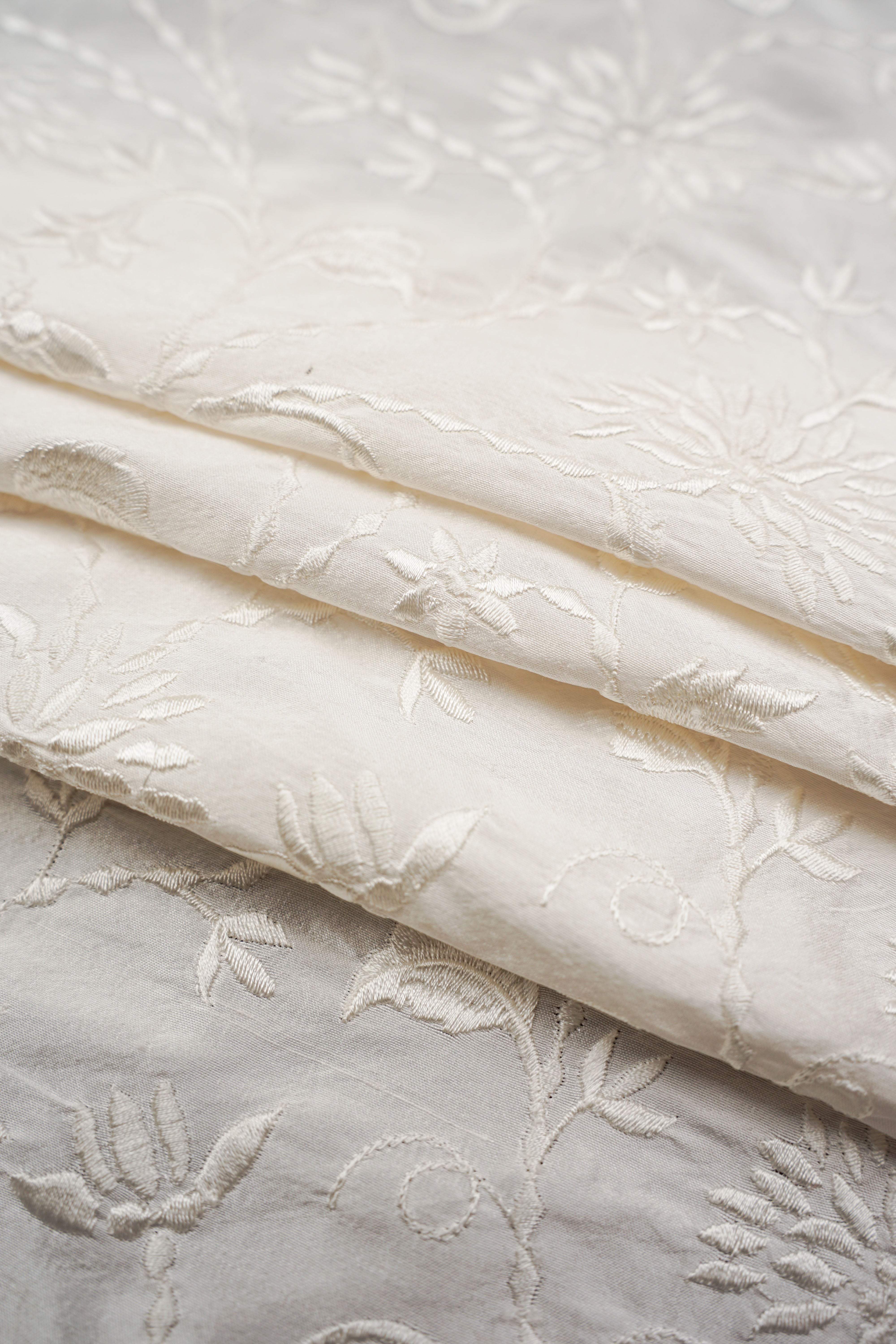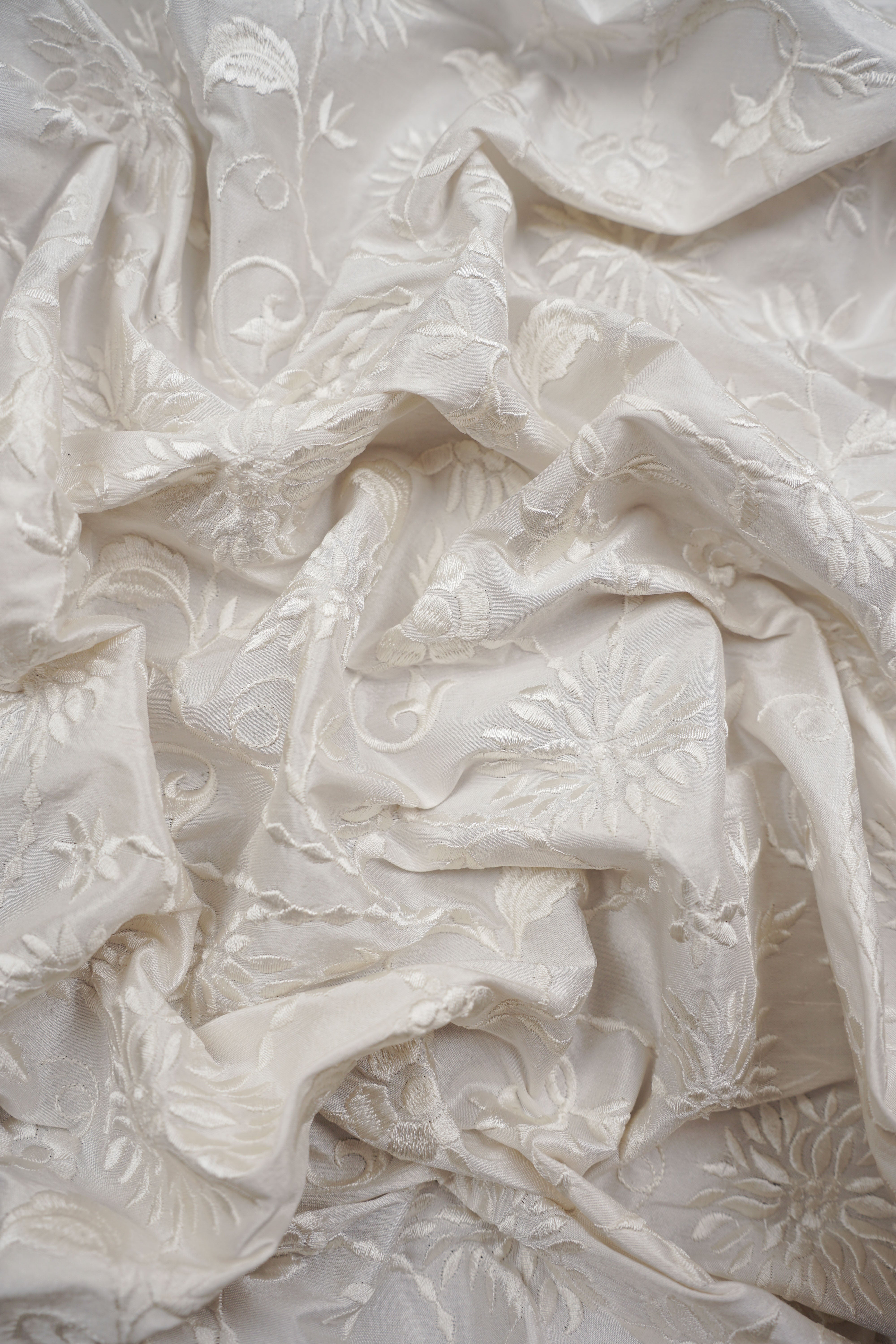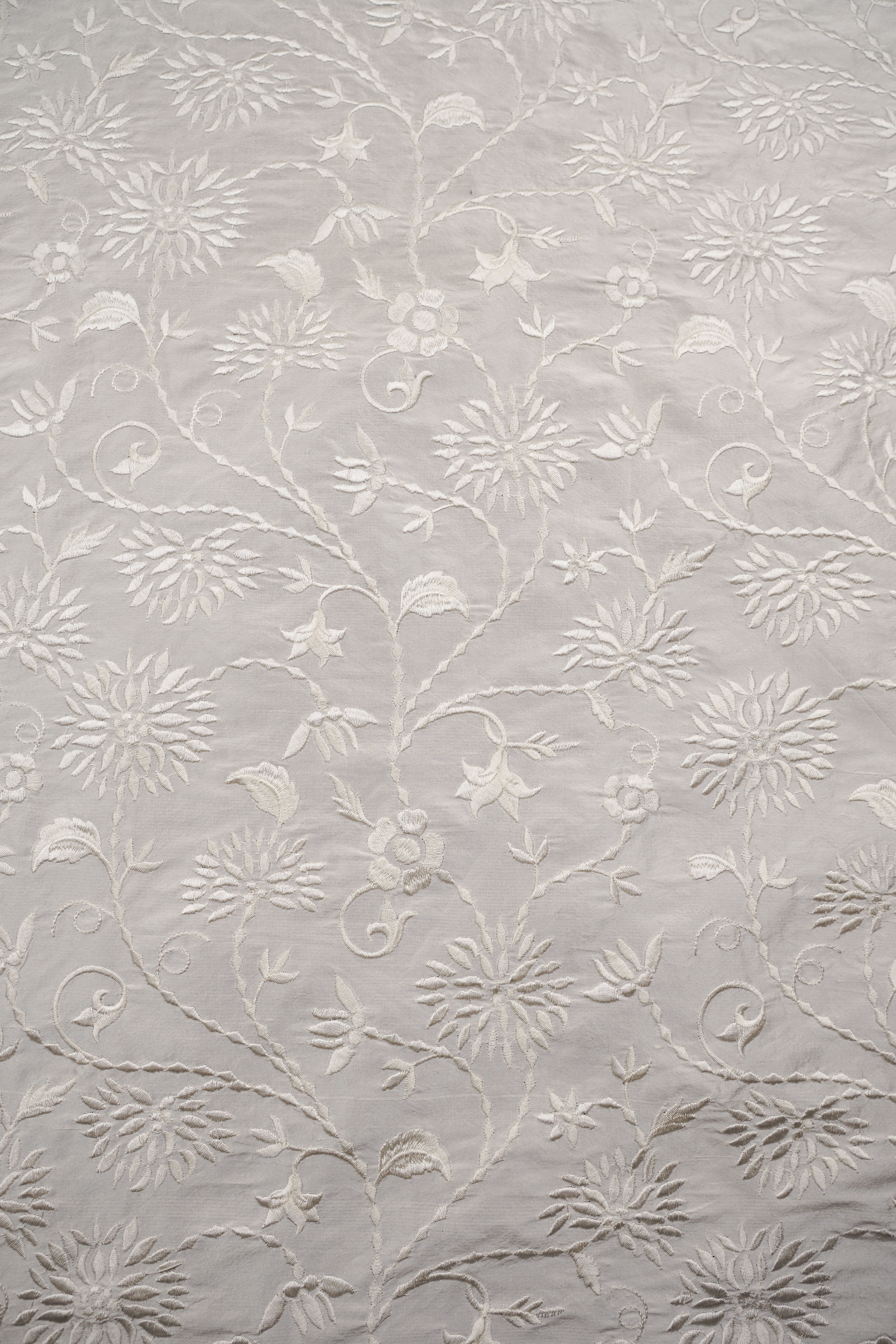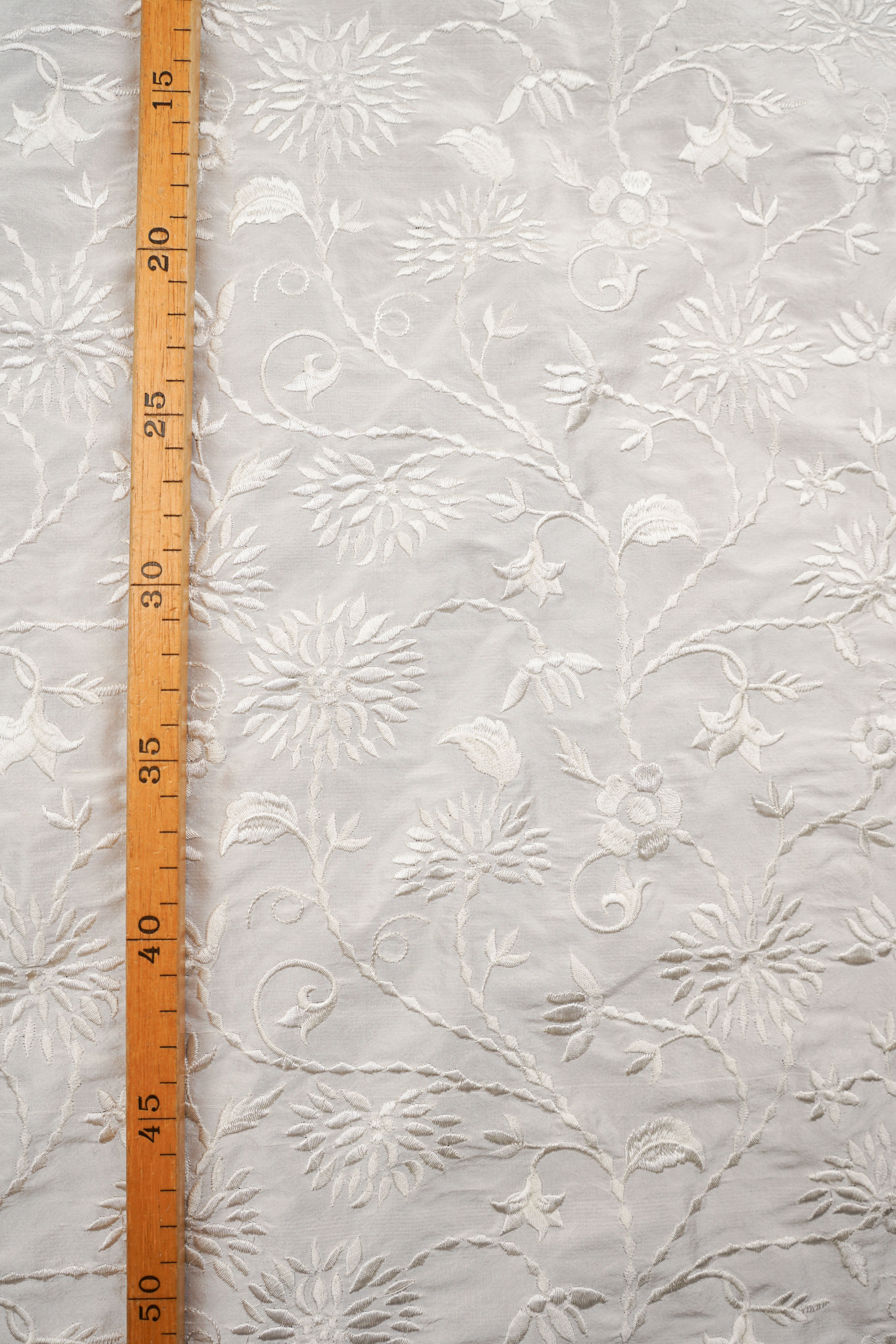Vackert broderat thaisiden med blomstrande mönster