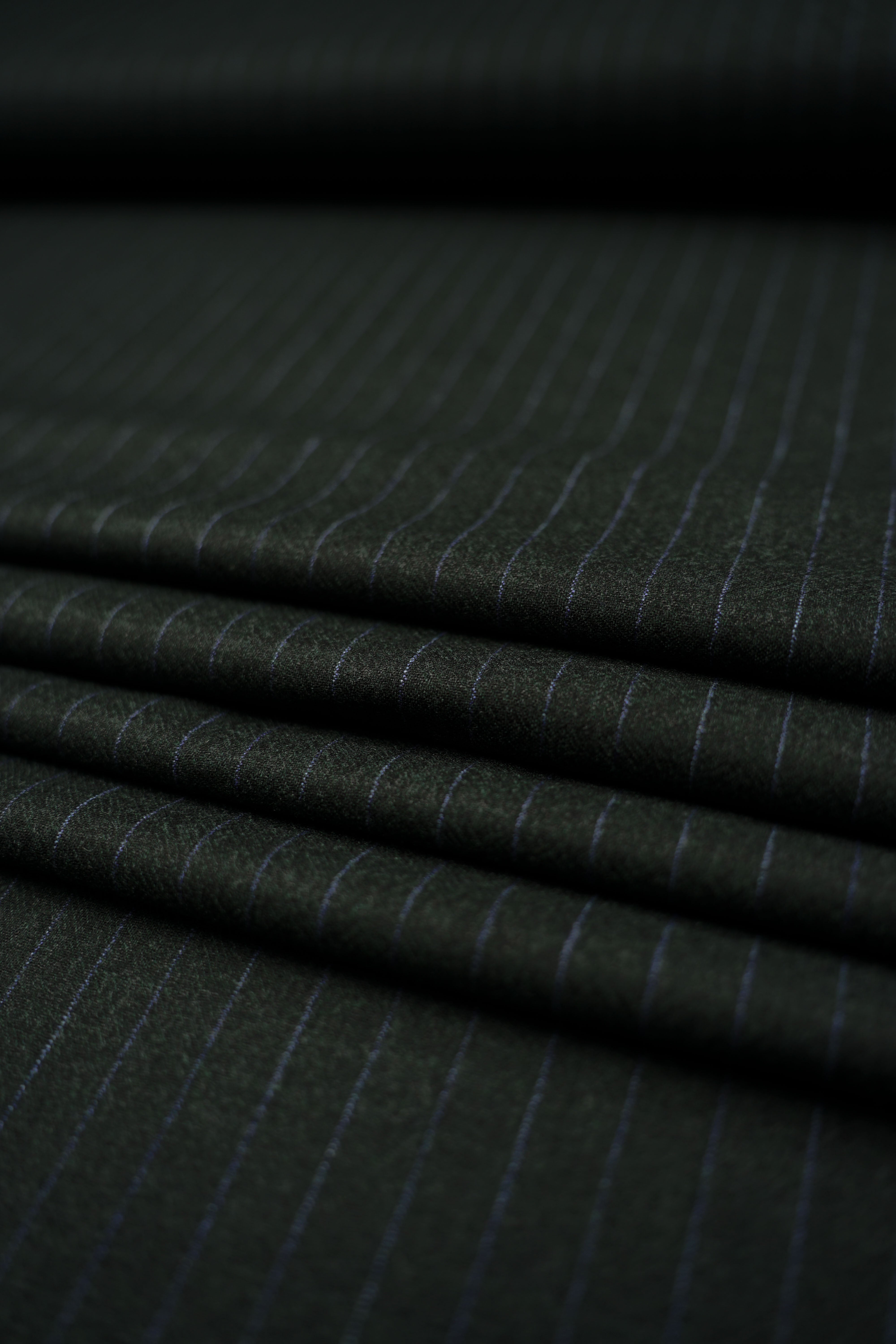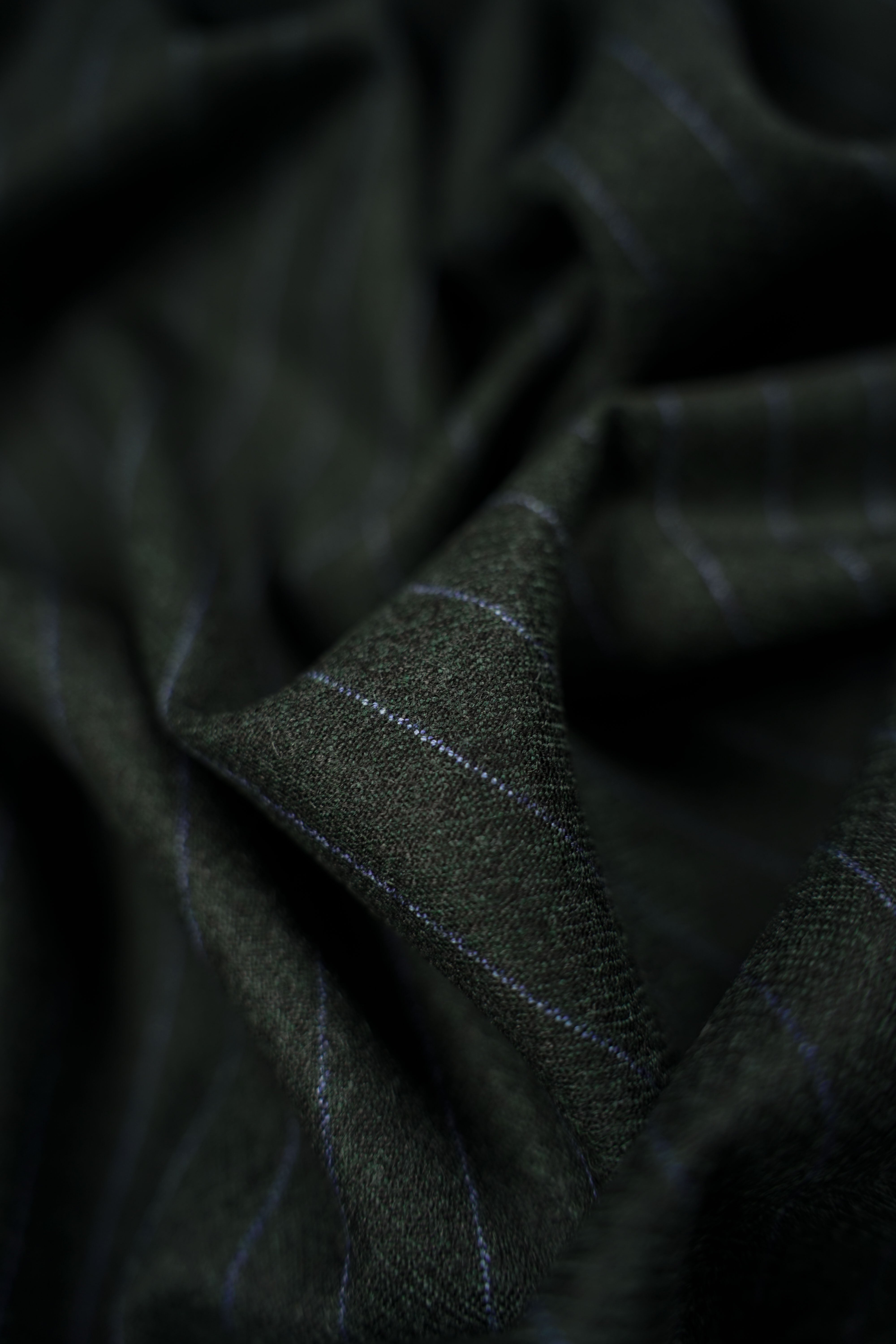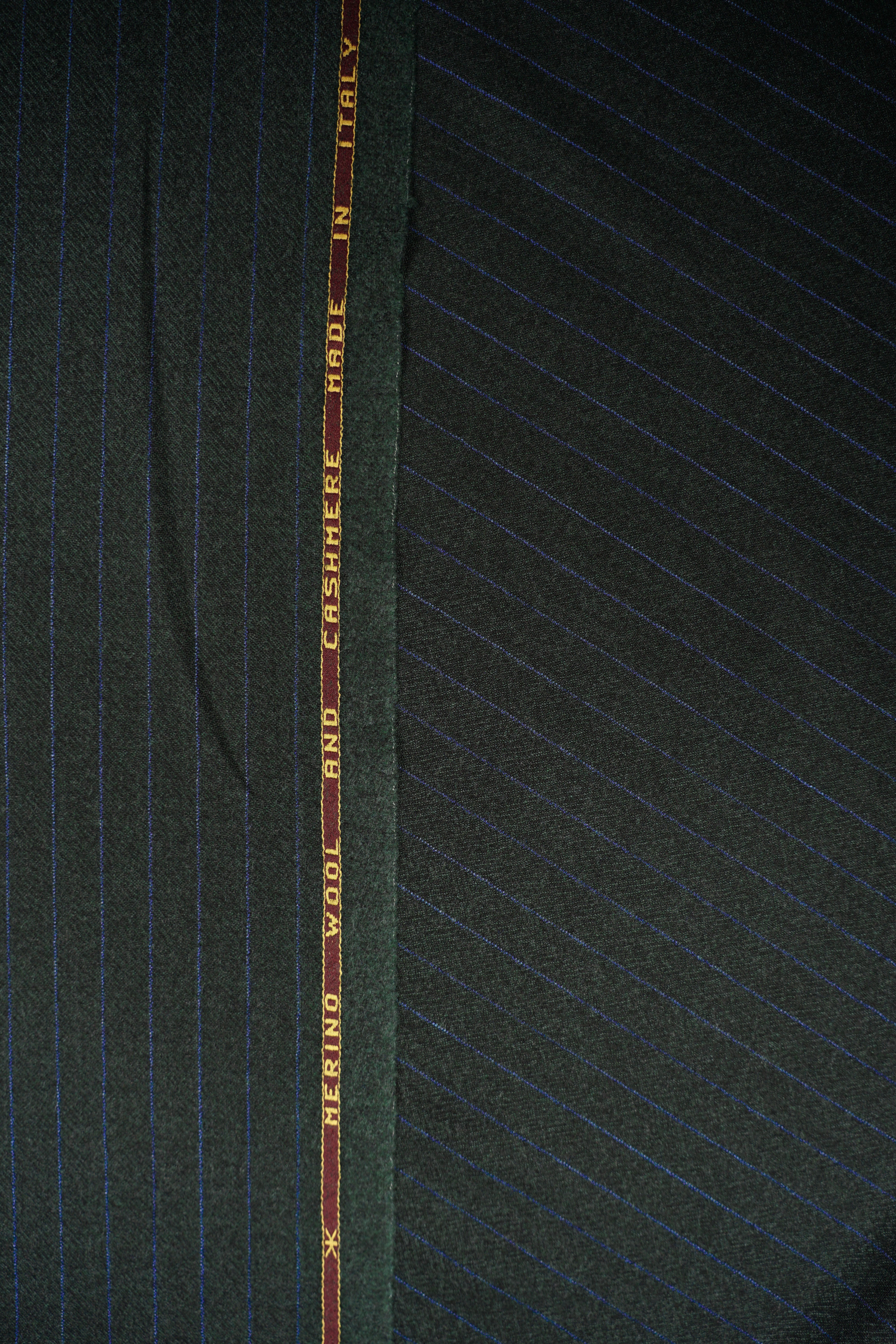 • Kostymull - Italien - Ull/Cashmere - Kritstrecksrandig - Grön/Blå