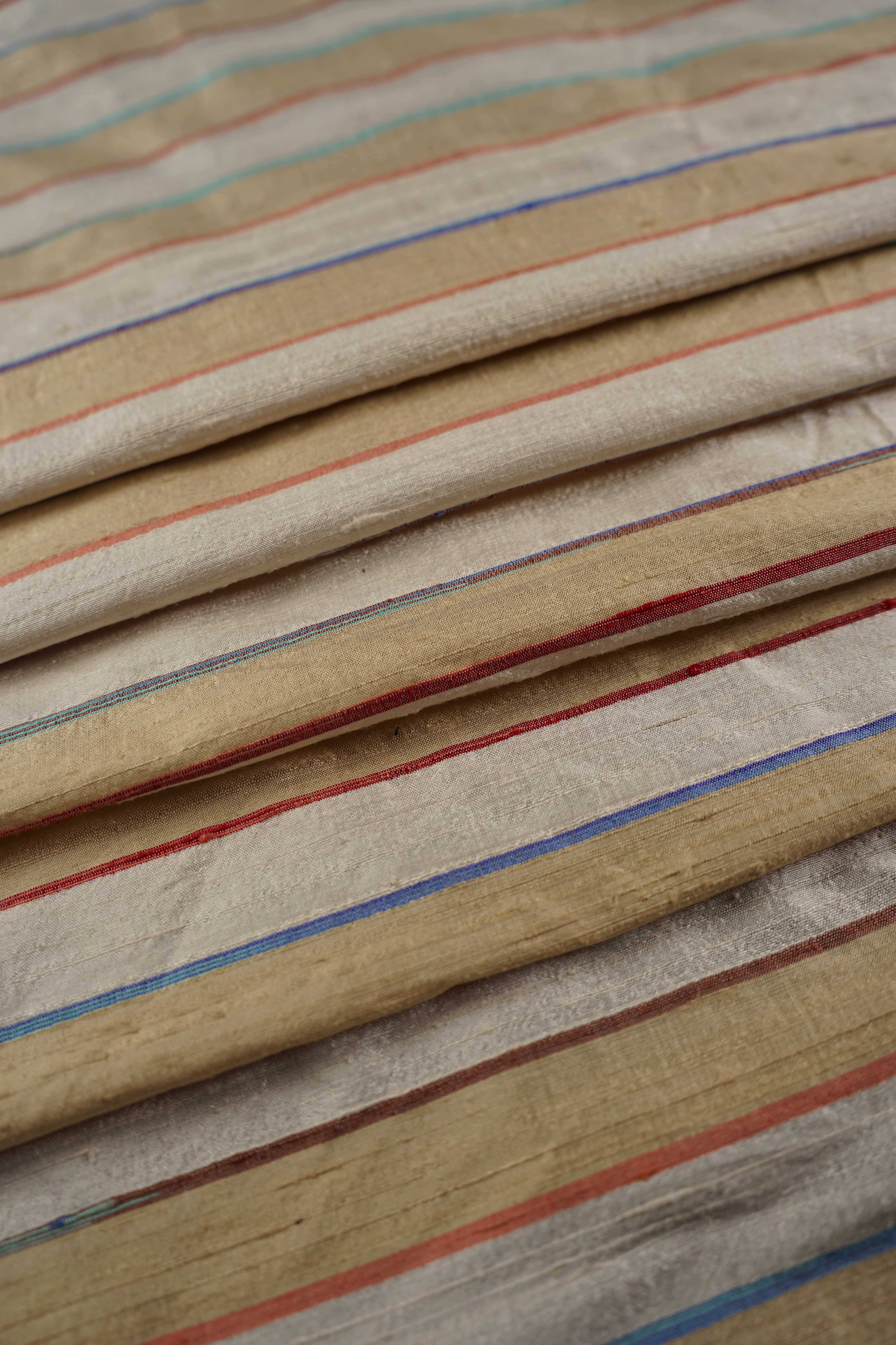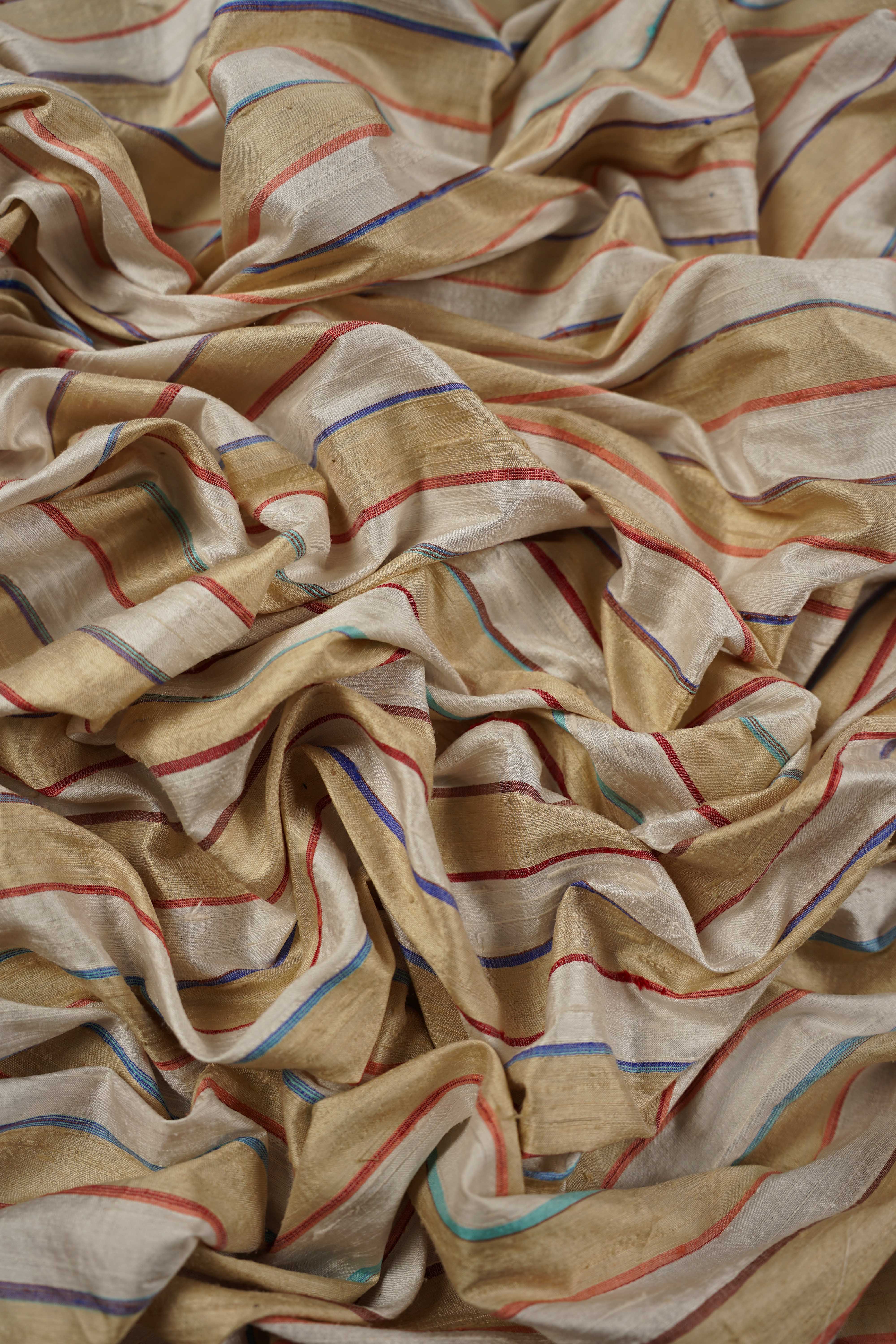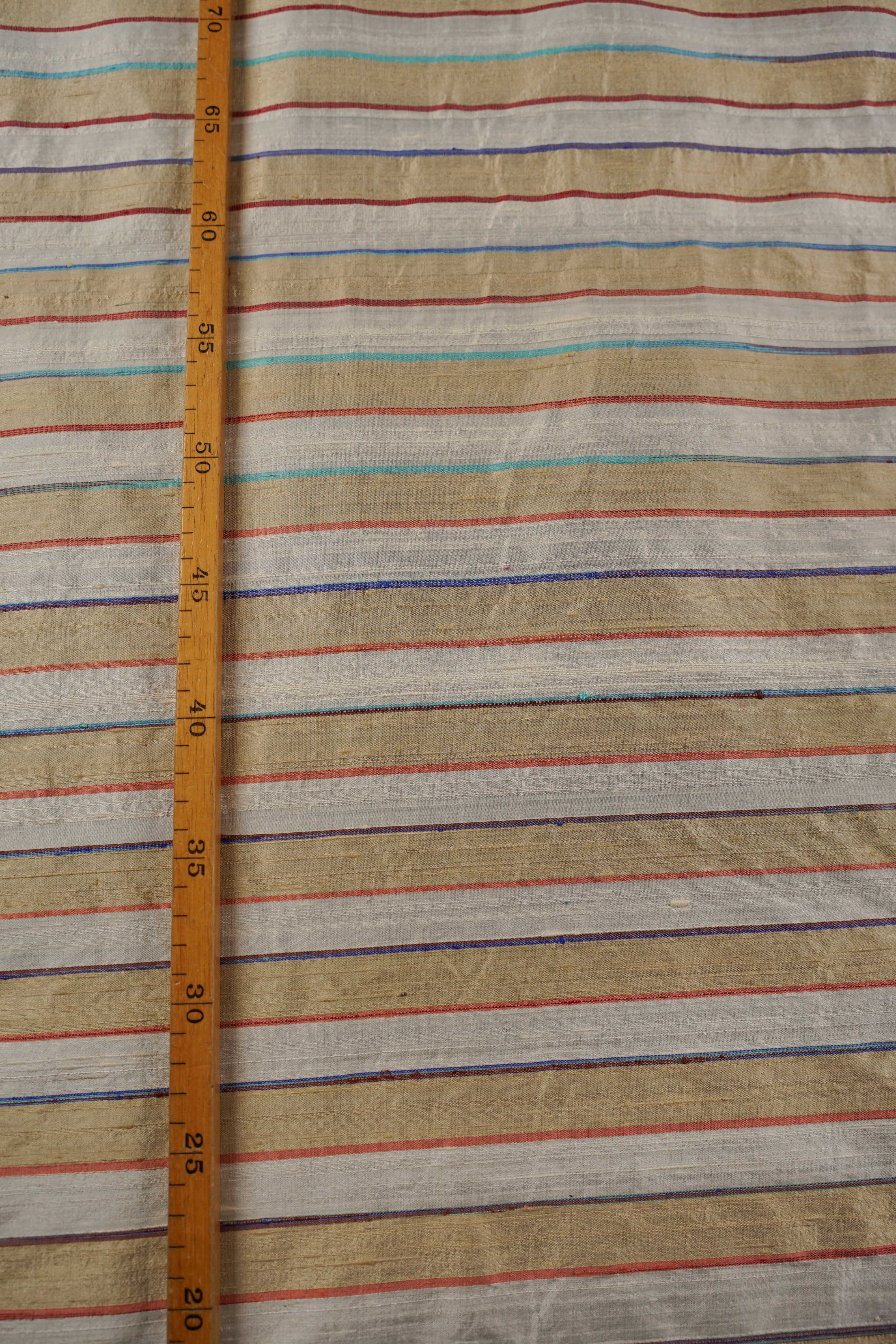 • Vintage - Thai-Siden - Randigt - Beige, Blå, Röd - VT42