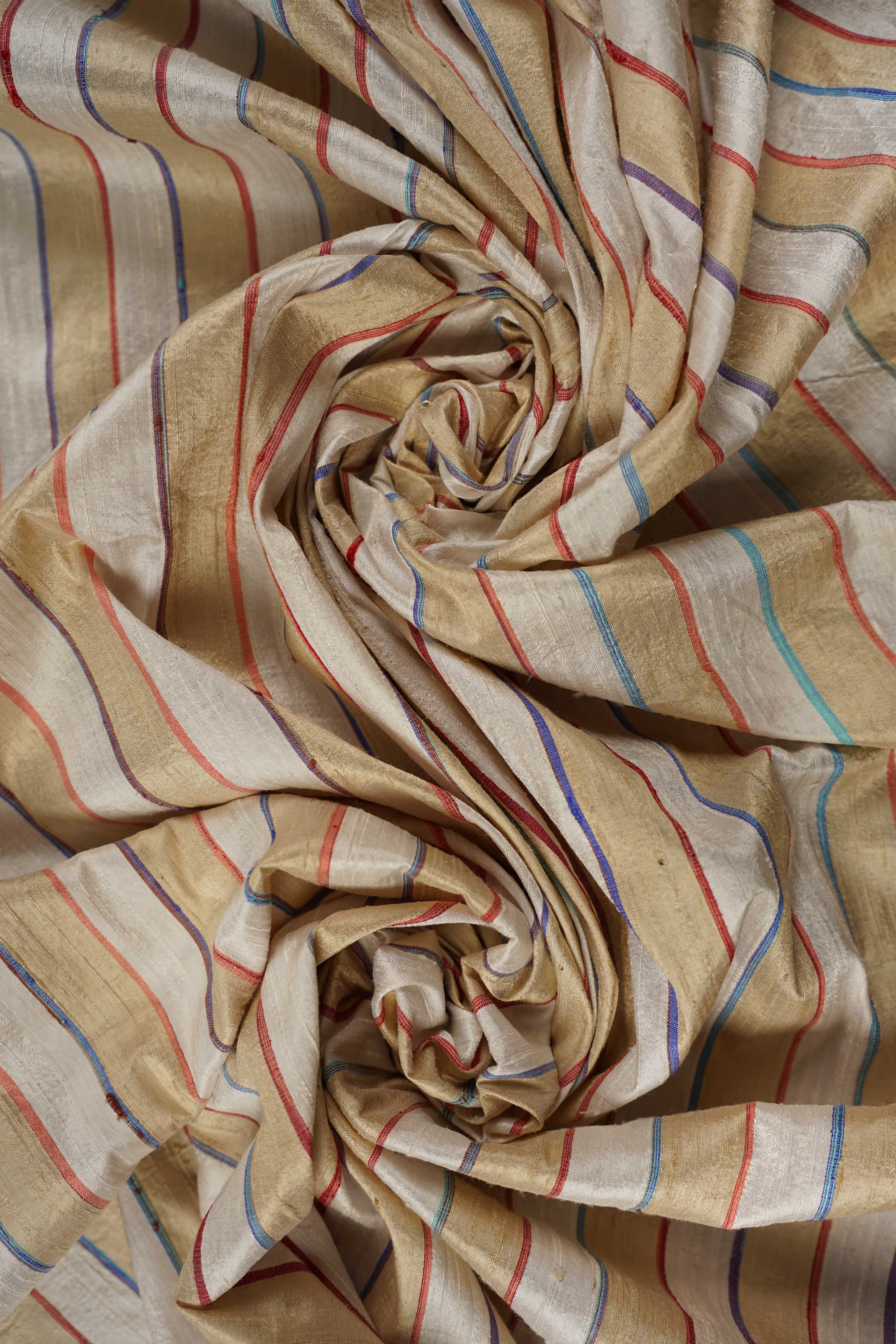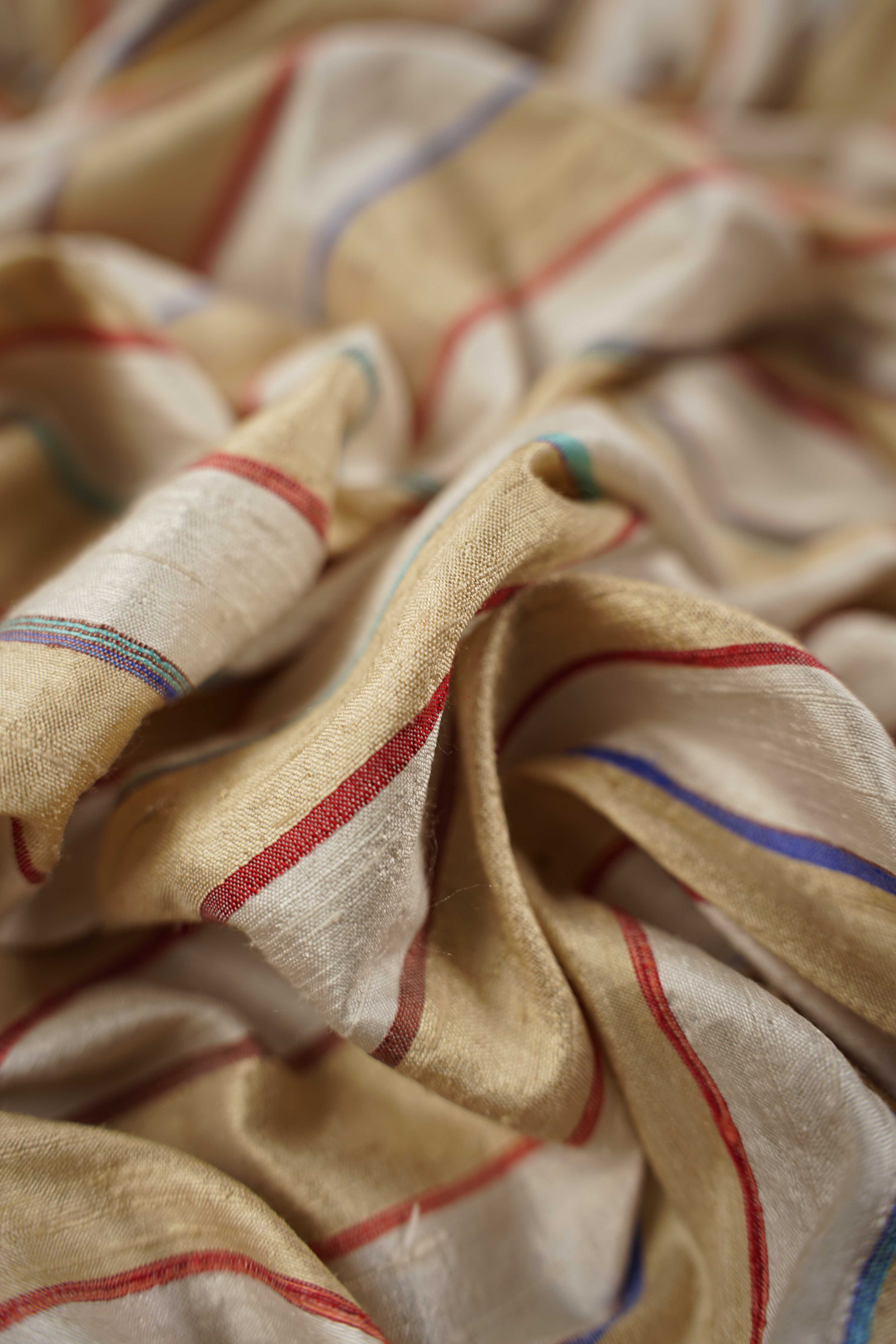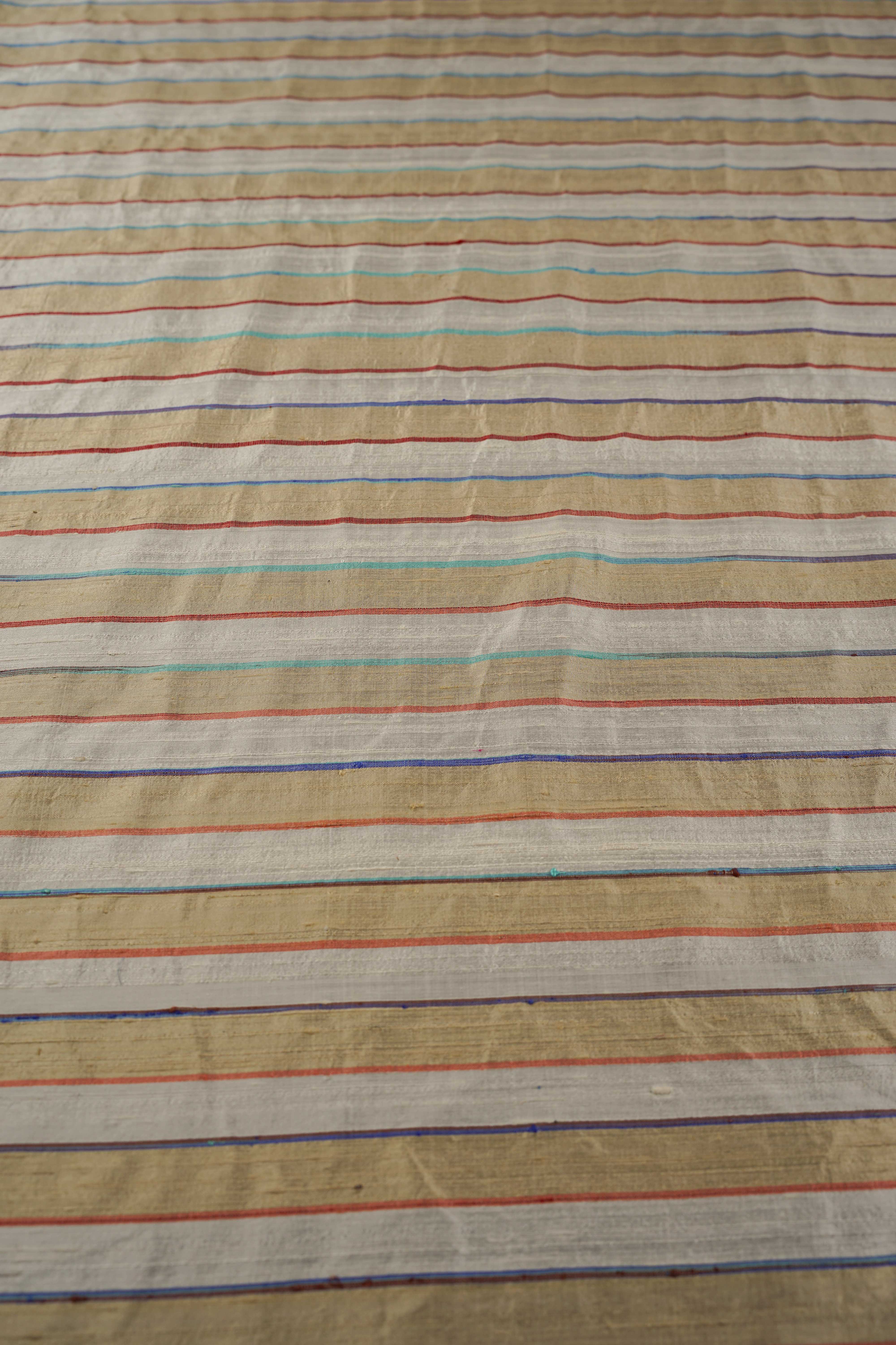 • Vintage - Thai-Siden - Randigt - Beige, Blå, Röd - VT42