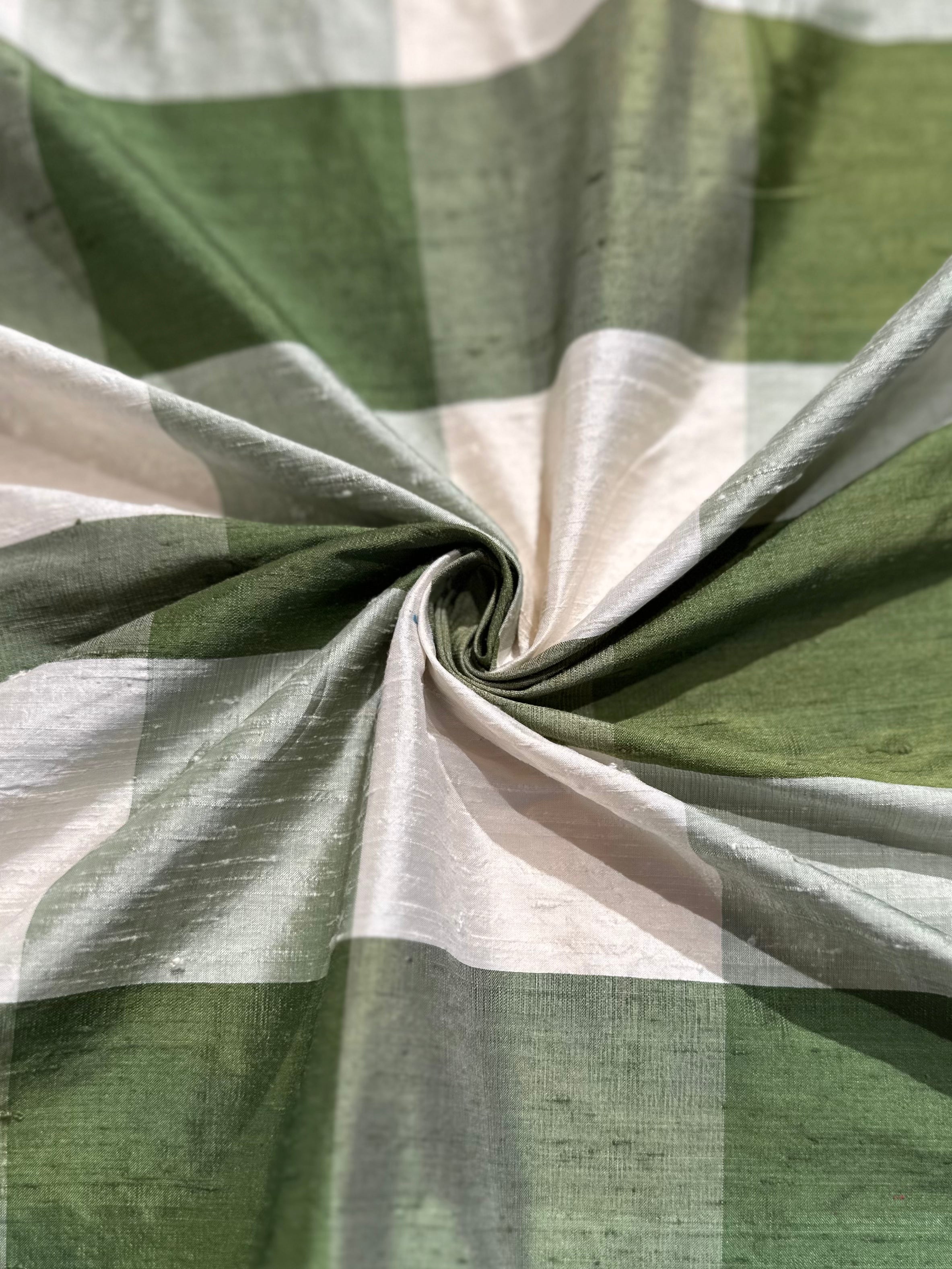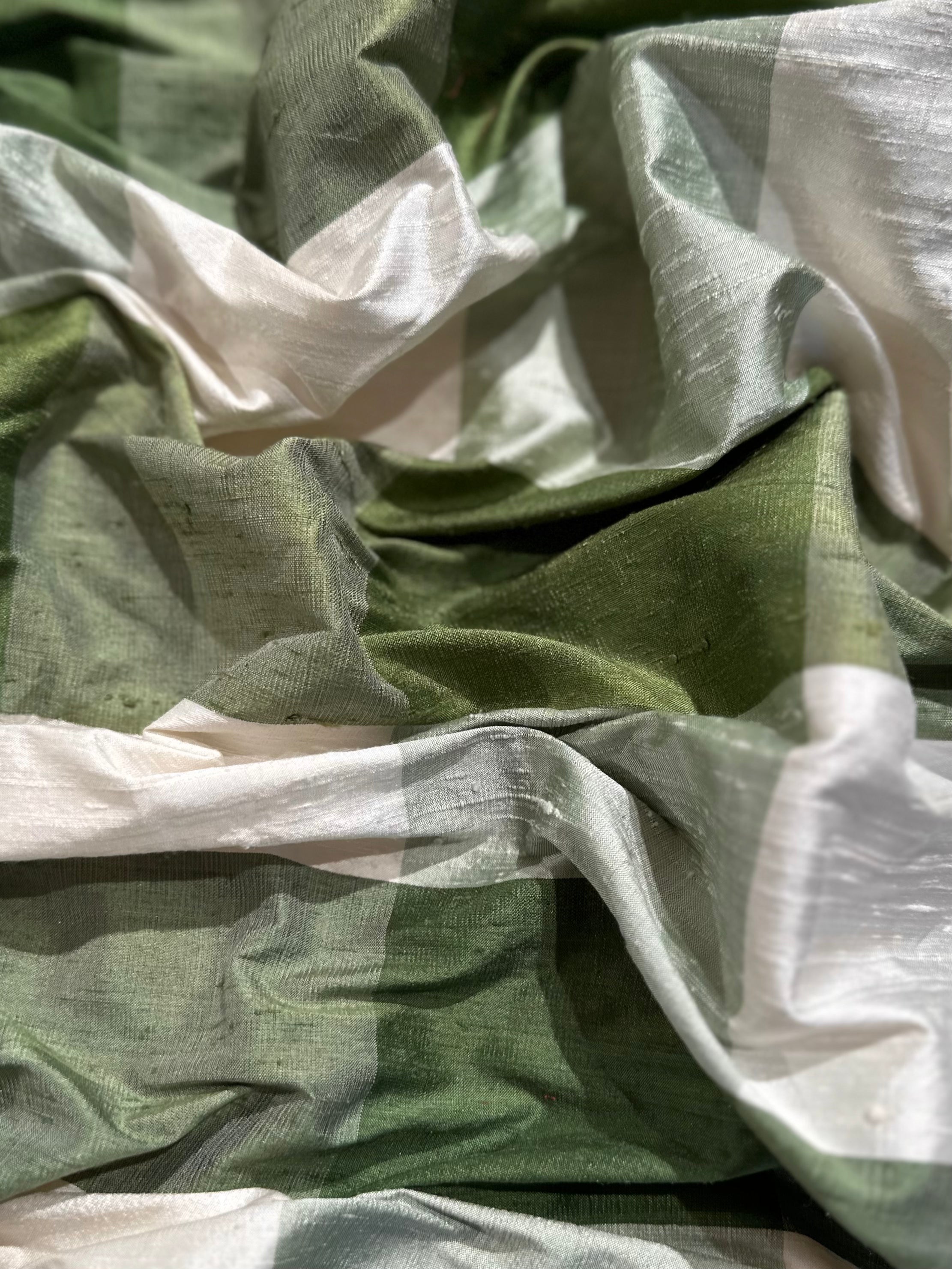 Vintage - Thai-Siden - Ruta - Grön - Vit - VT20