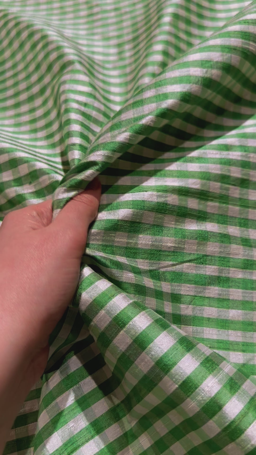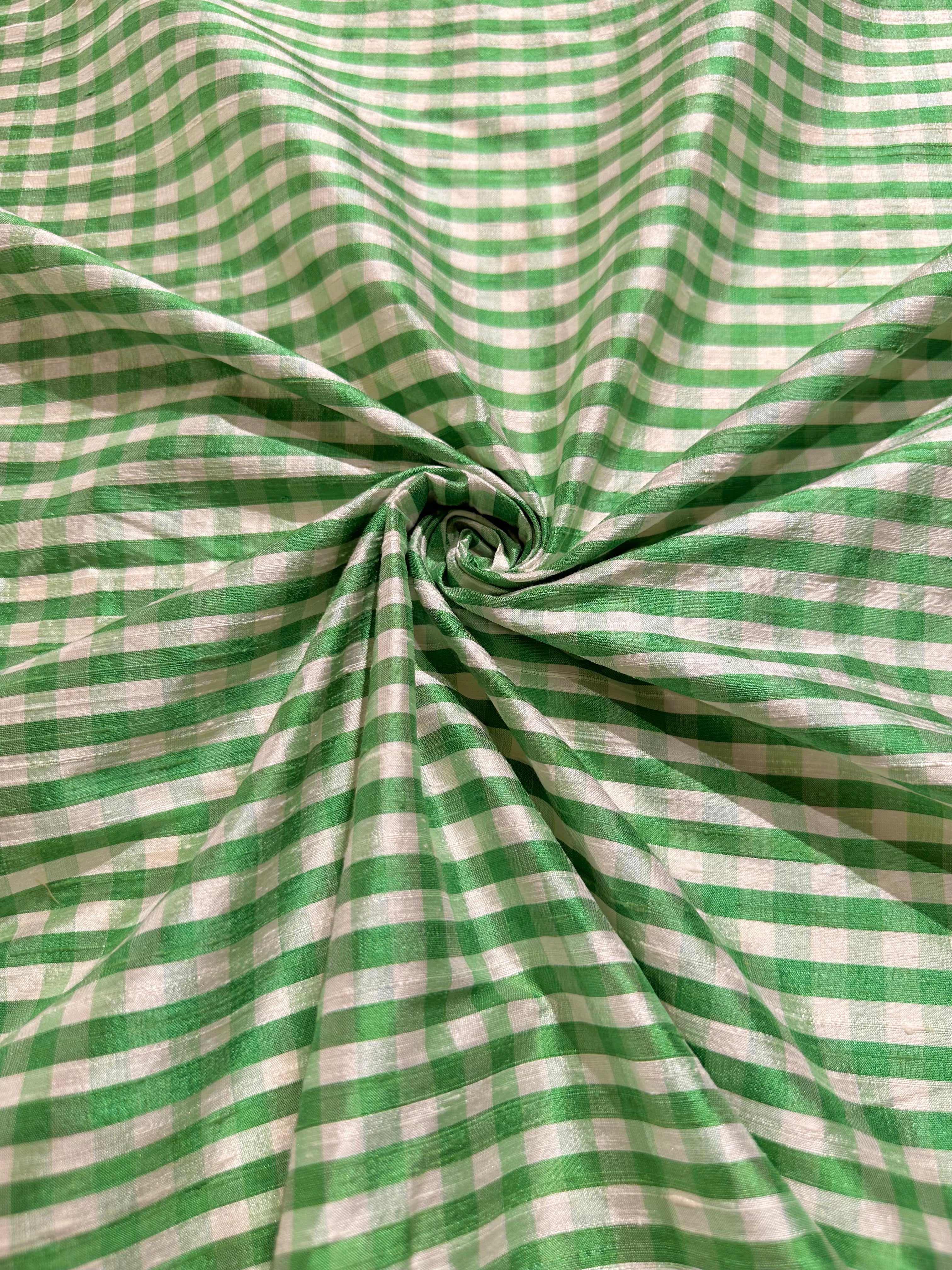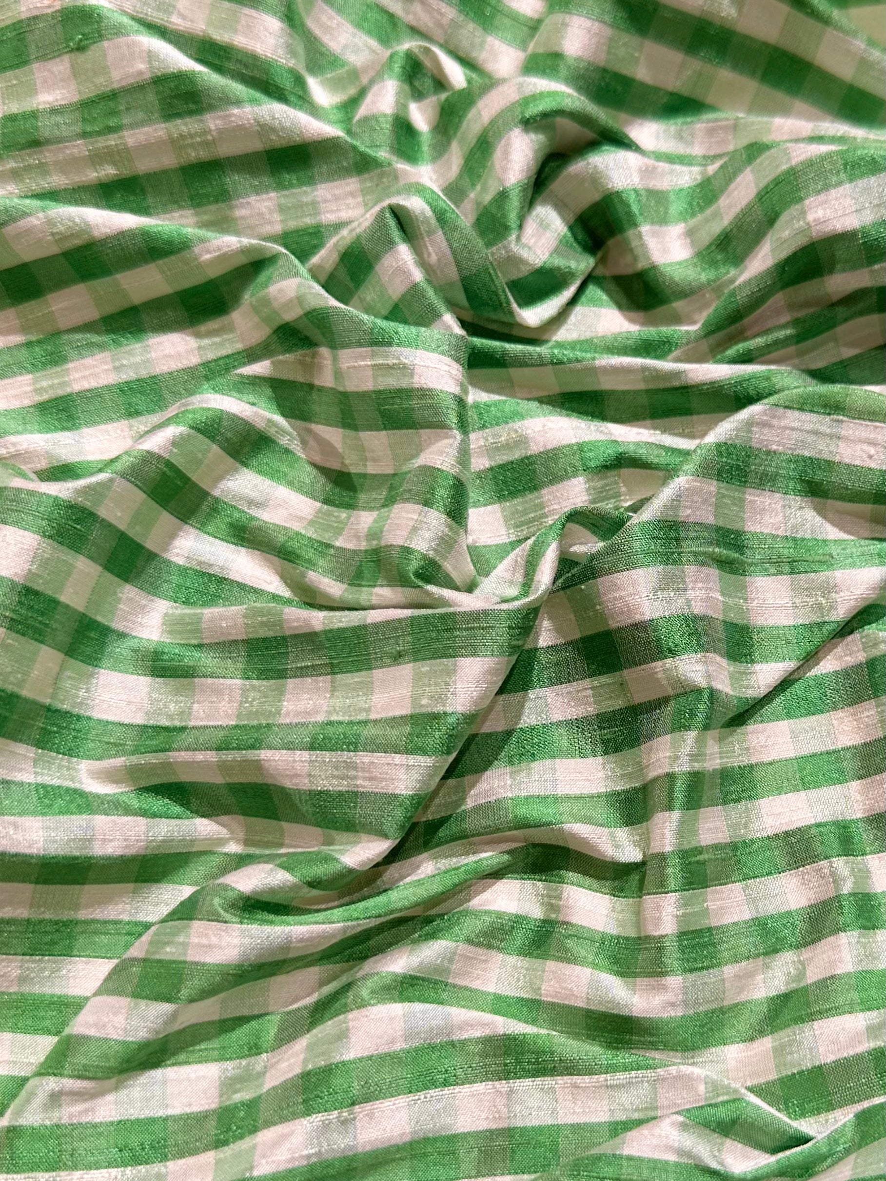 • Vintage - Thai-Siden - Ruta - Mellan - Grön - Vit - VT28