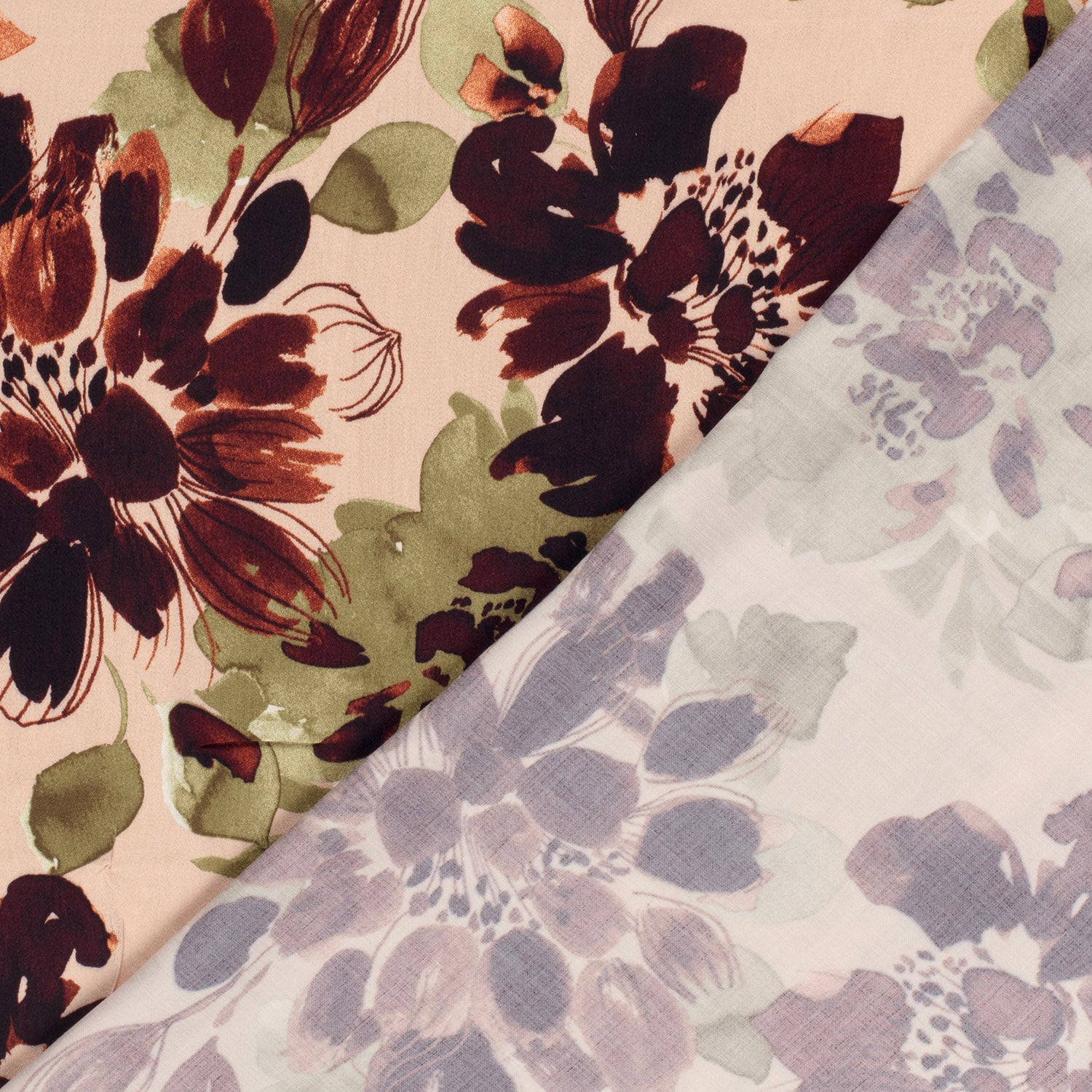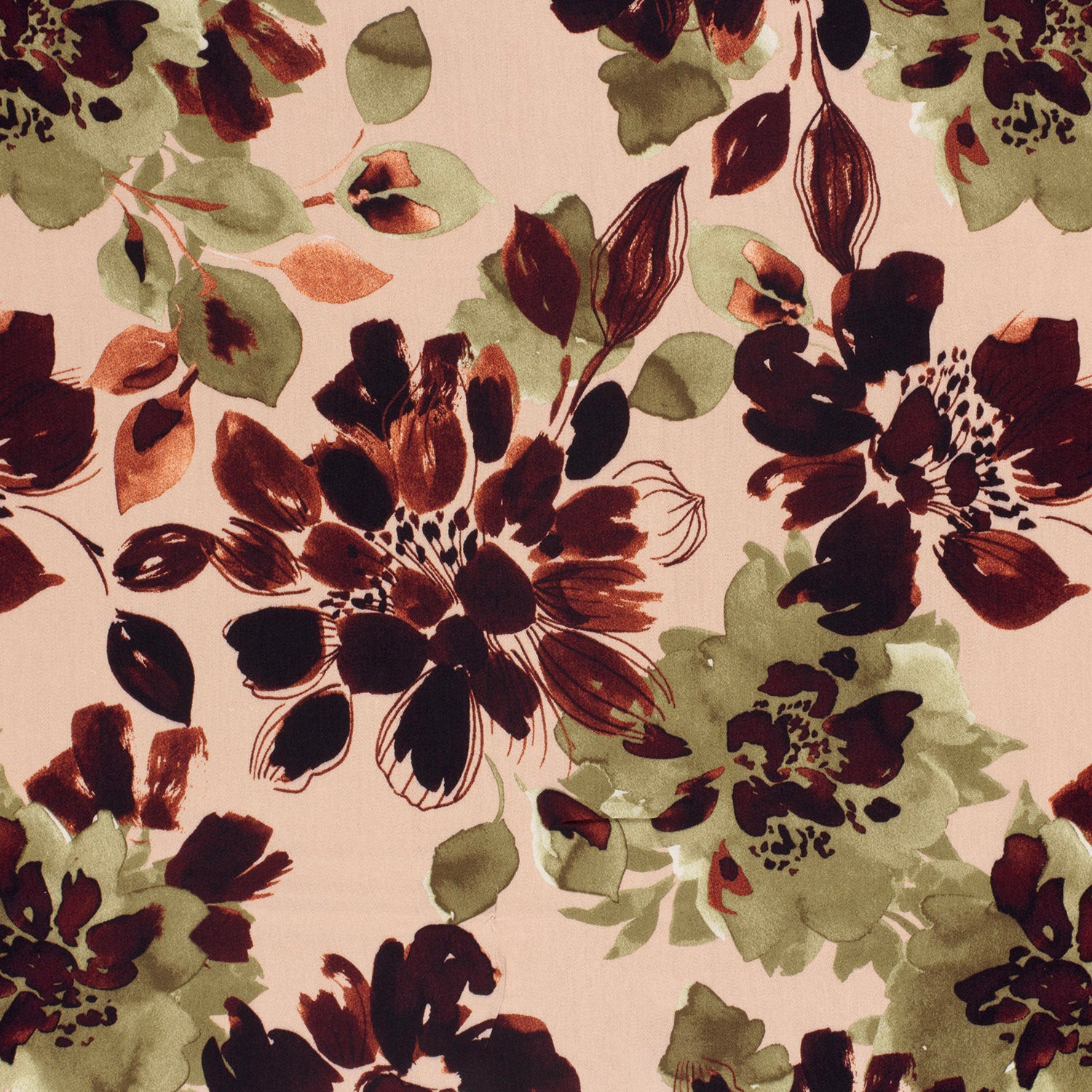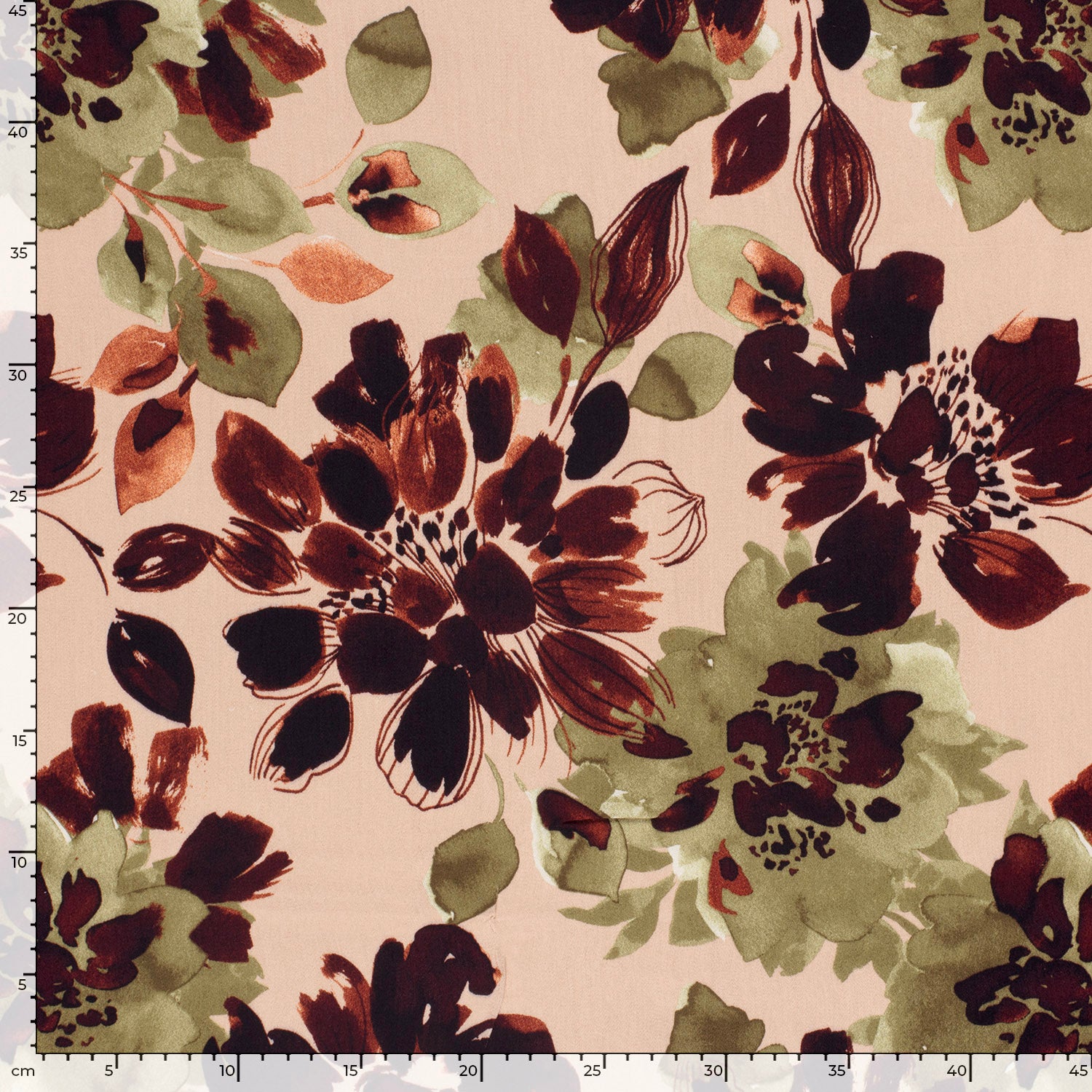 • Mönstrad - Viskos - Satin - Blommor - Dusty pink - 012